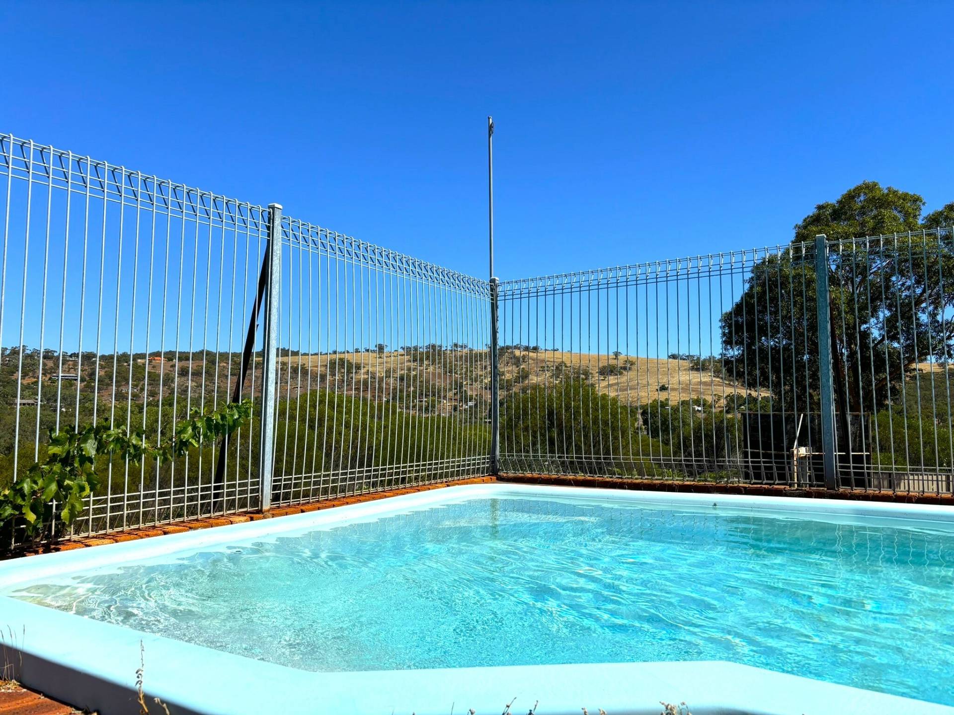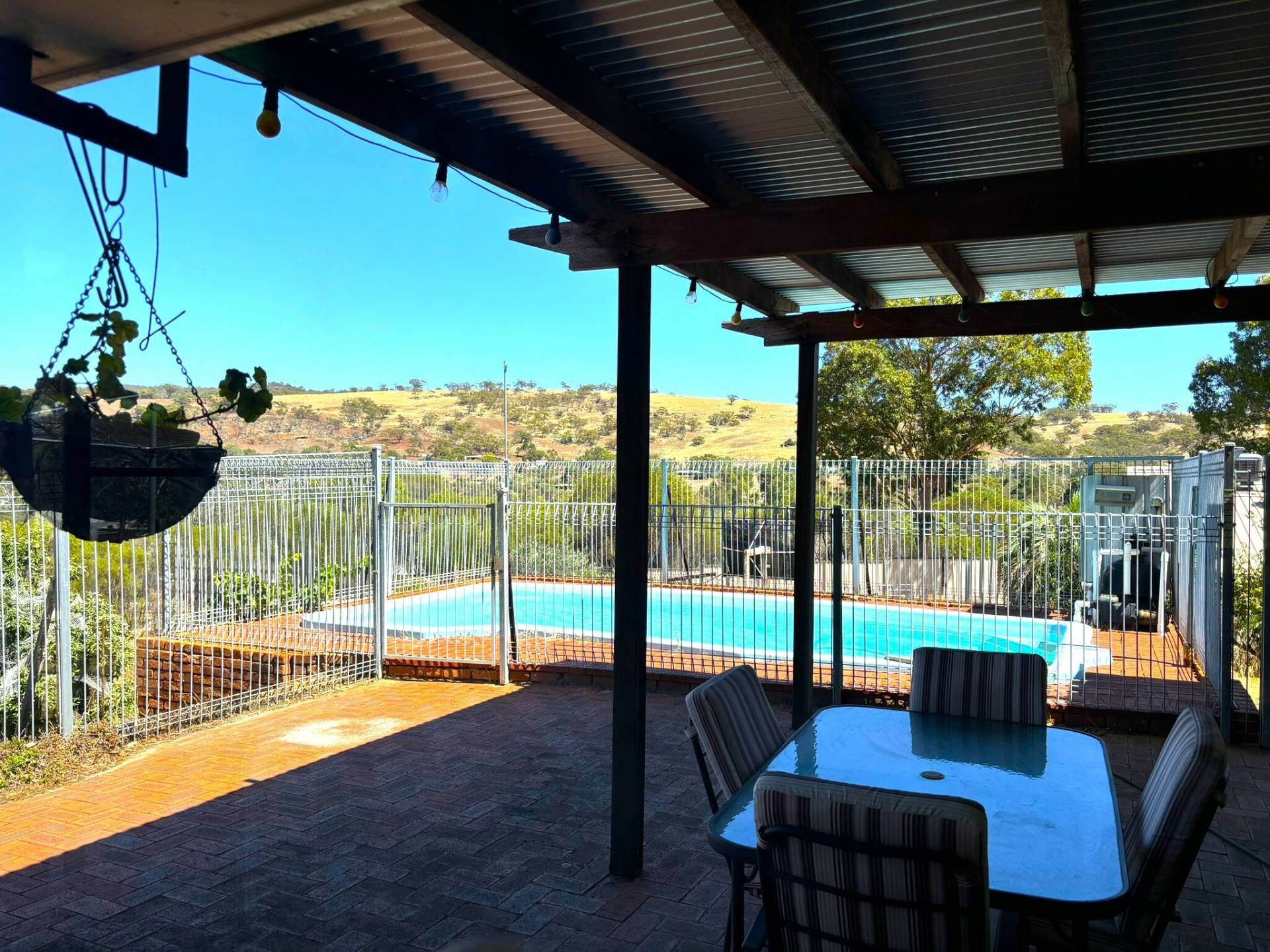 Comfort is assured year-round with air conditioning and a cozy wood fire. Step outside to a fantastic patio area and a sparkling pool, perfect for summer days with a spectacular view.
