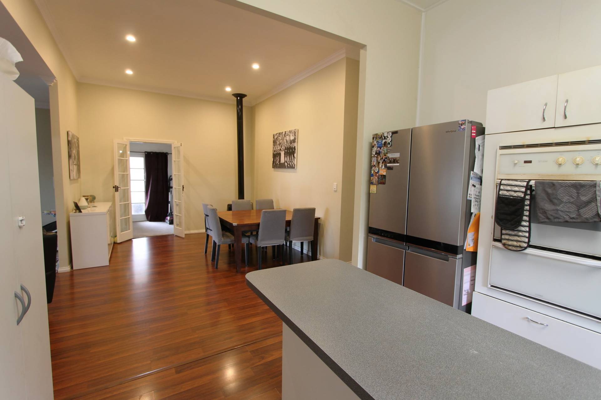 Down the hallway you walk into your large, open plan living area. Your dining room is set to the middle of the home, adjacent to your kitchen and is serviced by a wood fireplace. Your kitchen is practical with under bench and over head storage, plus an island bench (with further storage). Additional features include a large fridge recess for a double fridge, a walk-in pantry (with built-in shelves) tucked behind the kitchen which also has exterior access to the side of the home. The oven is stored at a convenient height and includes a separate grill and gas stove top to the bench. Added bonuses include the dishwasher and ceiling fan.