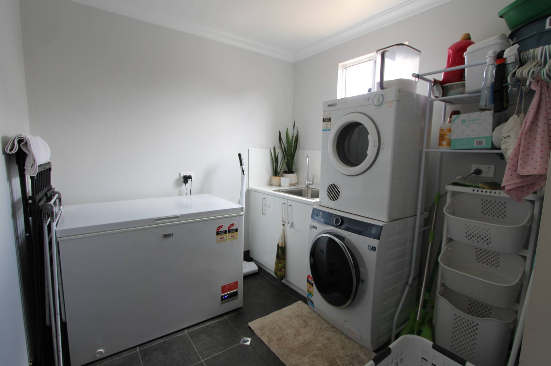 To the right side of the home, off your dining area is a small hallway, perfect for storage which gives access to a 5th bedroom (or toy room / study) and your updated laundry area. The laundry is modern with updated cabinetry and built-in trough with additional storage space to include your chess freezer or cupboards.