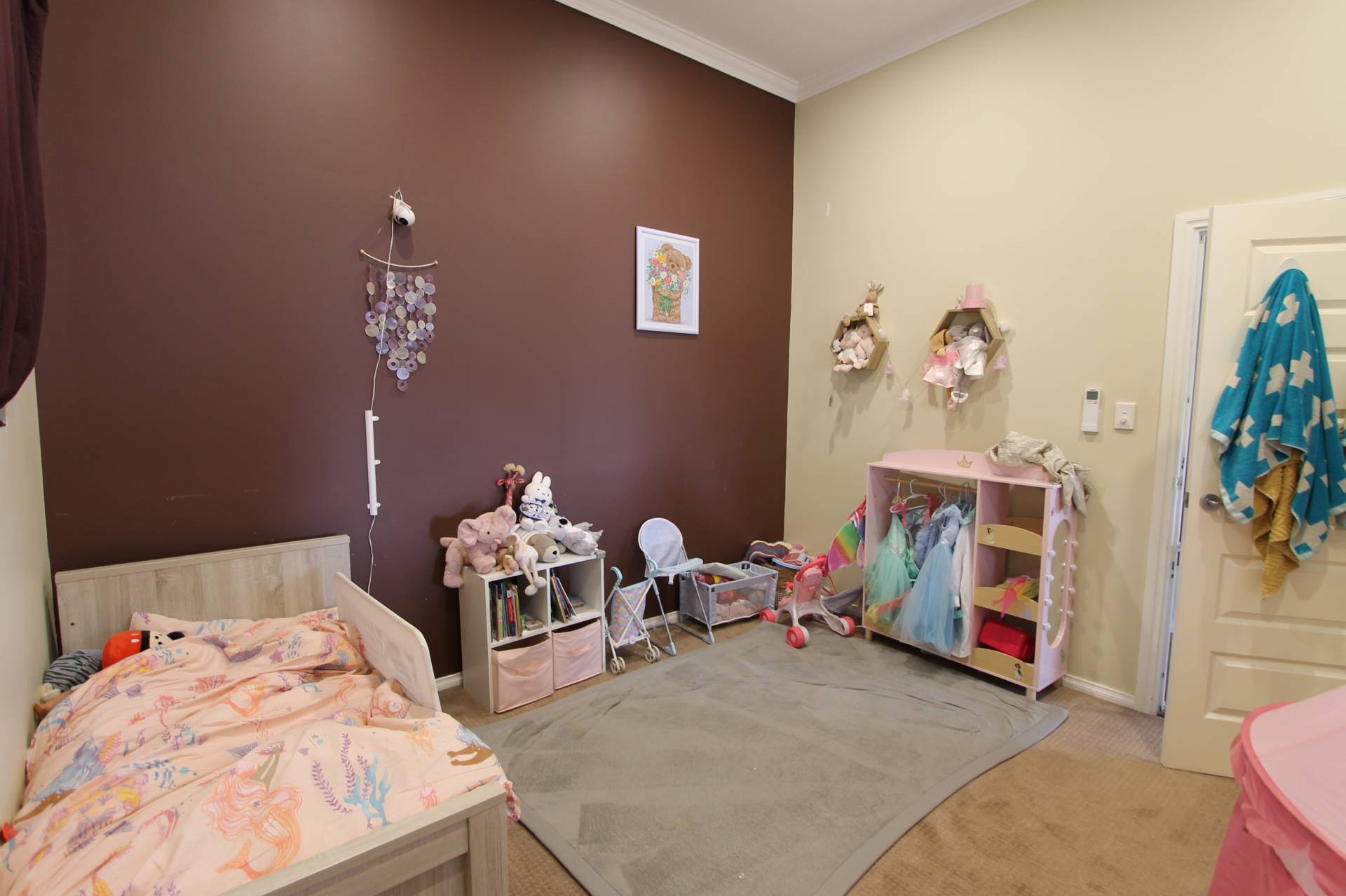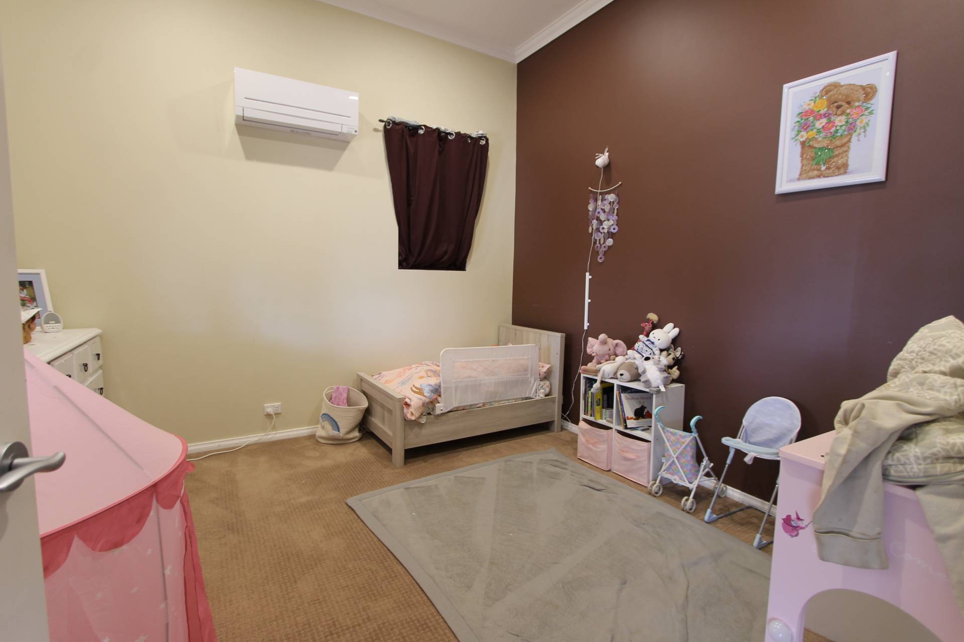 To the right side of the new extension features your 4th bedroom which is large in size, has plush carpet, a split system air-con and large double mirrored built-in robe – perfect for your nursery! The bathroom is modern and well set out with your vanity and separate shower. The separate toilet is located at the end of the hallway.