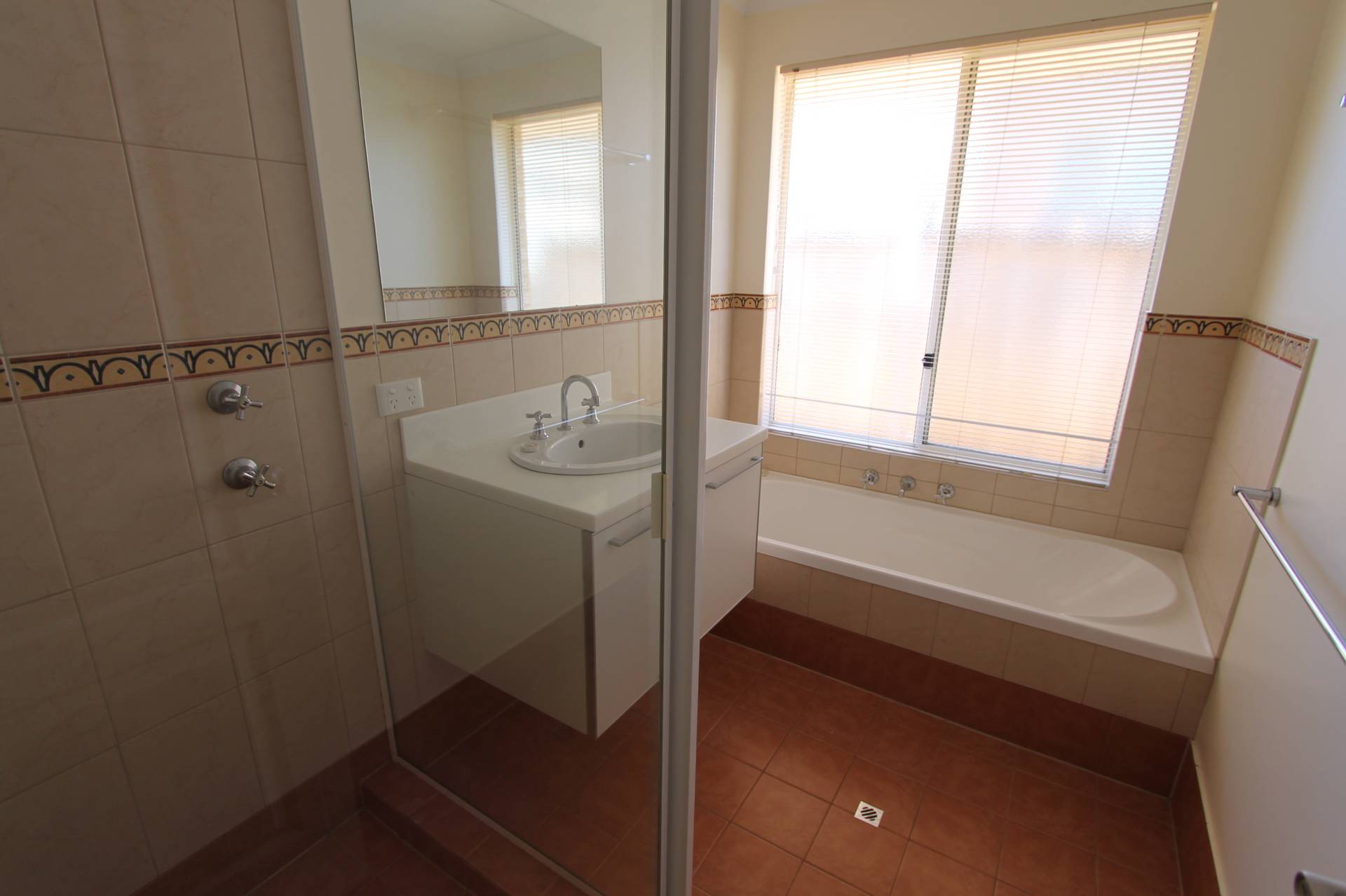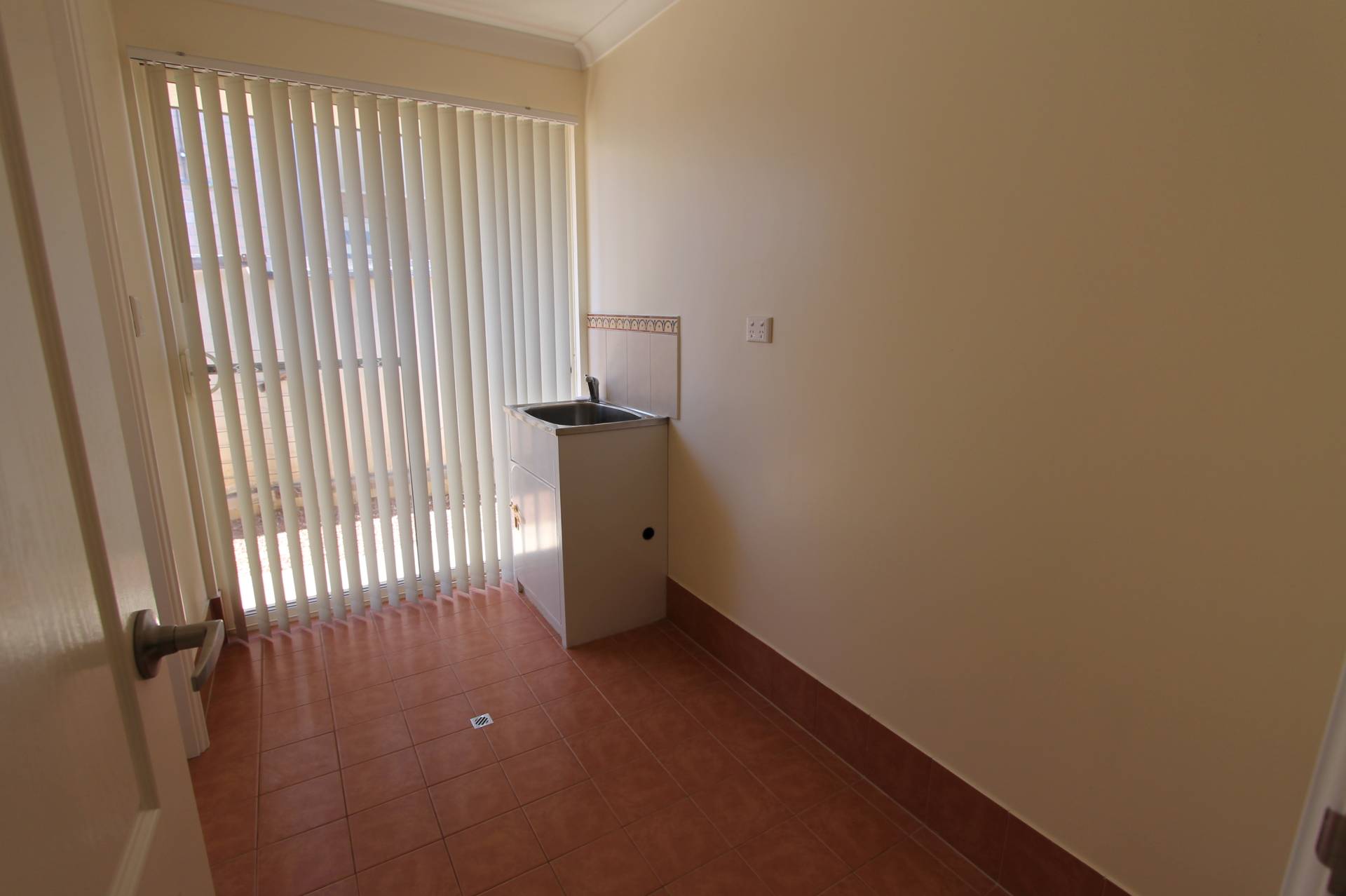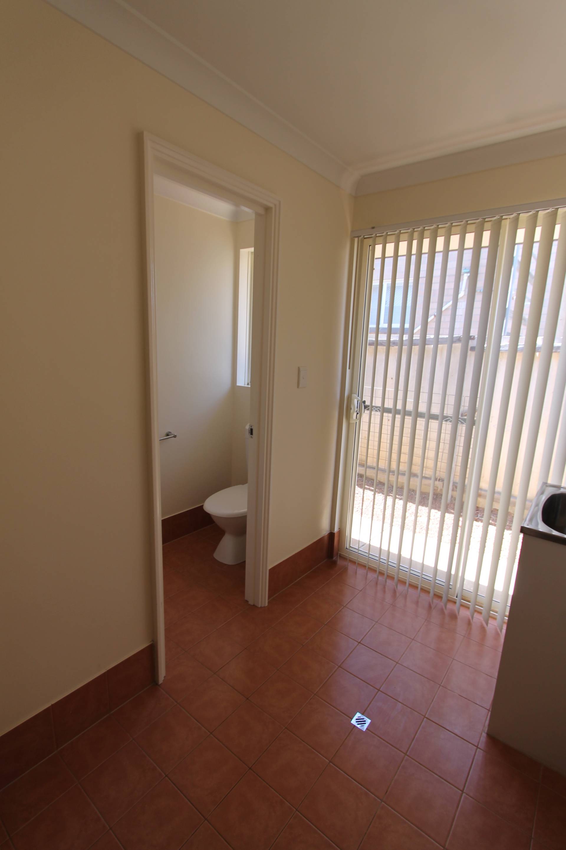 The laundry is well sized with a trough plus room for your washing machine and additional storage if desired. There is side access via glass sliding door. A separate toilet is located off the laundry.