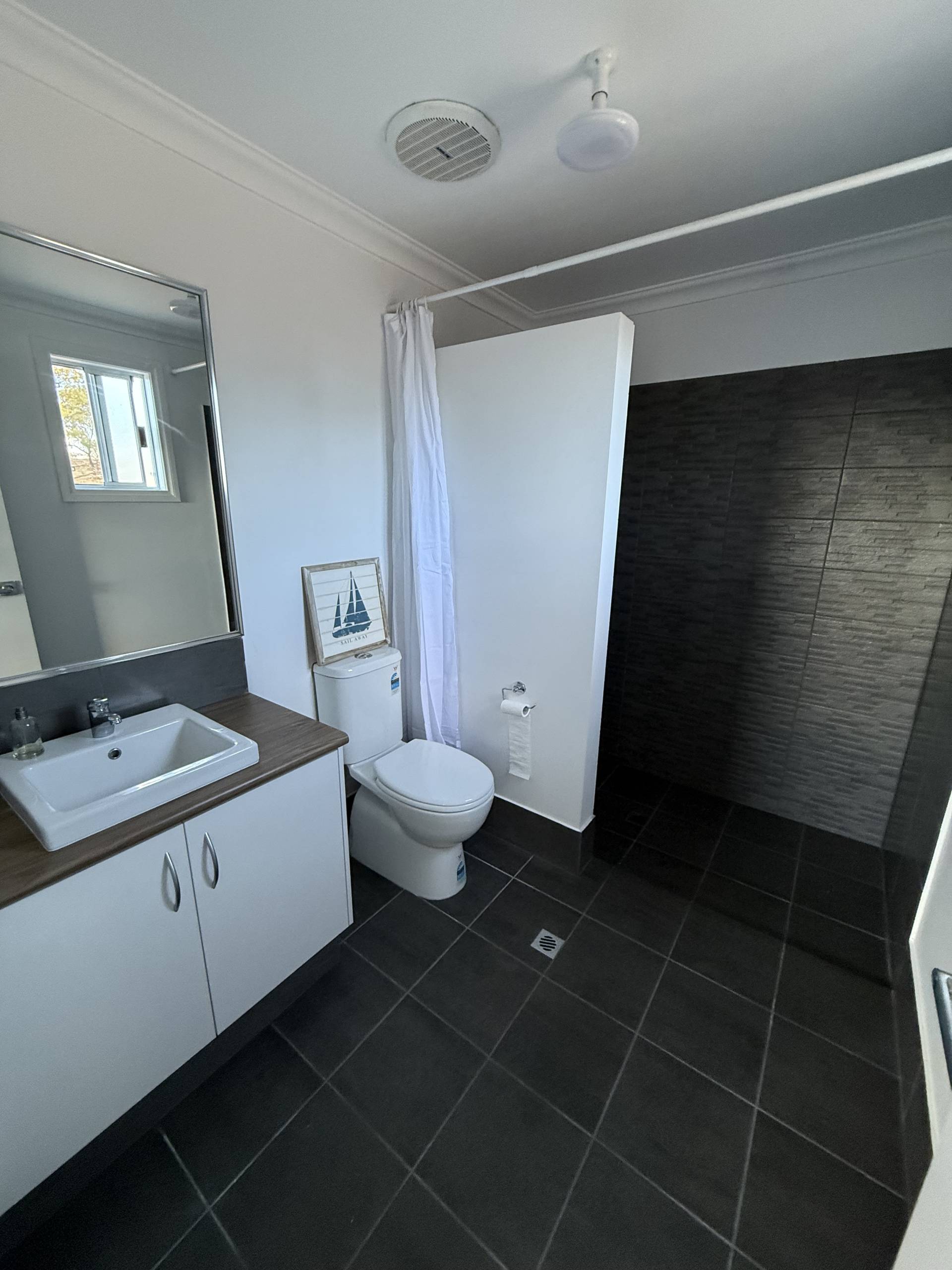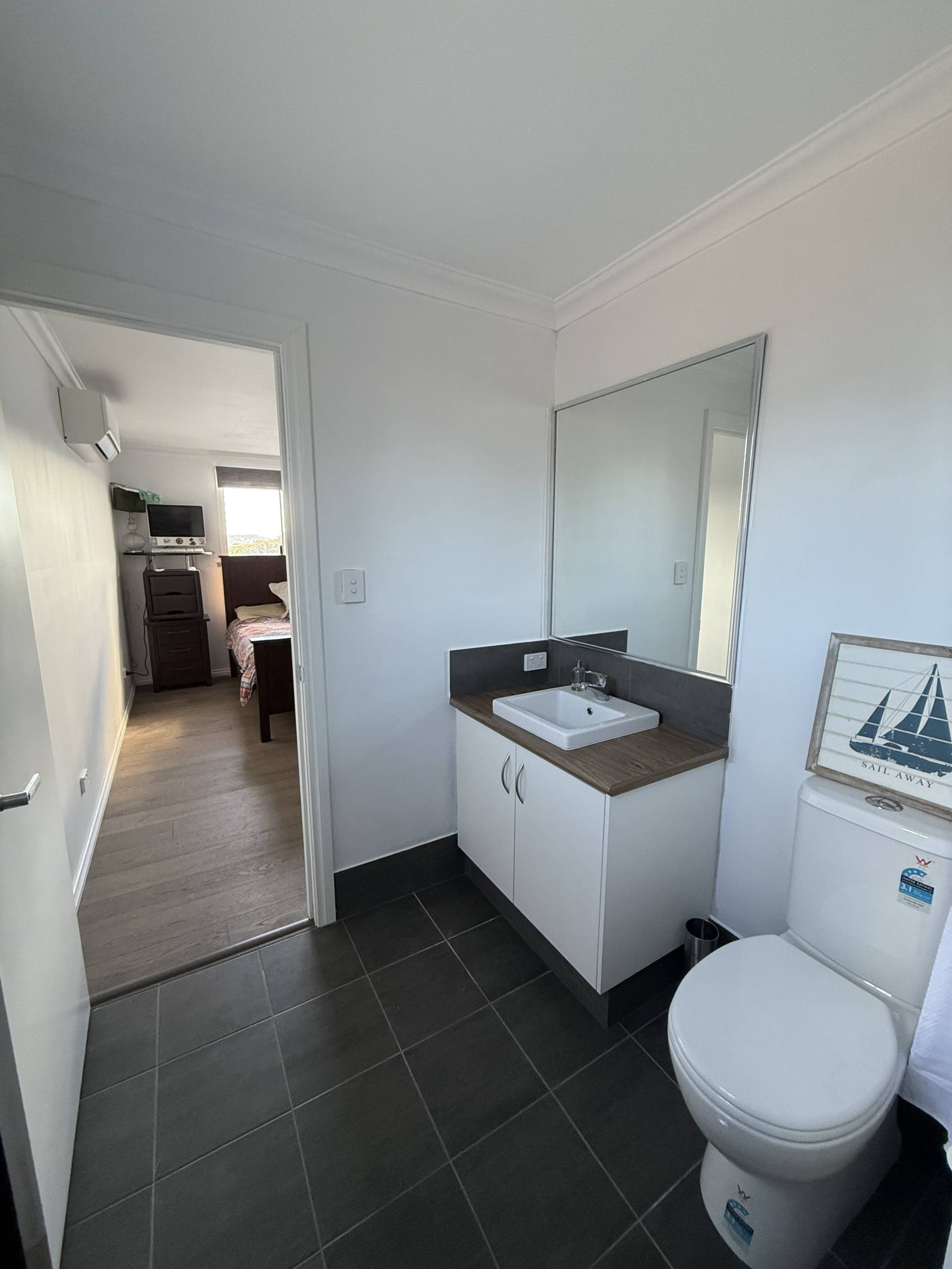At the end of the hallway, you have the spacious master bedroom, with a walk-in wardrobe and ensuite. A split system services this room as well.