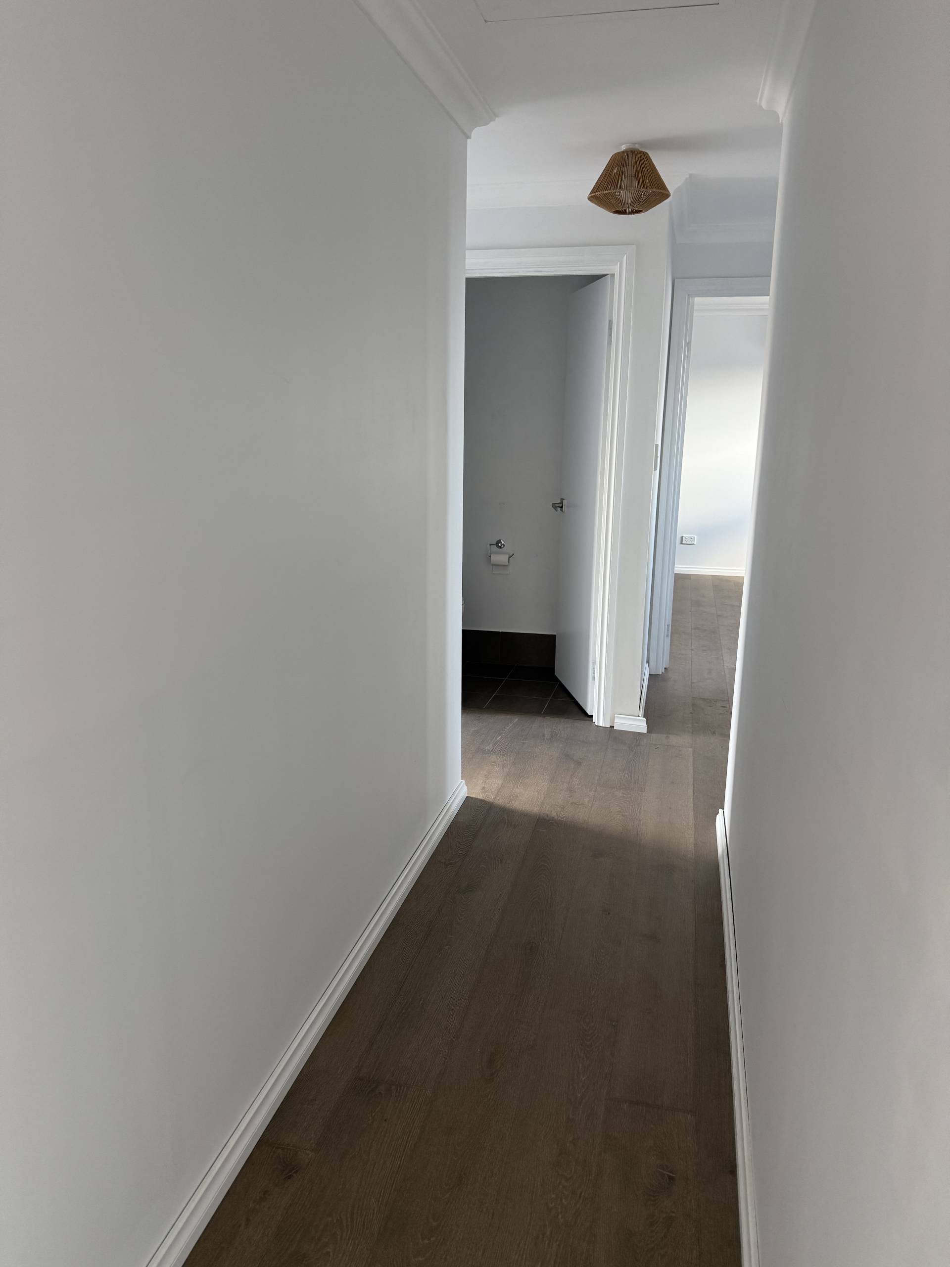 To your right, you have the hallway that leads you to your three bedrooms, bathroom and laundry area.