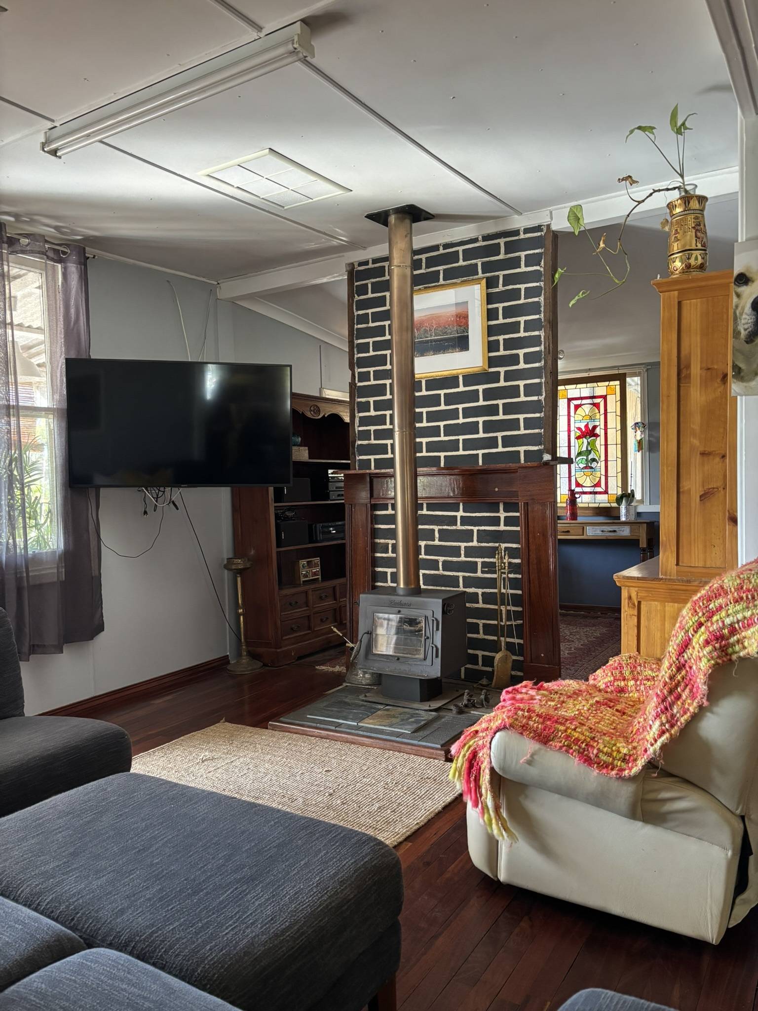 The home itself is a beautifully renovated 3-bedroom, 1-bathroom residence with original timber floors, reverse-cycle A/C, gas hot water, and a cozy fireplace. Wide verandas invite you to relax and take in sweeping views across the countryside — a lifestyle many dream of.