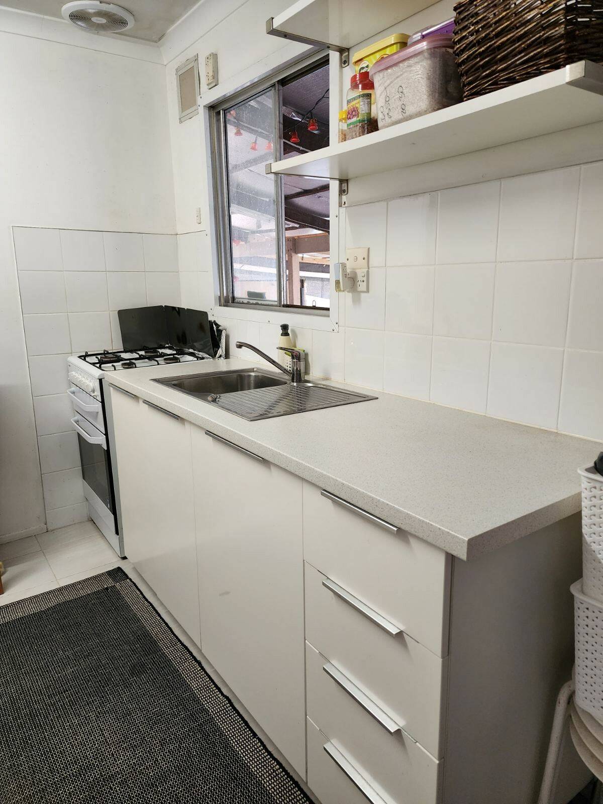 To one end of the home is a long lounge/dining area which is serviced by a split system air-con. The kitchen is located in the middle with updated cabinetry and gas cooking.
