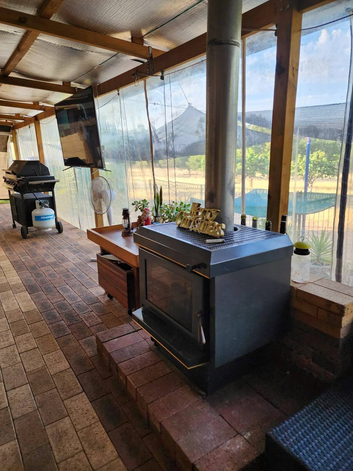 Through the sliding door, you access the huge alfresco area which has a fireplace, perfect for the winter.