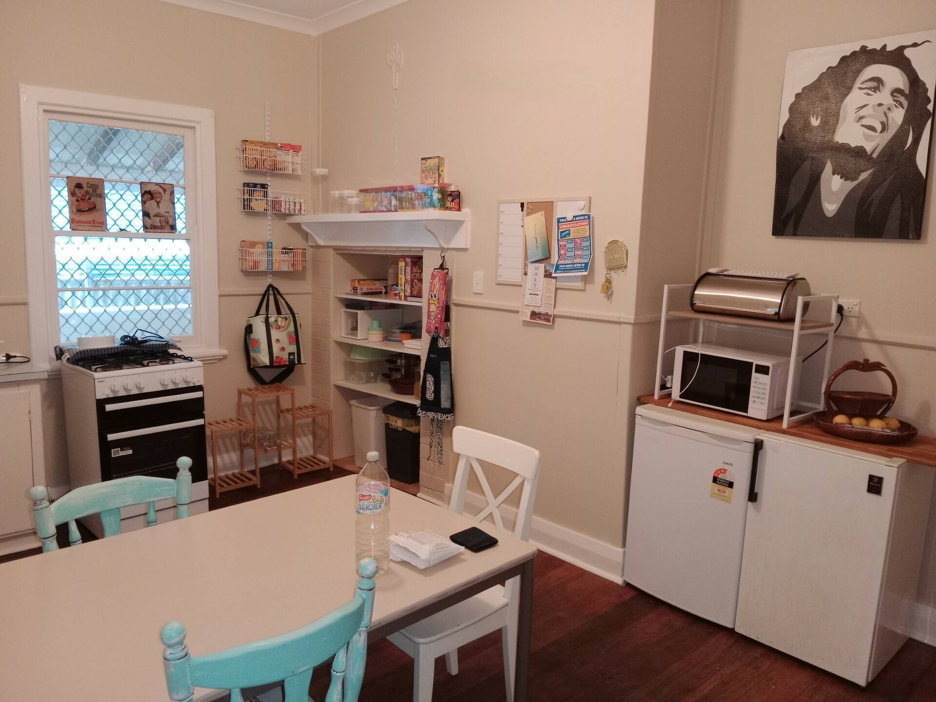 To the heart of the home is your kitchen featuring gas cooking and cabinets tucked in the corner. This room is large in size and has plenty of room for additional cupboards for storage, as well as your dining table. The original fireplace brick have been maintained to add character and turned into a storage nook.