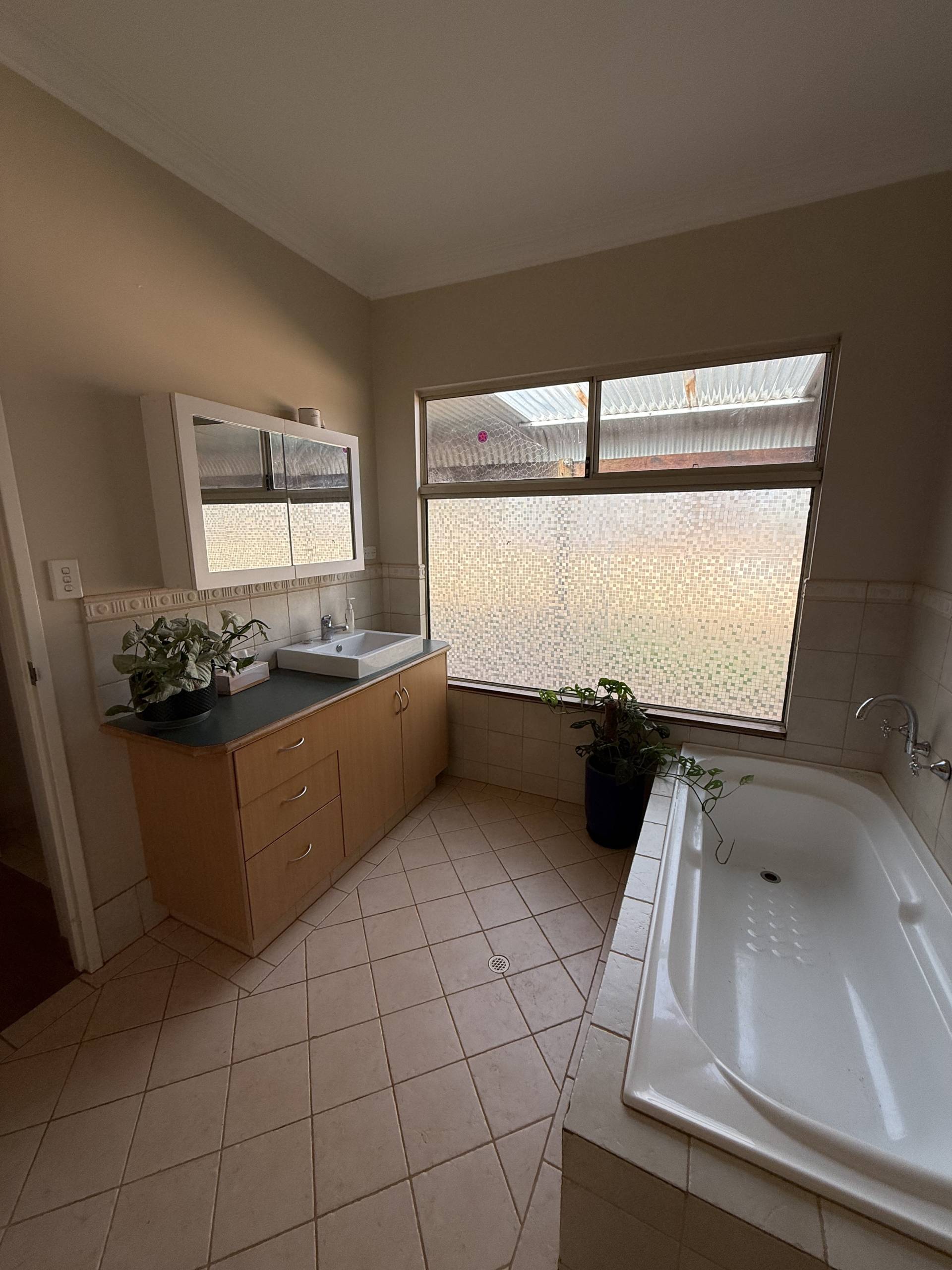 All bedrooms are of decent size, and the master bedroom includes a built-in robe. The bathroom is central off the hallway, and includes a vanity, bath and corner shower. There is a second door to the bathroom that leads you into the main bedroom that gives you an ensuite feel.