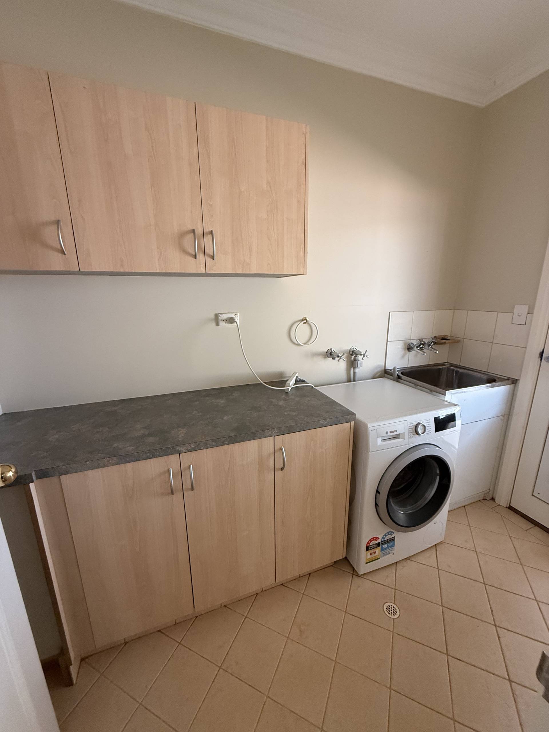 Comfortable bench space to the laundry, along with access to the exterior. There is also a dog pen secured to the outside area off the laundry.