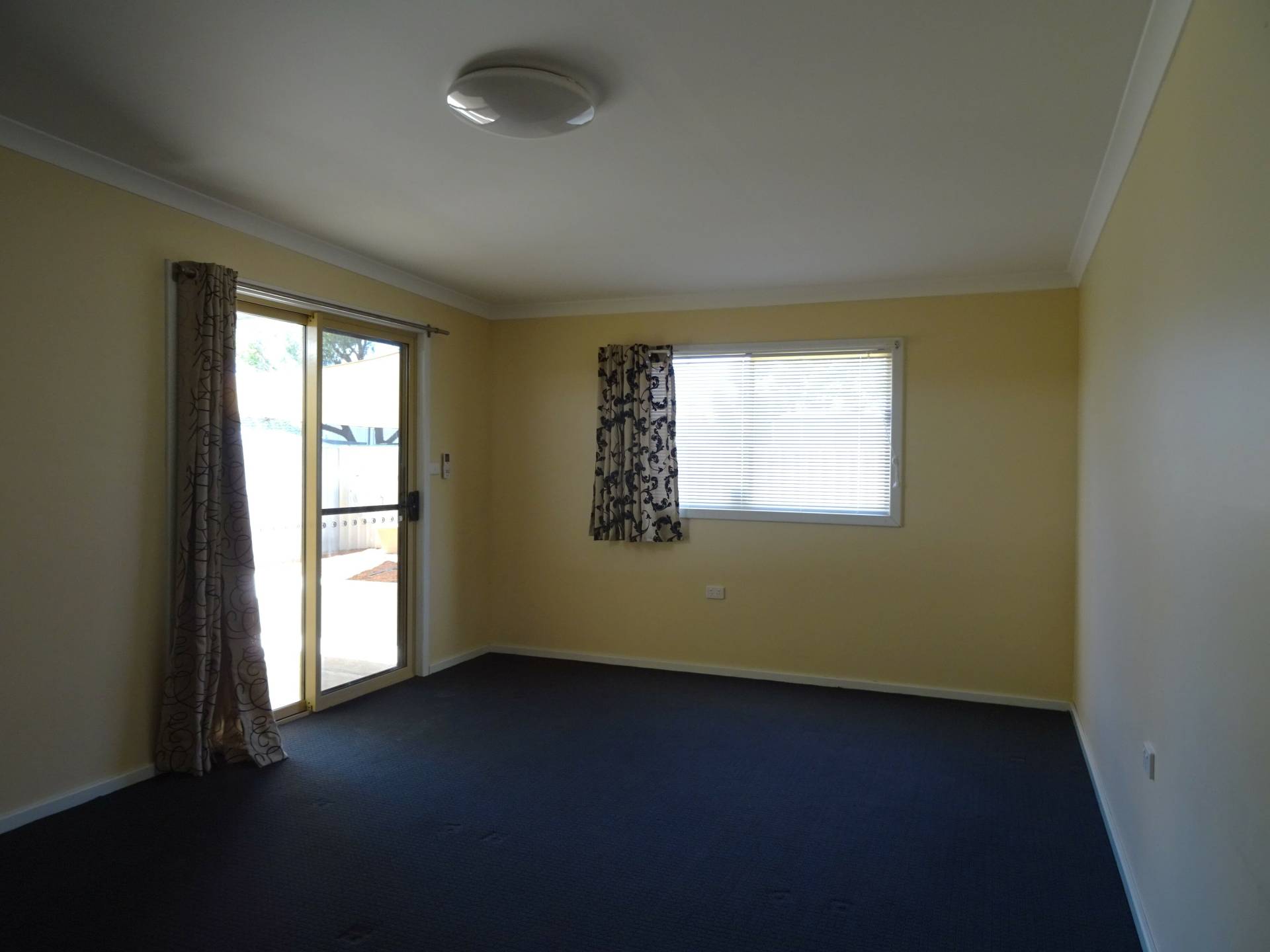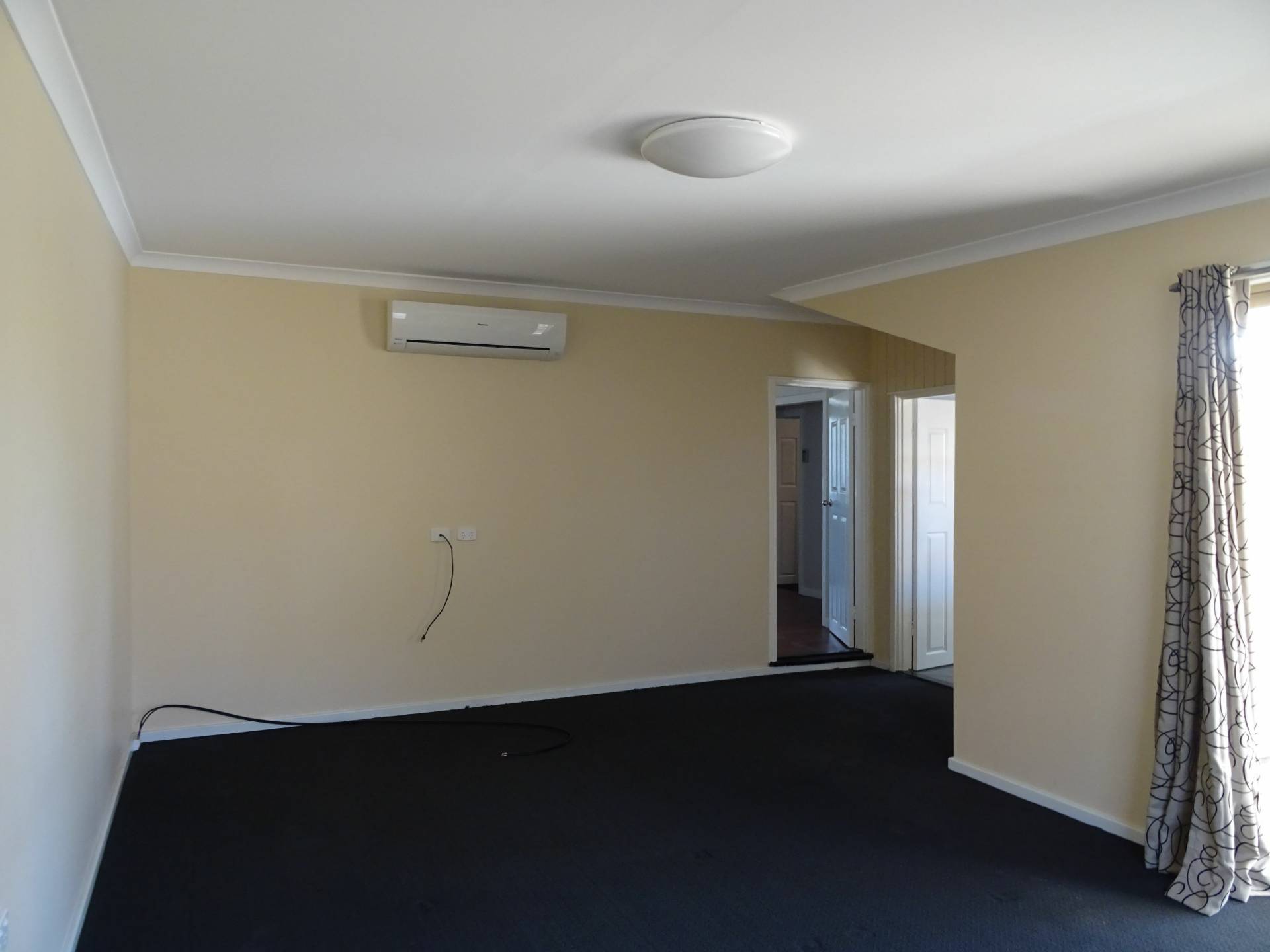 To the rear you have a large, carpeted lounge room with split system air-con. Access to your rear patio is via the glass sliding door. Off this room, is your laundry and bathroom.