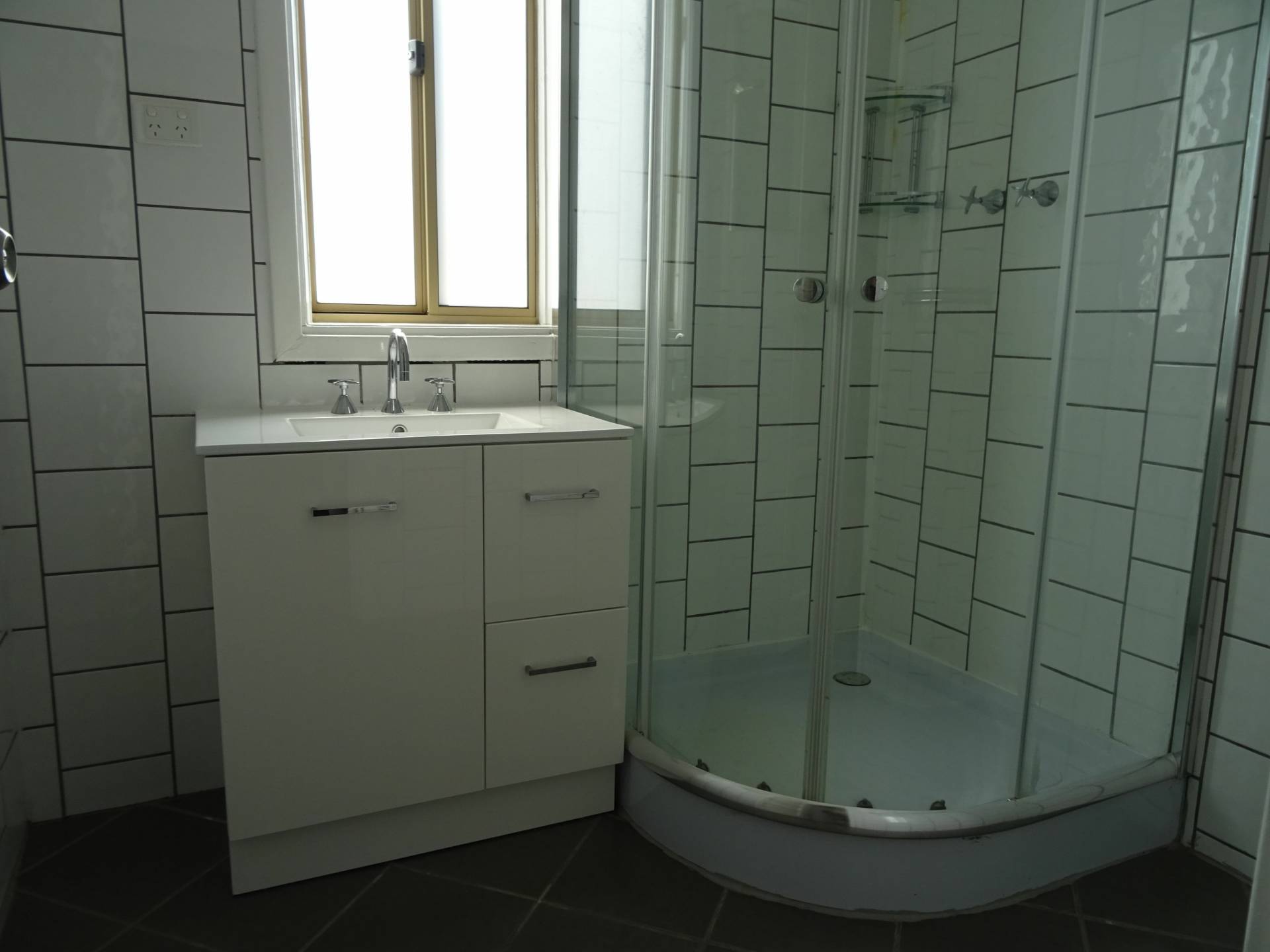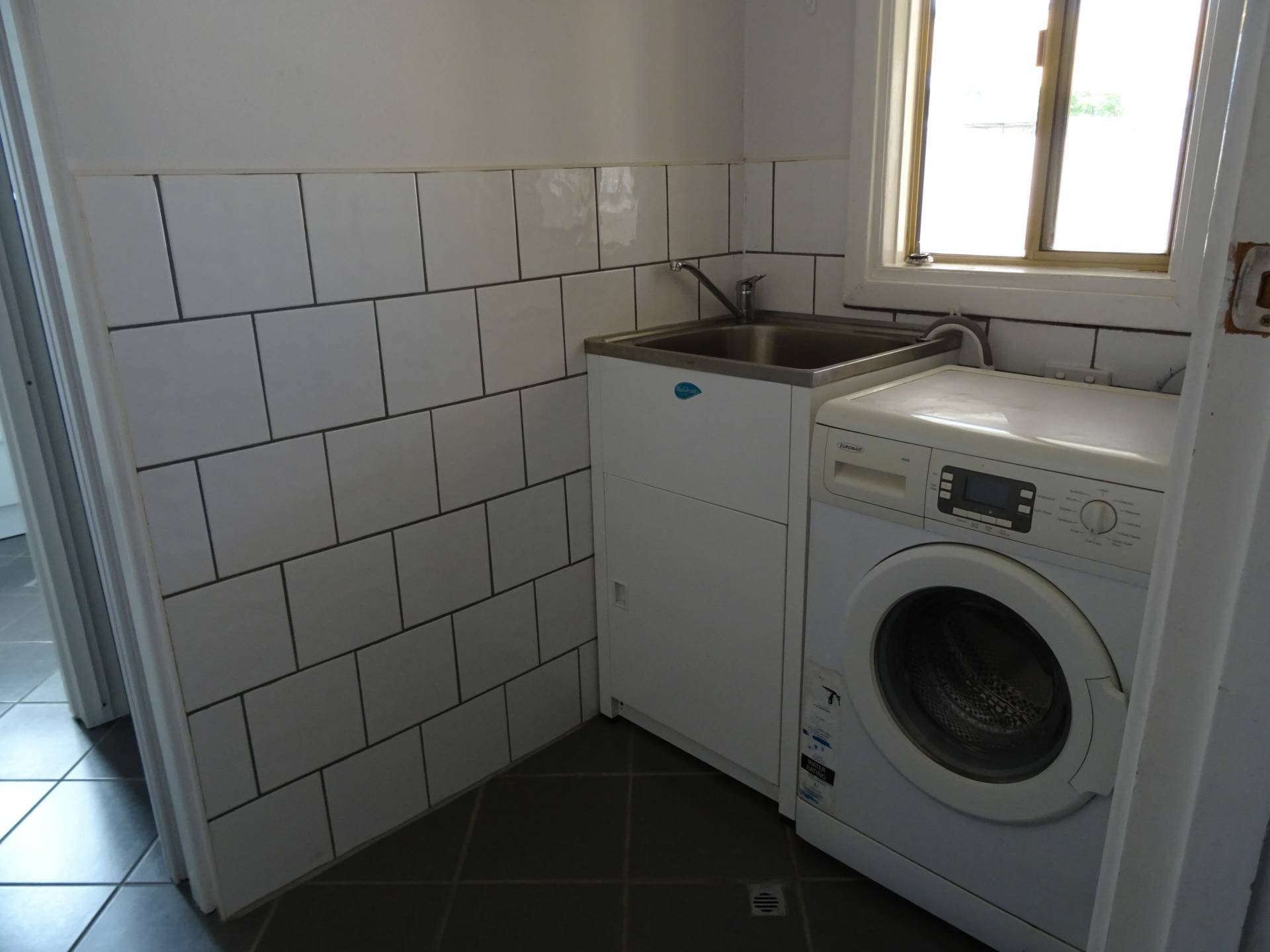 Through the compact laundry which has space for your washing machine, you have a separate toilet. The bathroom features a vanity and corner shower unit.