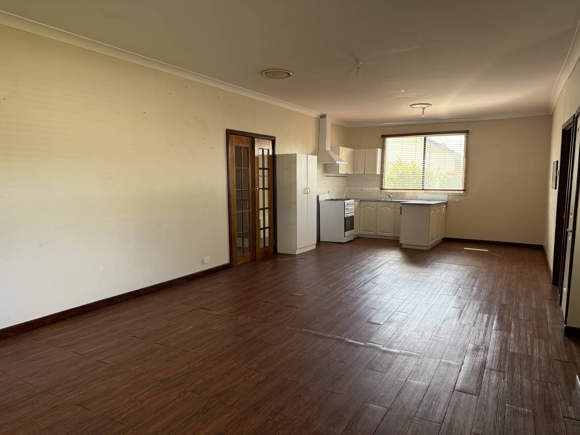 Through the front door, you walk into the open plan kitchen/living/dining area. The kitchen includes both under bench and over head cupboards and gas cooking.