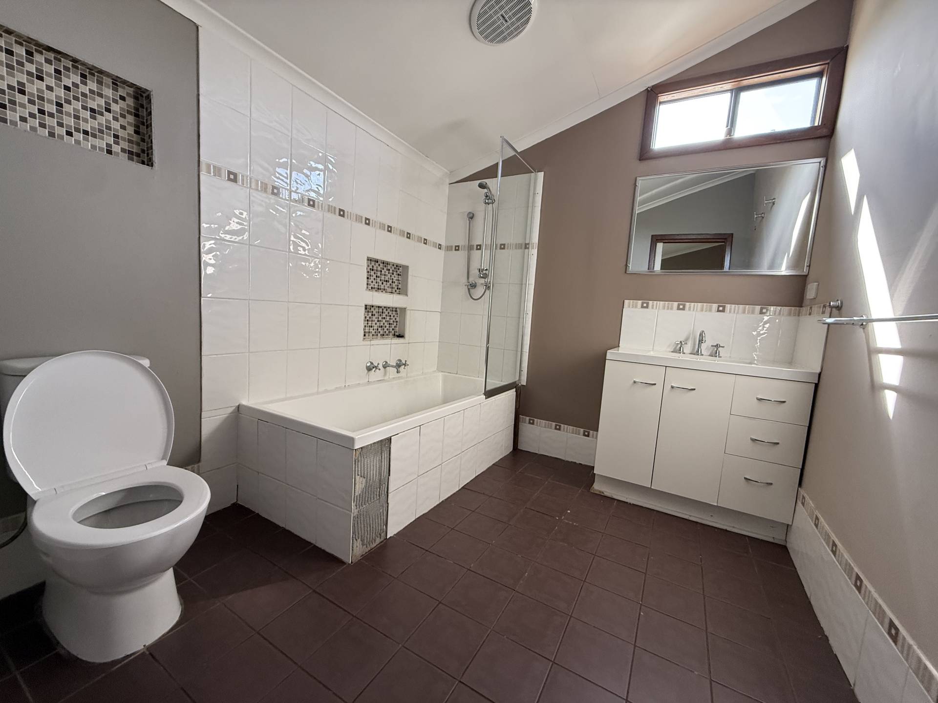 At the rear of the house you’ll find a fourth bedroom with a large built-in cupboard, the laundry area which has both bench and storage space, plus a bathroom featuring a shower over the bath, a vanity unit and toilet.