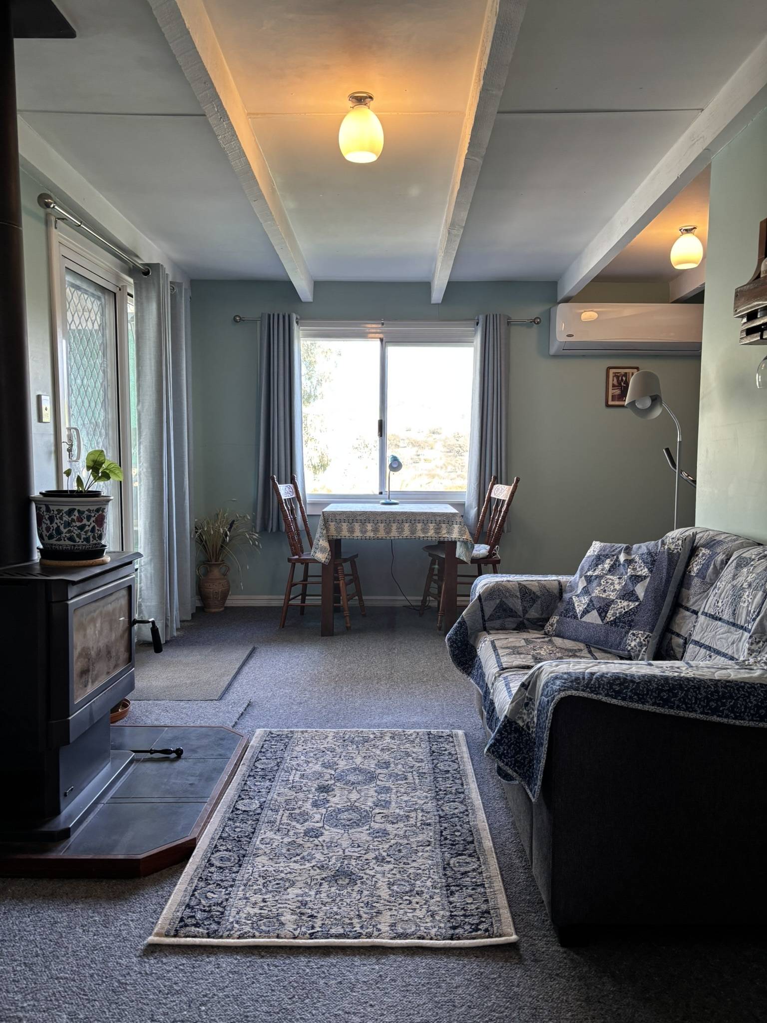 The main bathroom includes a toilet and is perfectly functional, and there’s a second toilet for added convenience in the laundry. A cozy wood fire and split system A/C keep you comfortable year-round, and a reading nook, sitting room, and dining space give you flexibility for how you want to live.