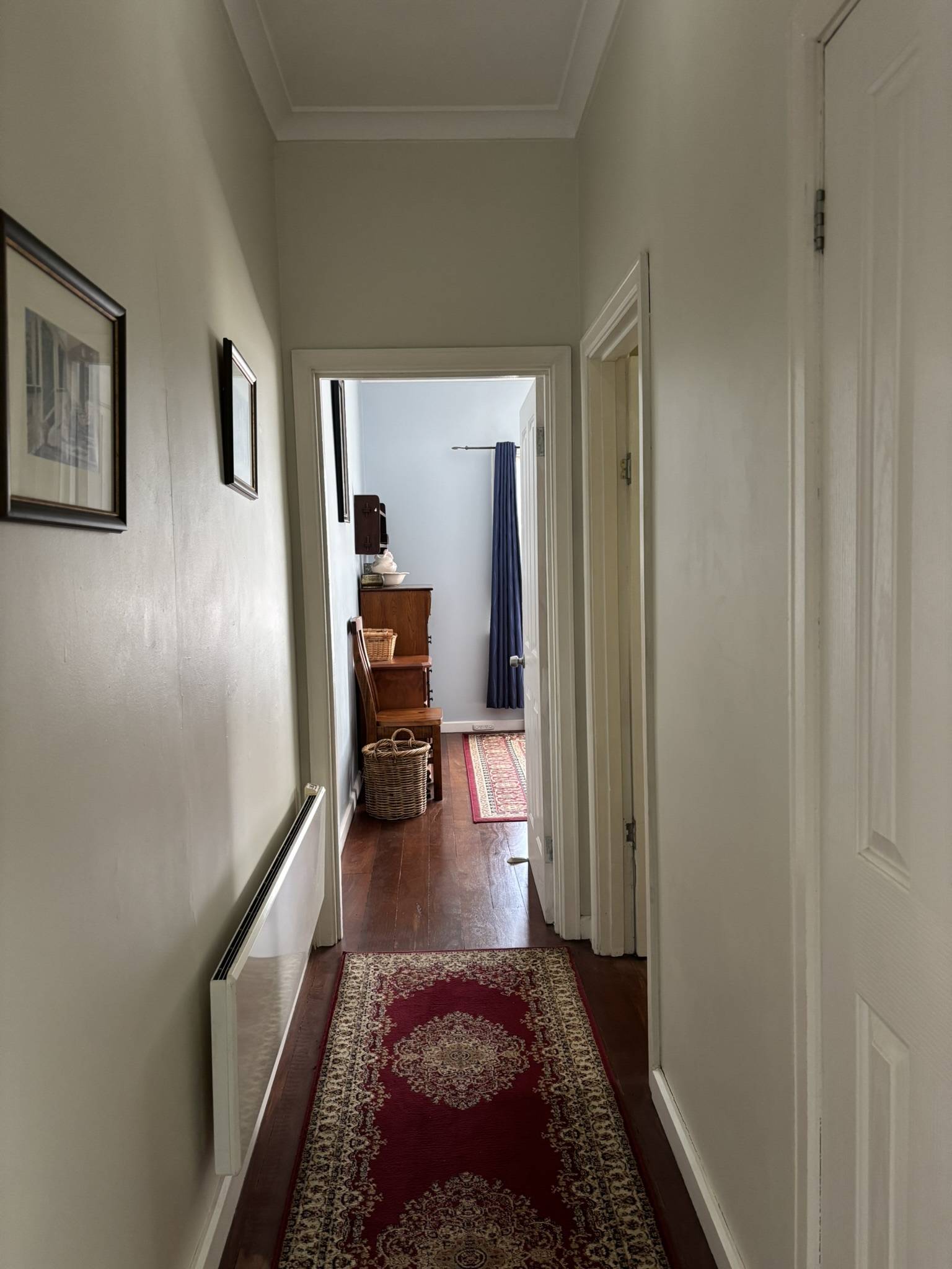 Inside, the master bedroom is a generous size with a large front-facing window offering natural light and privacy. Bedroom 2 sits between the master and main bathroom, making it ideal for families or guests, while Bedroom 3 is tucked away at the rear with built-in robes and serene views of the hills.