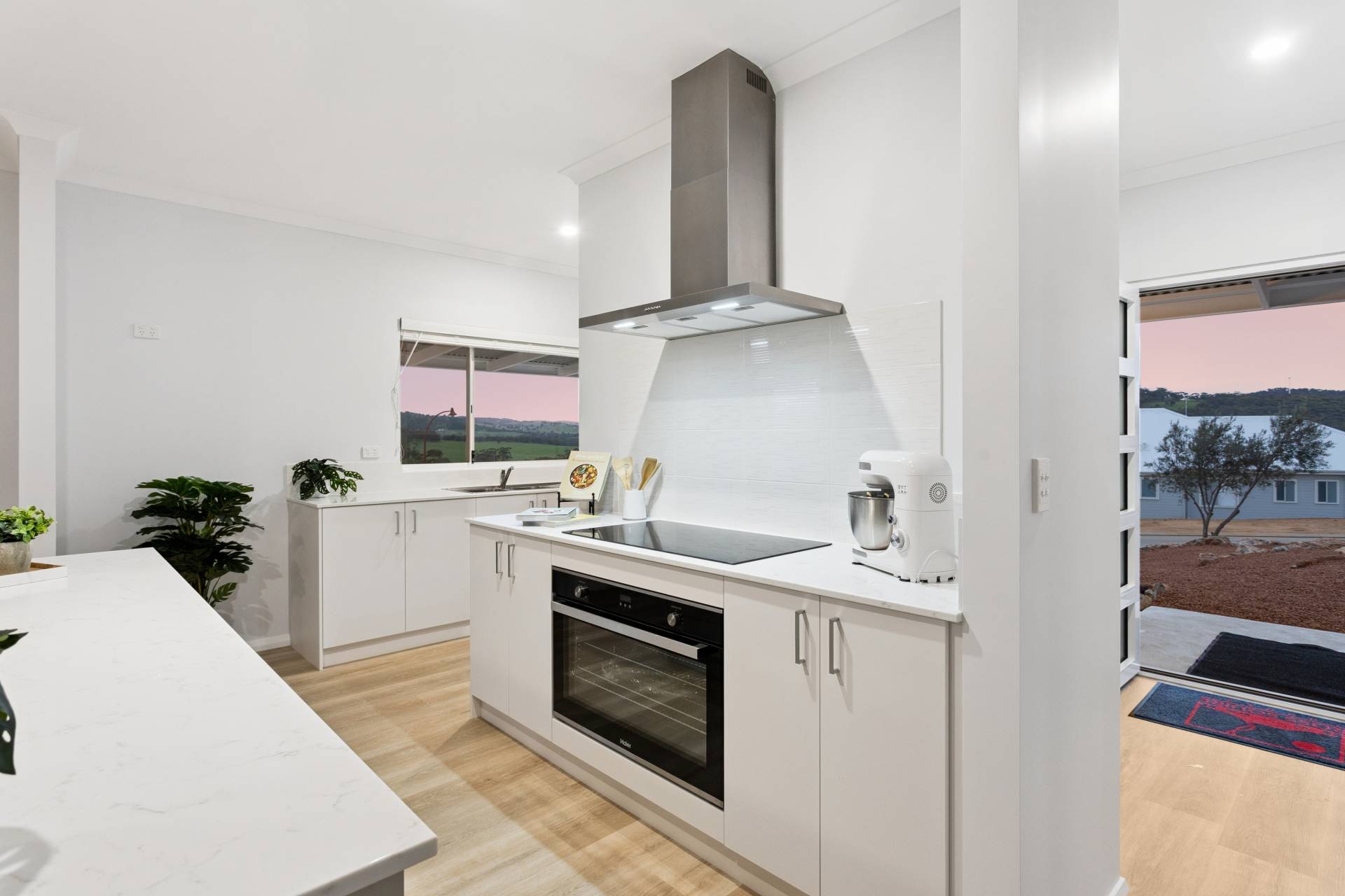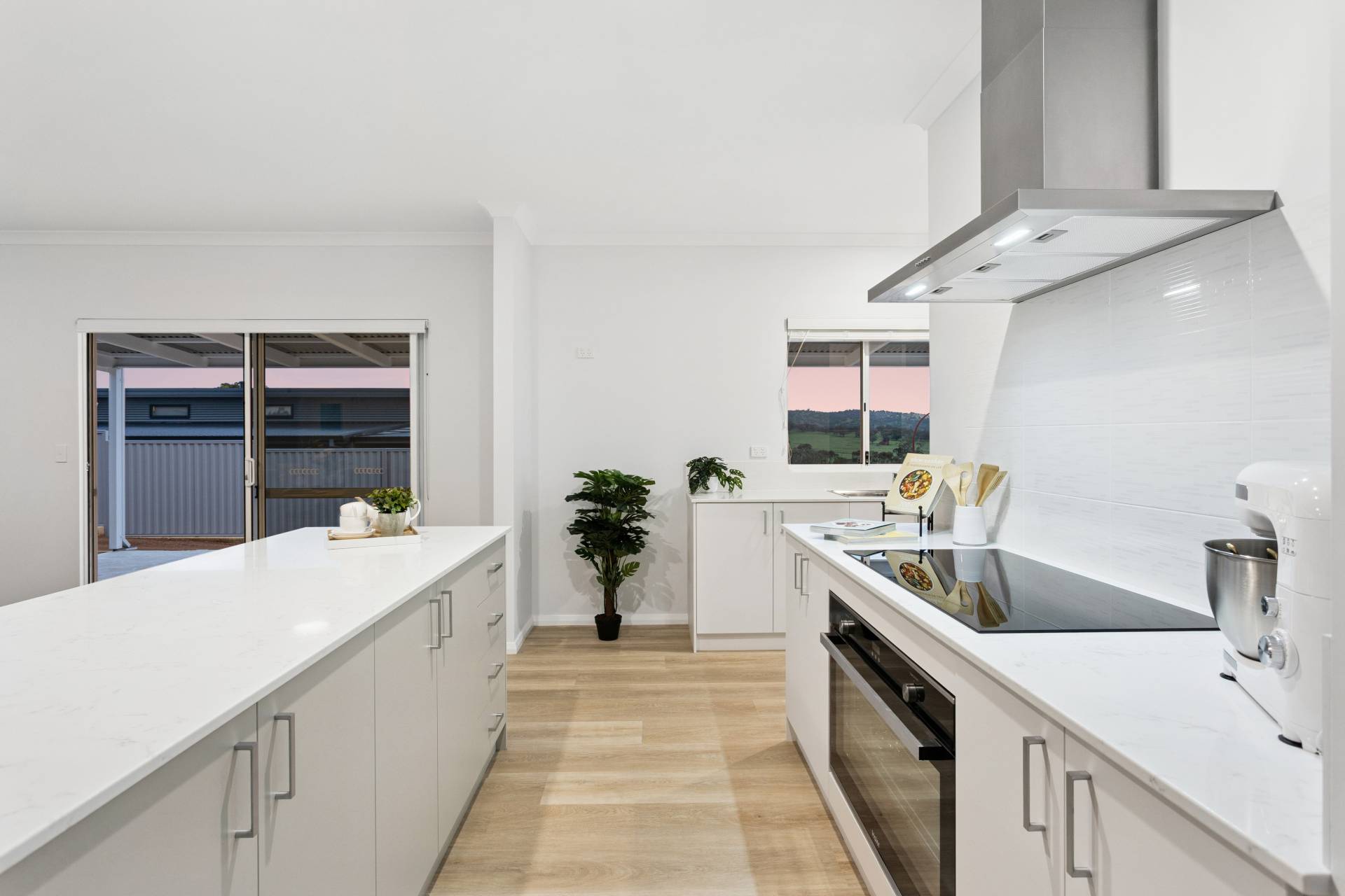 The kitchen is certain to attract attention, featuring an induction cooktop, 900 wide oven, large walk-in pantry, and wide corner windows that flood the space with natural light while framing the rolling Avon Valley landscape. Quality finishes, ample bench space, and room to gather make this a kitchen that’s as practical as it is stylish.