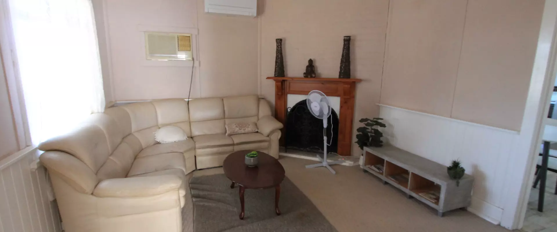 Fully furnished, this home compromises of a front lounge area which is serviced by a split system air-con. Off the lounge is the first bedroom, which has an additional room joining it, perfect for your dressing room.