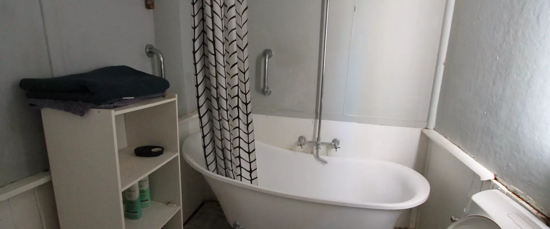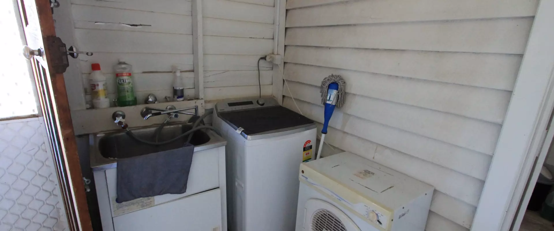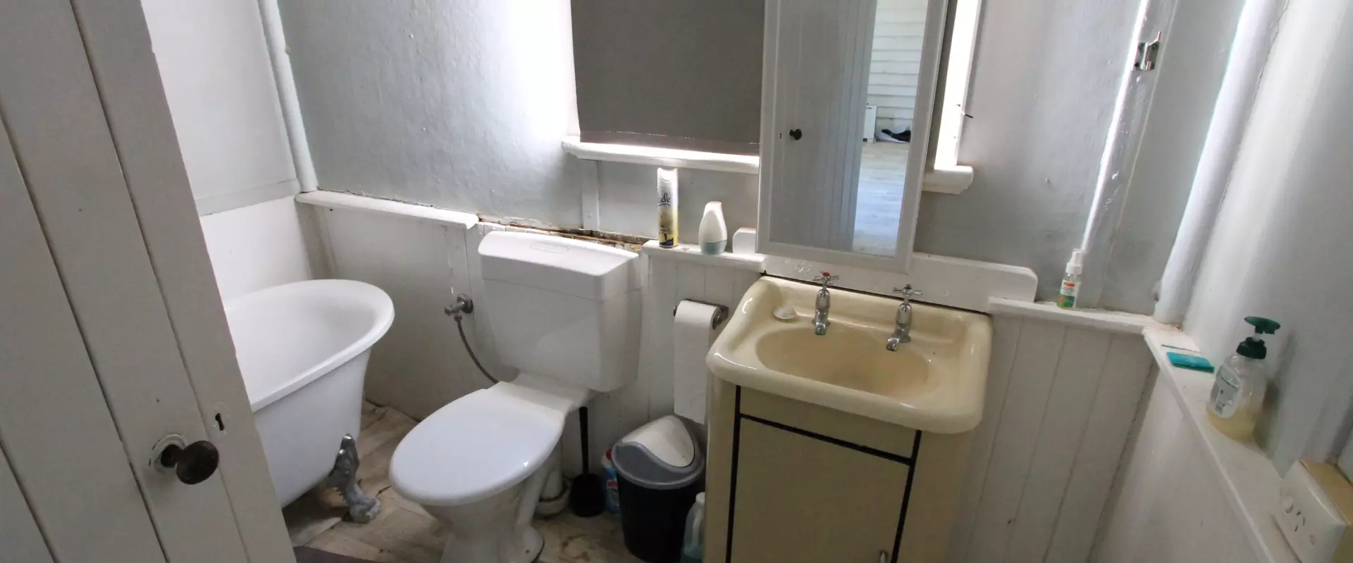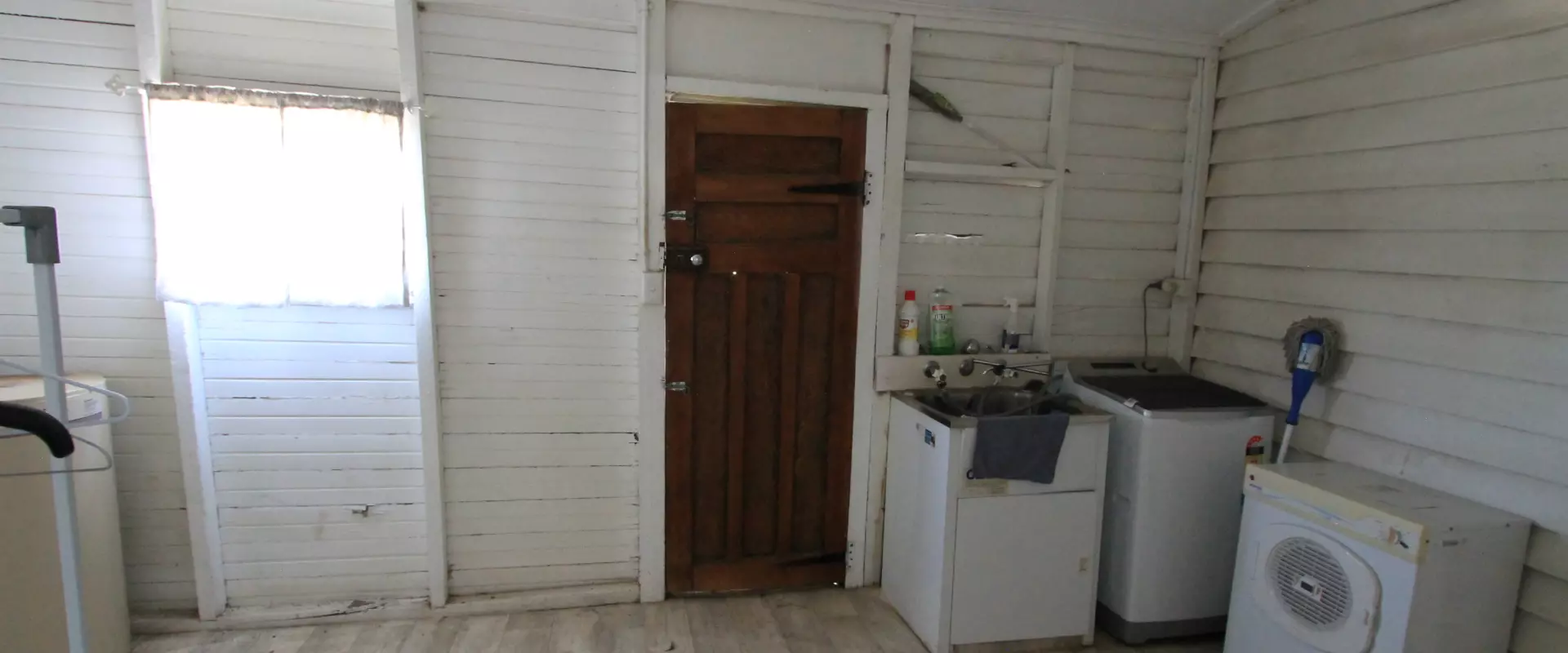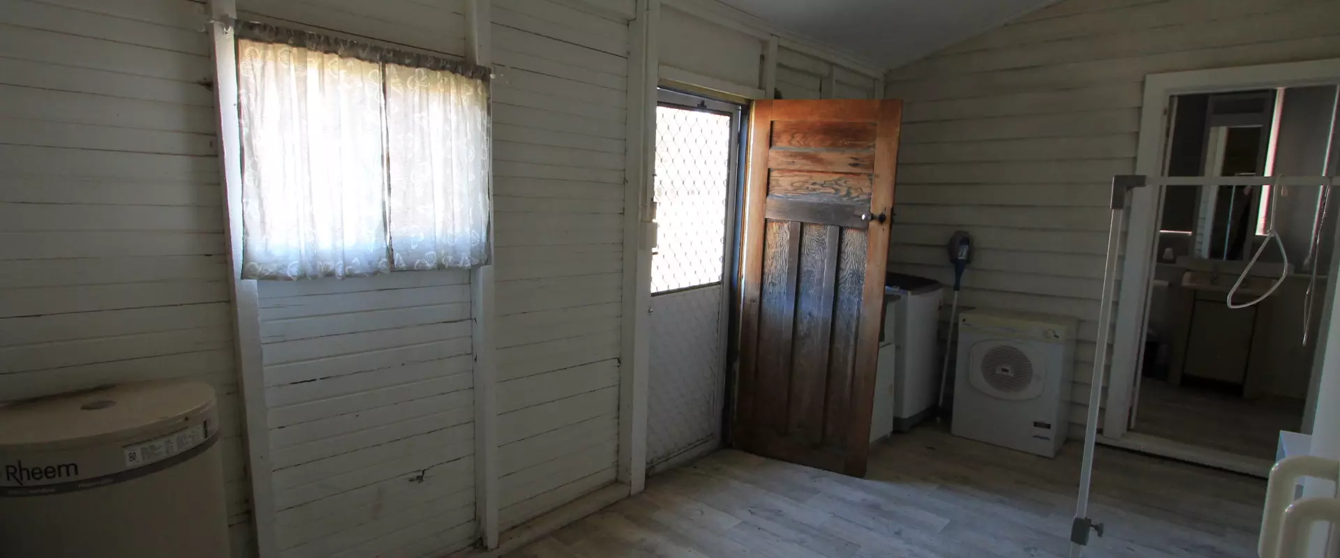 At the rear of the home is your laundry, a storage room and your bathroom. Bathroom features a shower over the claw foot bath, toilet and vanity unit.