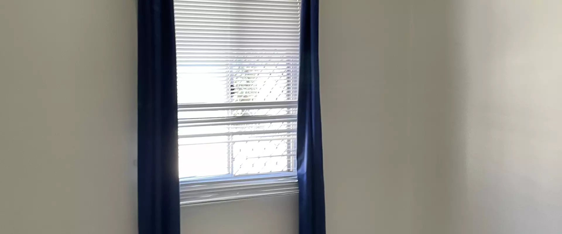 All three bedrooms are carpeted and have window treatments. The bathroom is modern with vanity and corner shower unit.