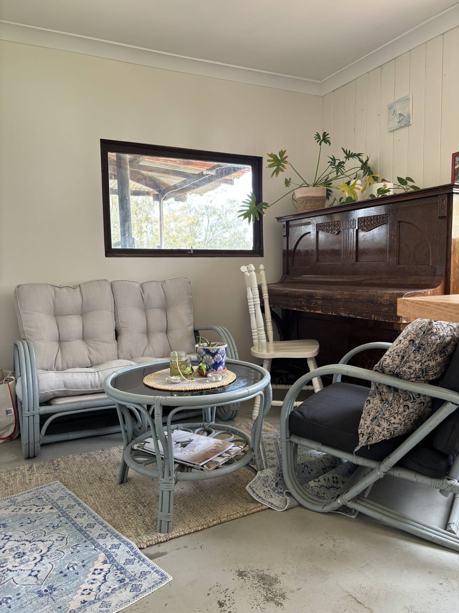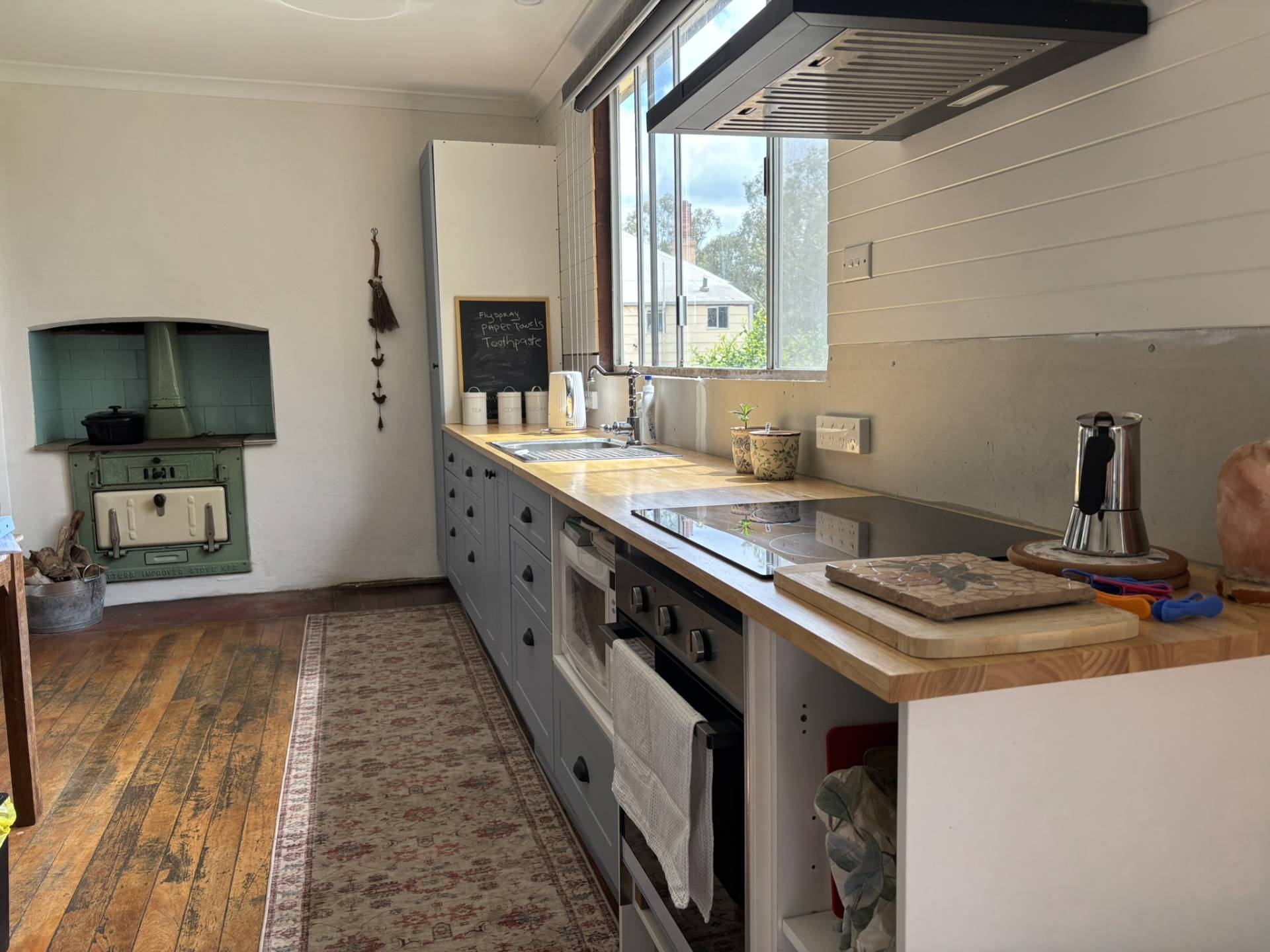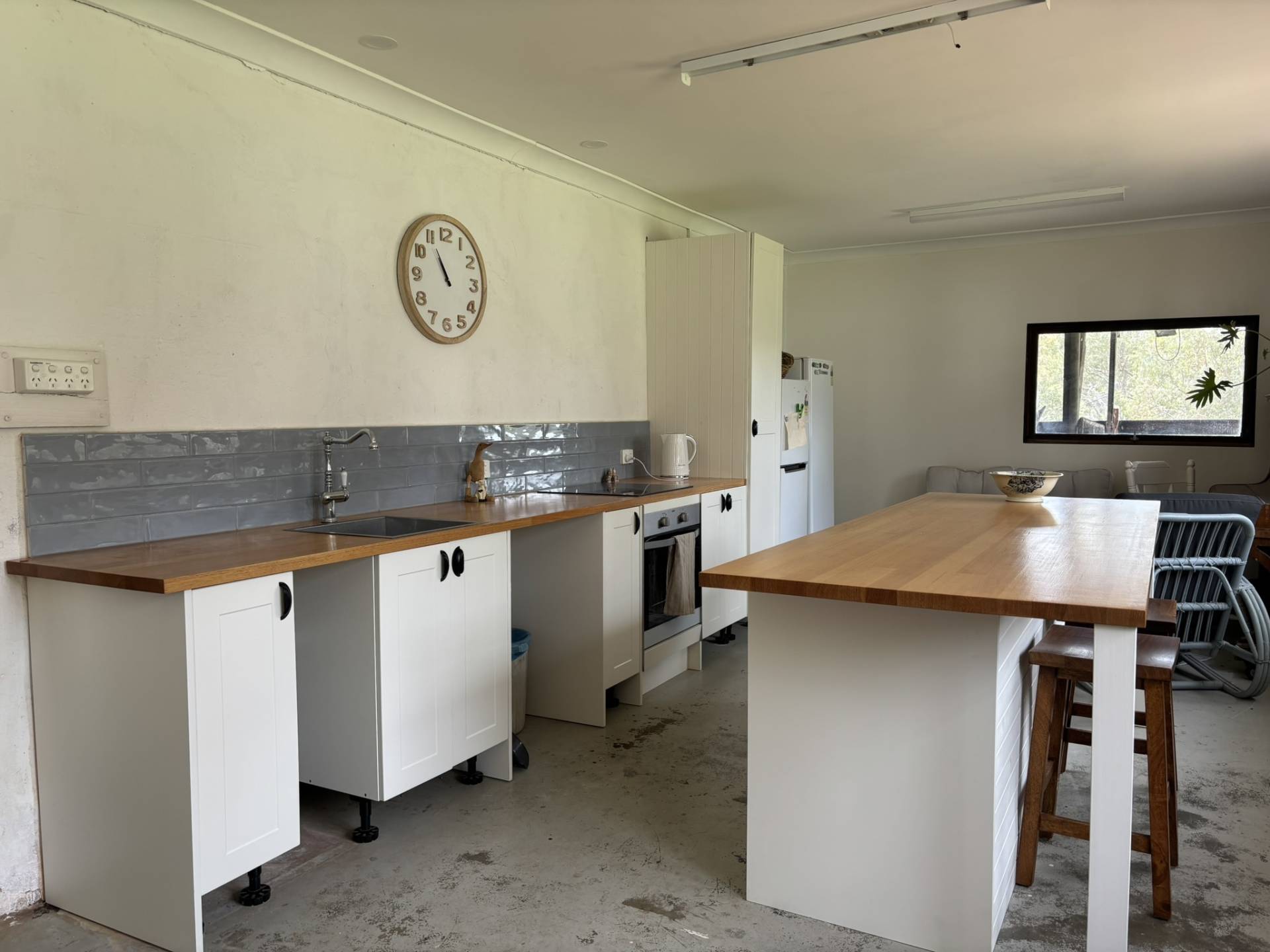 Out the back, you’ll find the original workshop, now thoughtfully converted into extra accommodation. Complete with its own kitchen, dining area, and bedroom, it exudes rustic warmth — from the original windows to the charming rustic concrete floors.