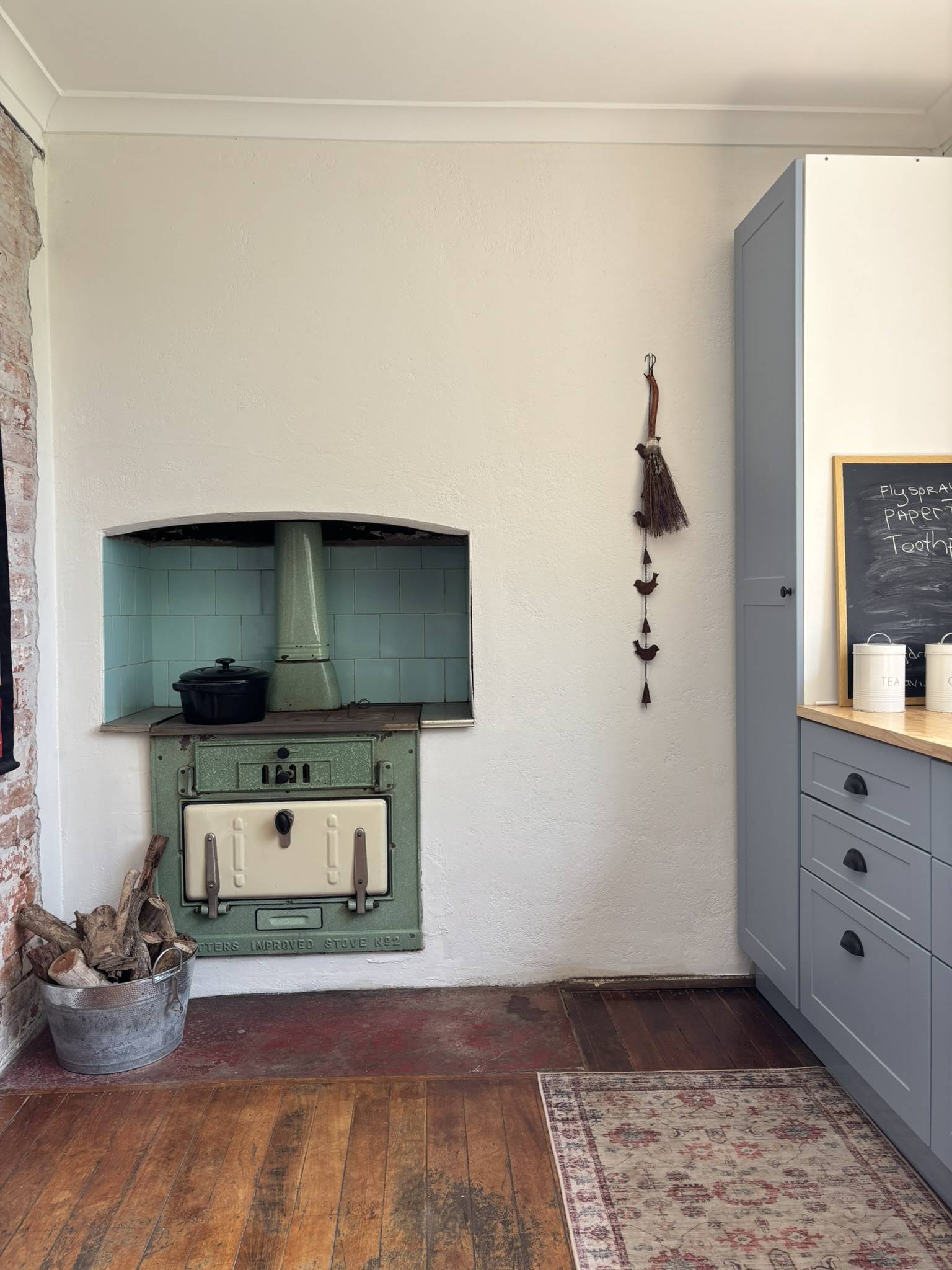 The cosy lounge with its crackling fire invites you to curl up with a book and take in the views of the cottage gardens through the window. The kitchen perfectly balances old and new, retaining the original Metters stove alongside updated cottage-style finishes.