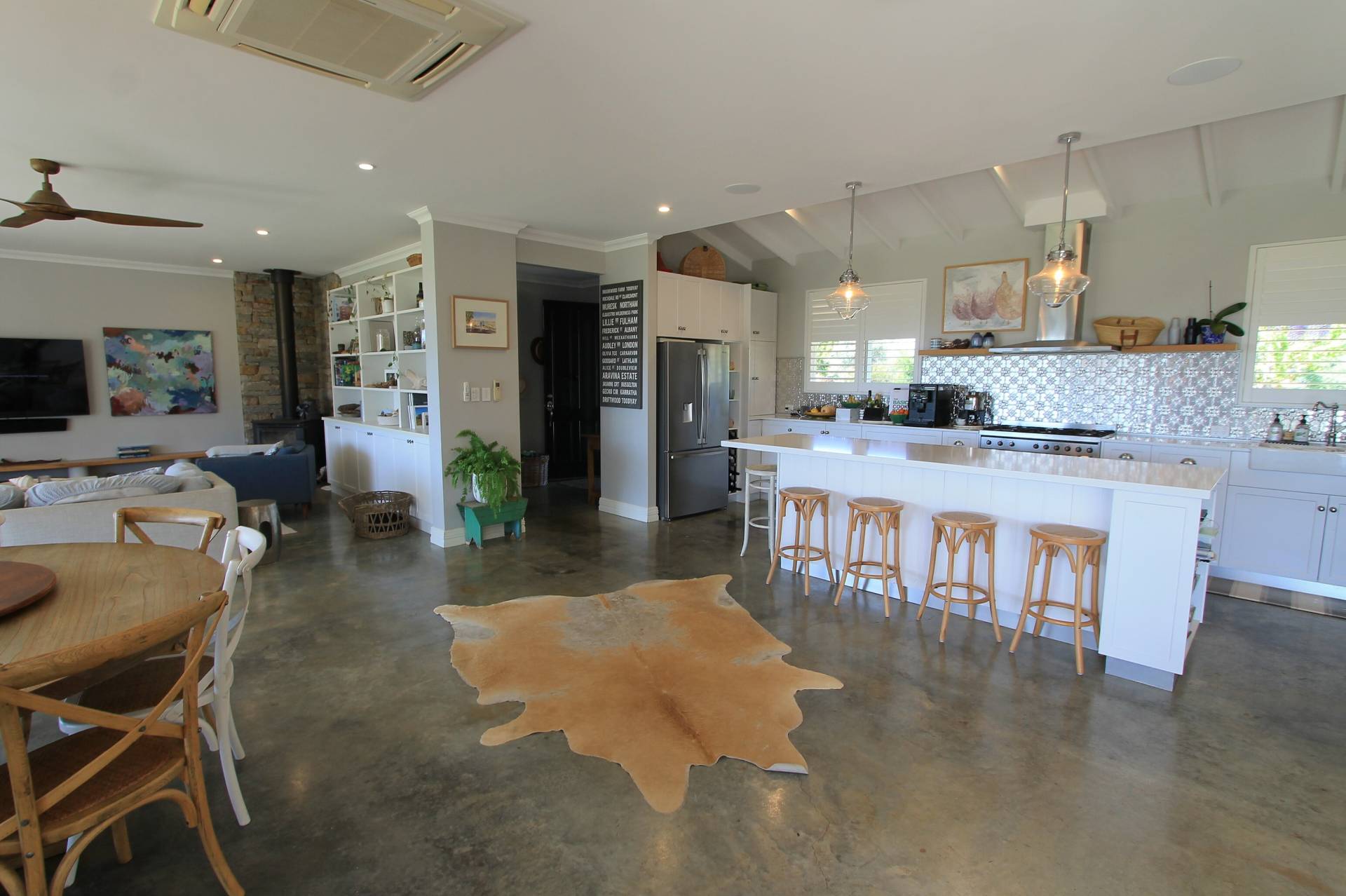 Step inside to find large open-plan living with a Scandia wood heater, Panasonic reverse cycle air conditioning, and a solar-passive design for year-round comfort. The modern kitchen is a true showstopper, featuring shaker-style cabinetry, a Bosch dishwasher, large SMEG oven, scullery, huge island bench, and plumbed-in fridge/freezer.