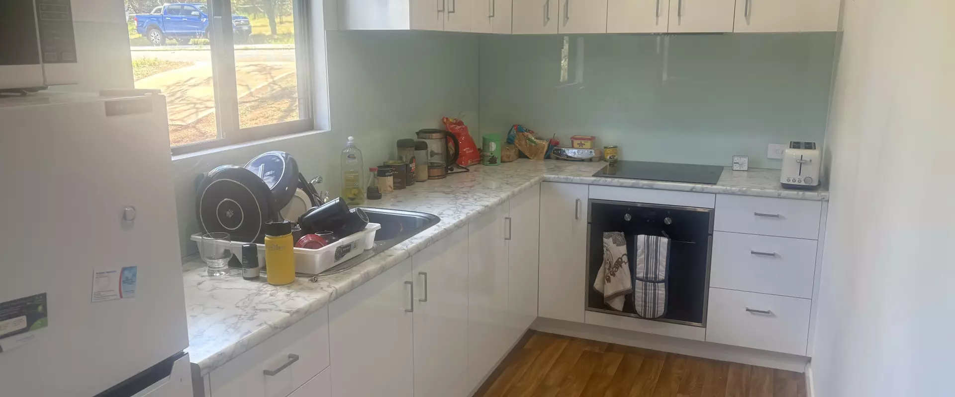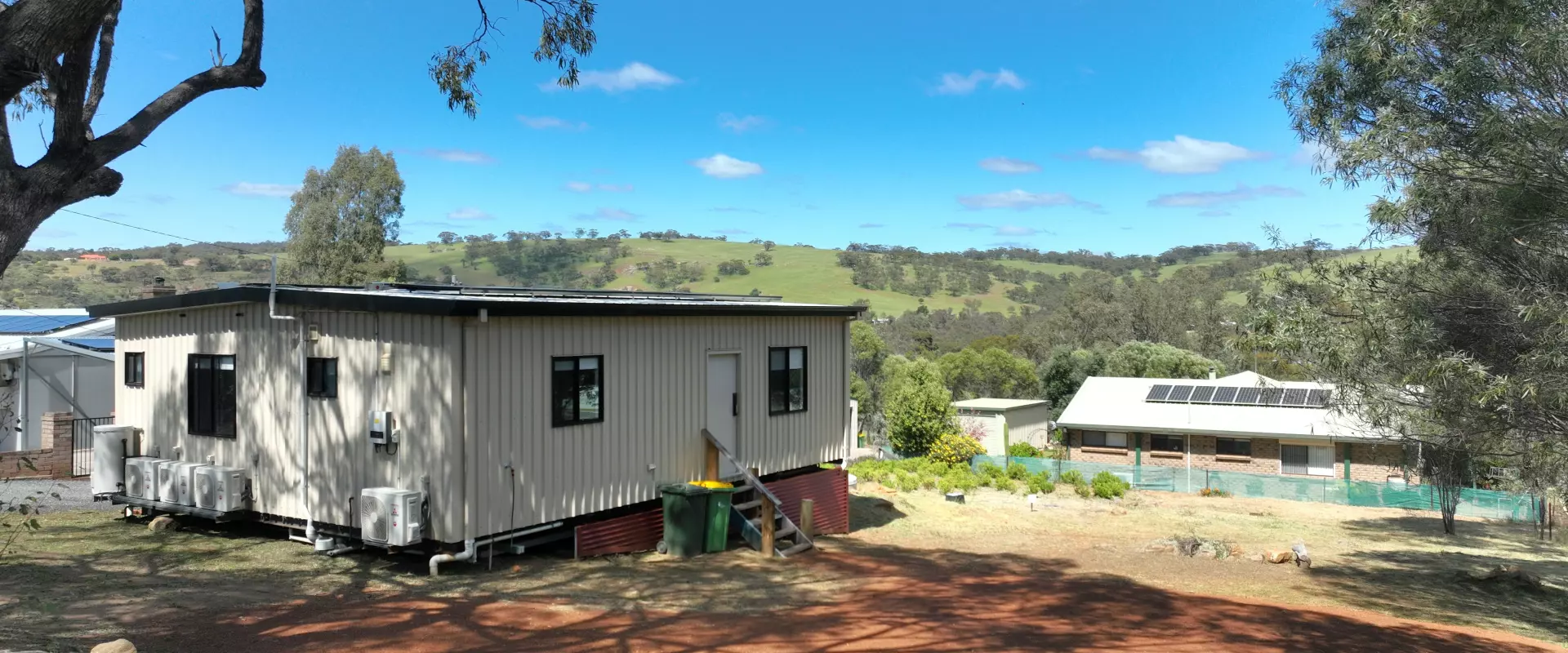 Built in 2021, the home has a strong steel frame and is fully insulated. Inside, you’ll find four split-system air conditioners and ceiling fans in all bedrooms to keep the home comfortable year-round. The kitchen is fitted with modern appliances and opens onto a functional living and dining area.