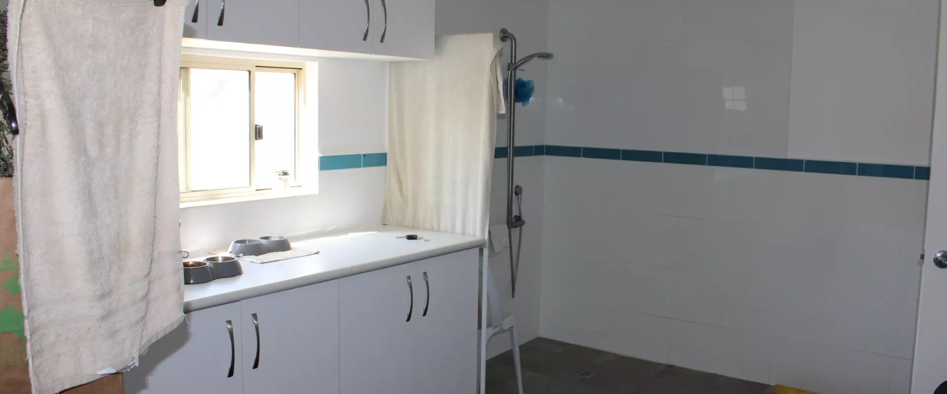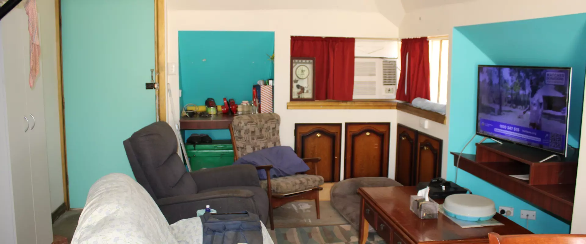 When entering the house, you walk through the lounge, and you can exit through another door opposite which leads to a fully enclosed outdoor area surrounded with colourbond fencing.  There is a shaded structure and a blank canvas perfect for you to add your own touch to.