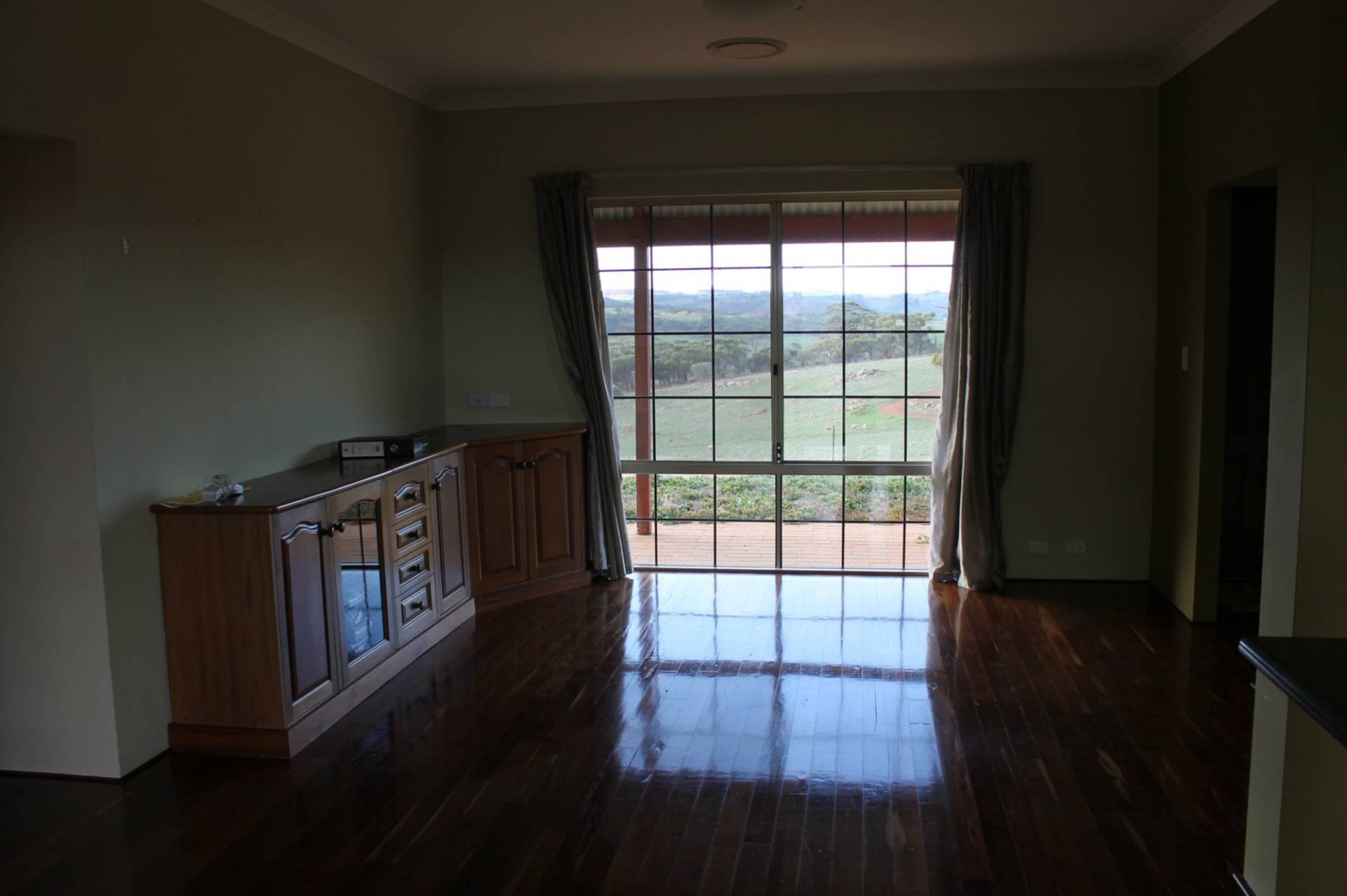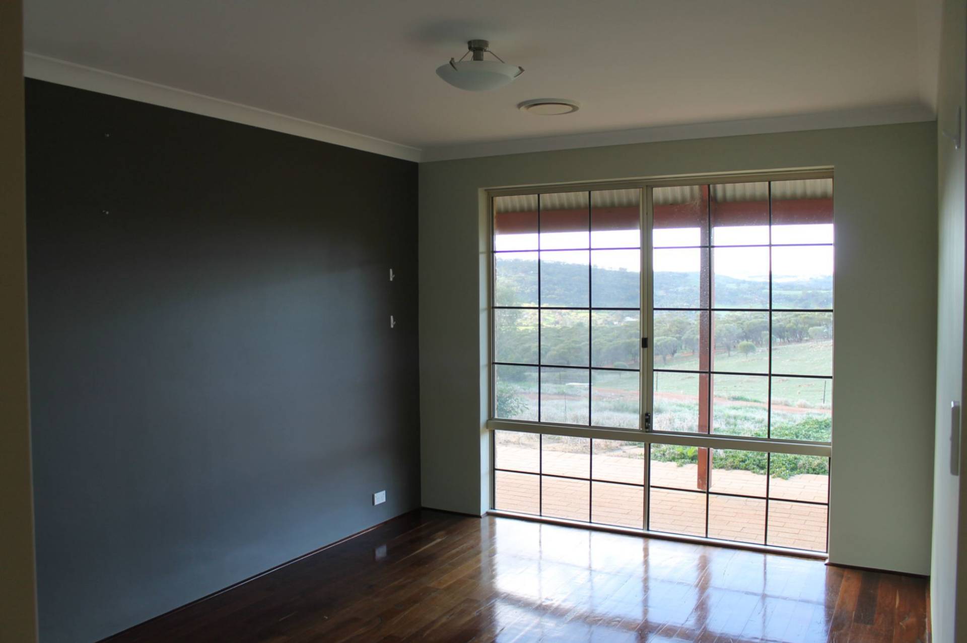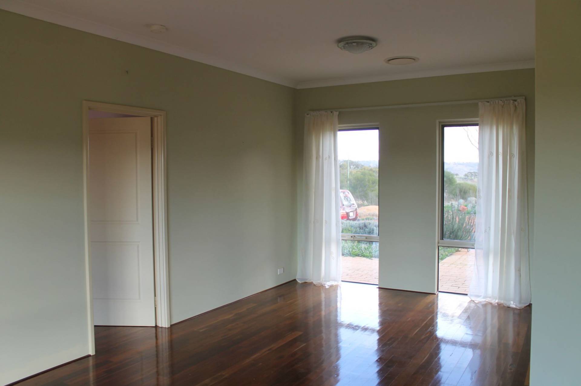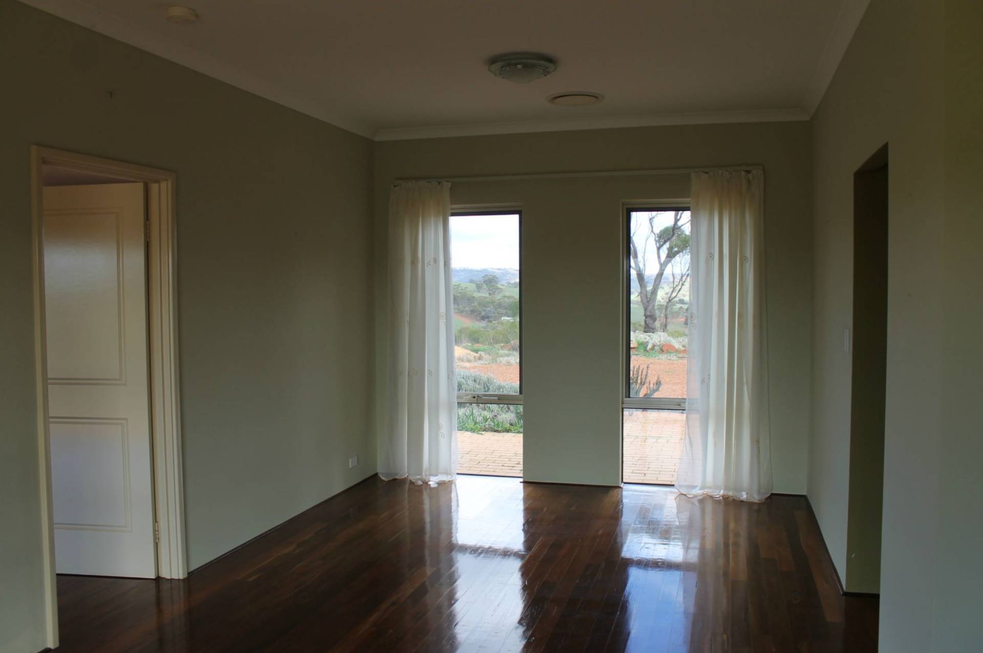 The dining room leads out to the small rear patio where you can sit and look over the hills of Toodyay.