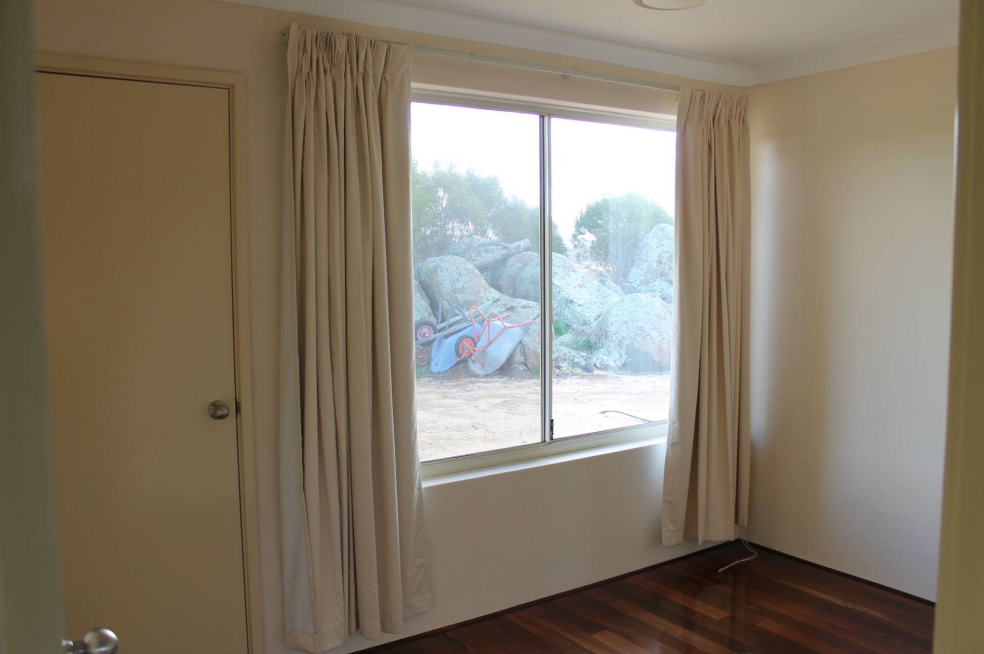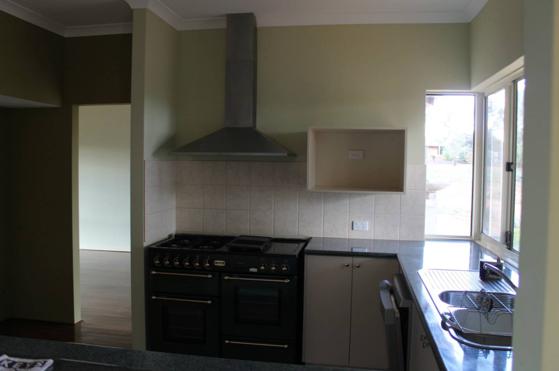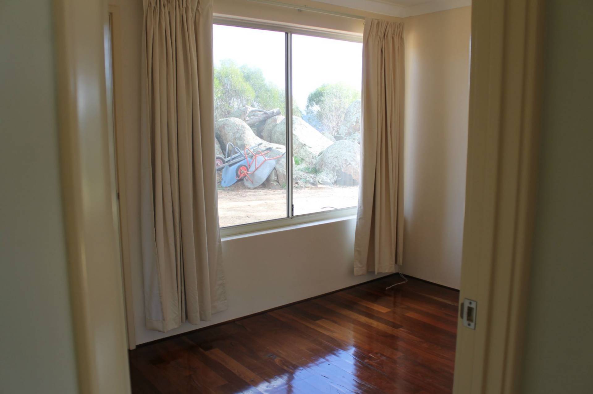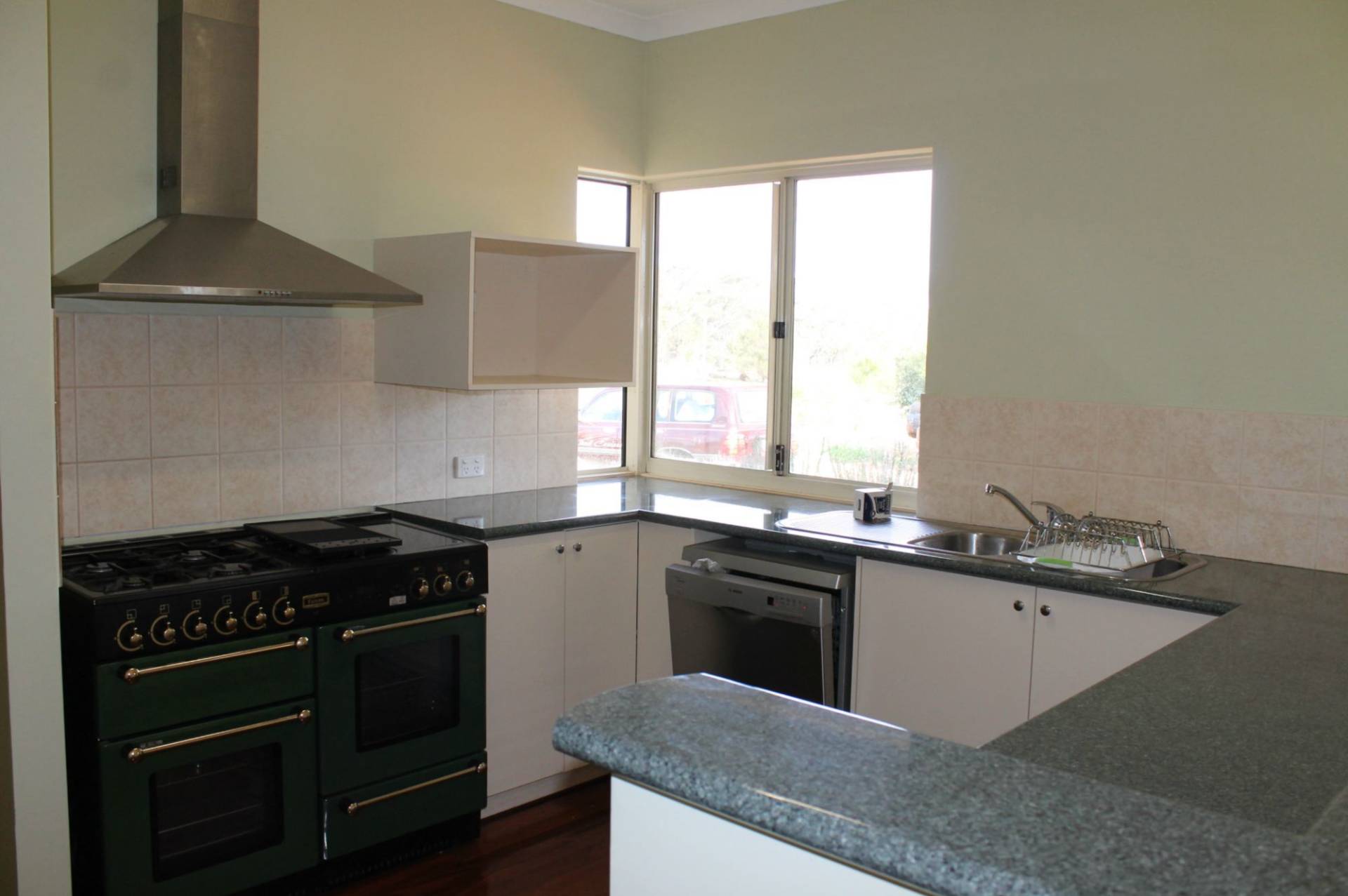 The dining room leads out to the small rear patio where you can sit and look over the hills of Toodyay.