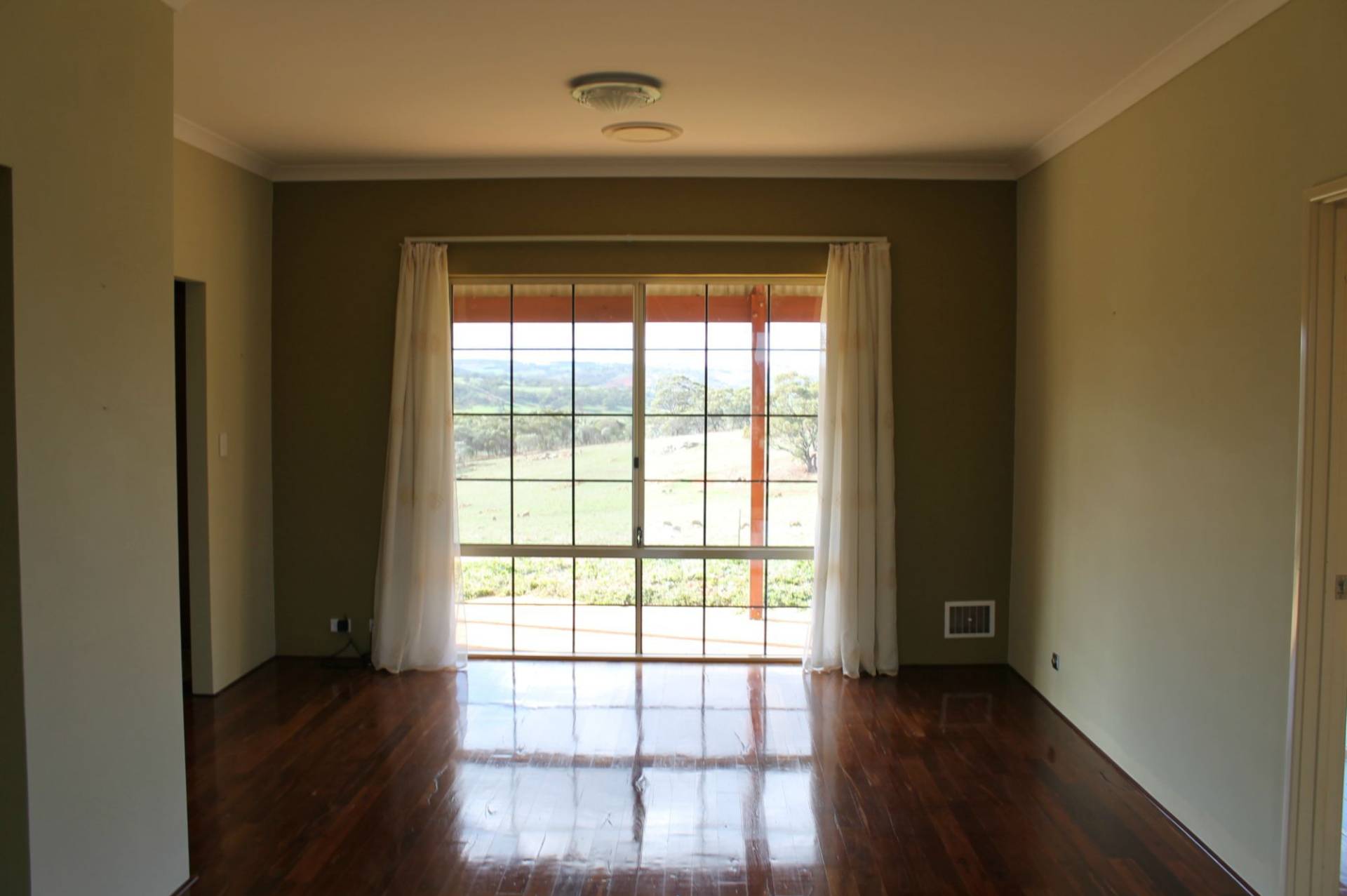 The master bedrooms lead out to the formal lounge room area and through to the large country style kitchen which has views across the hills out the kitchen sink window. The kitchen features heaps of built in cupboards, a new but old look farmhouse style double gas oven and stove, built in dishwasher, built in double fridge space (with tap for water) and built in double pantry cupboard.