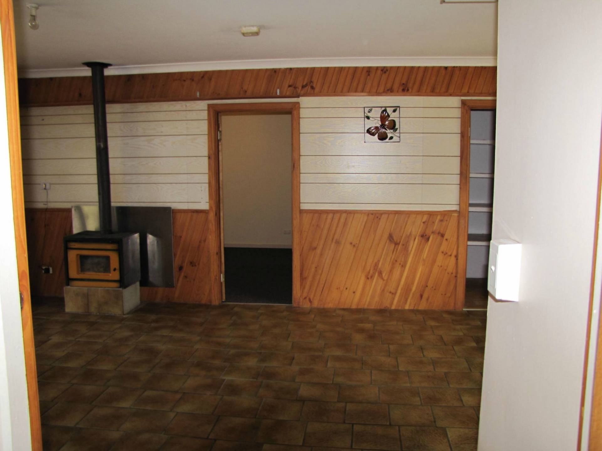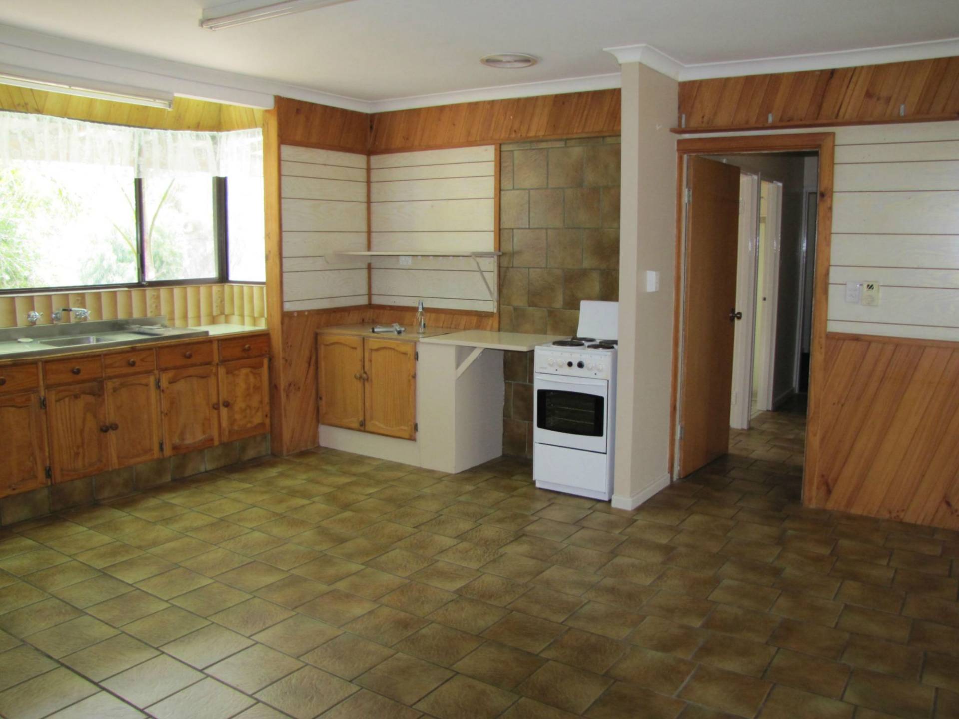 The kitchen at the end of this large room includes pine cupboards, a walk in pantry and an electric oven and stove.