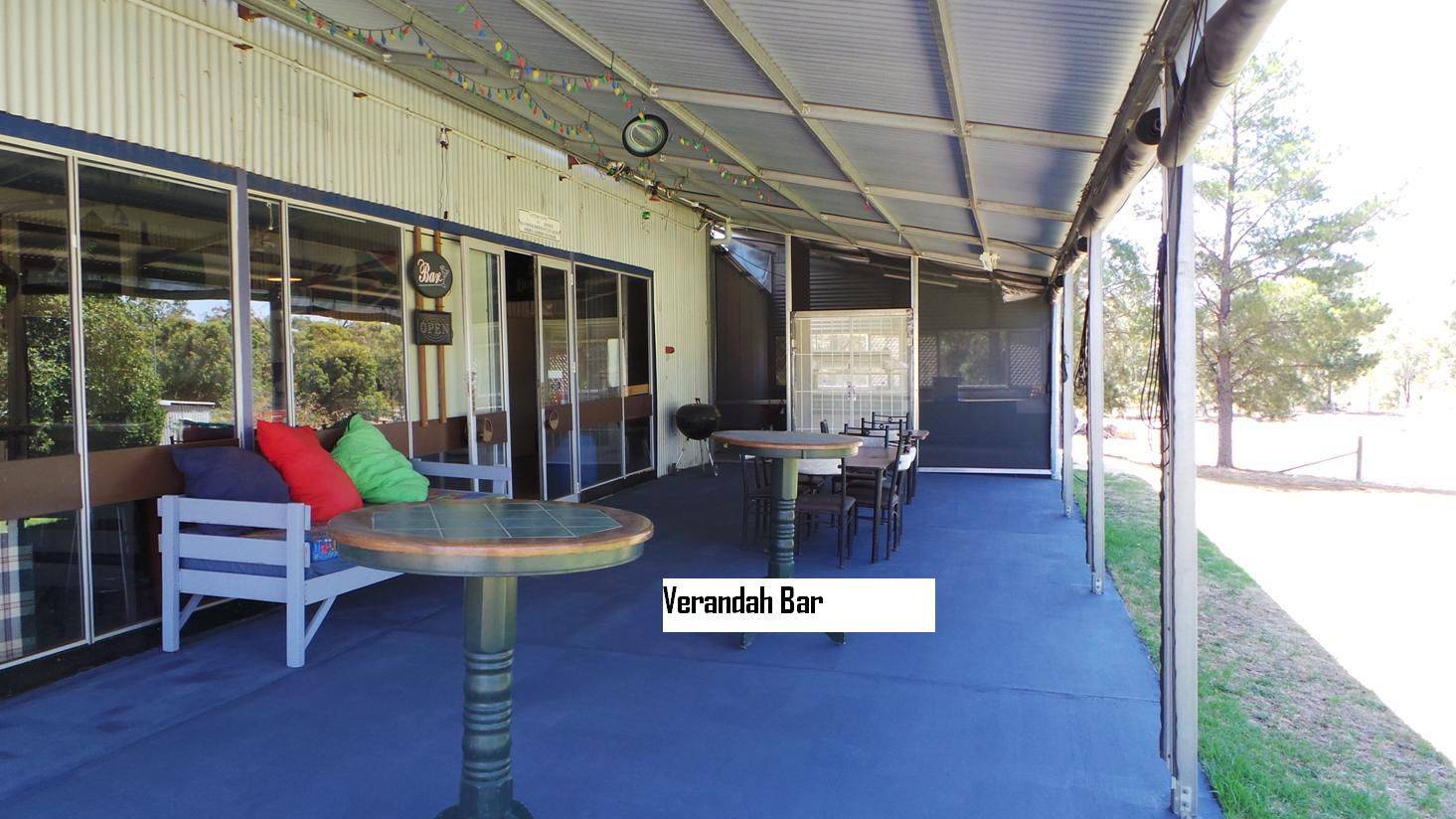 The verandah consists of 4 bays that overlooks the lawn area and trees, is fully enclosed with bistro blinds and provides a seating area to accommodate approximately 30 -40 people.