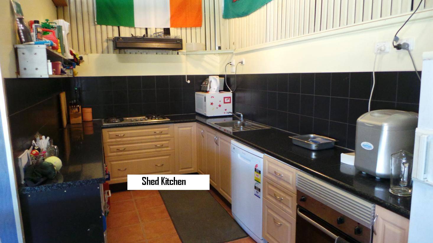 This is fully lined and insulated (ceilings and wall), a massive log fire in the corner, a separate kitchen area with a dishwasher, under bench oven and gas hotplate.