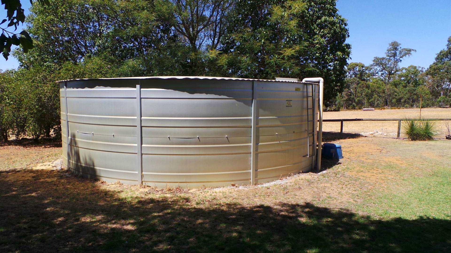 5000 GALLON TANK bore pumps to tank at rear of hay shed; gravity fed to garden & toilet and shed toilets