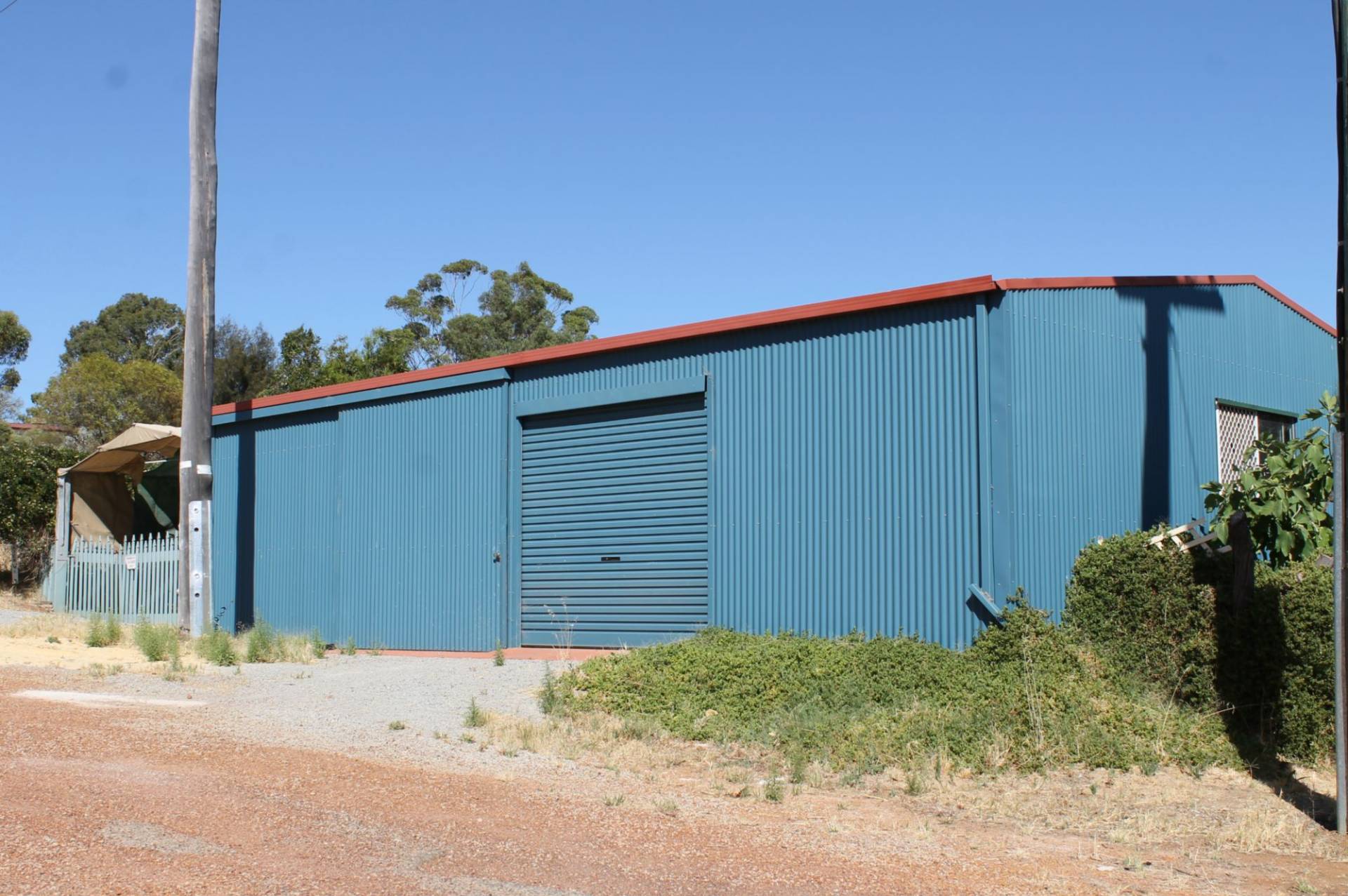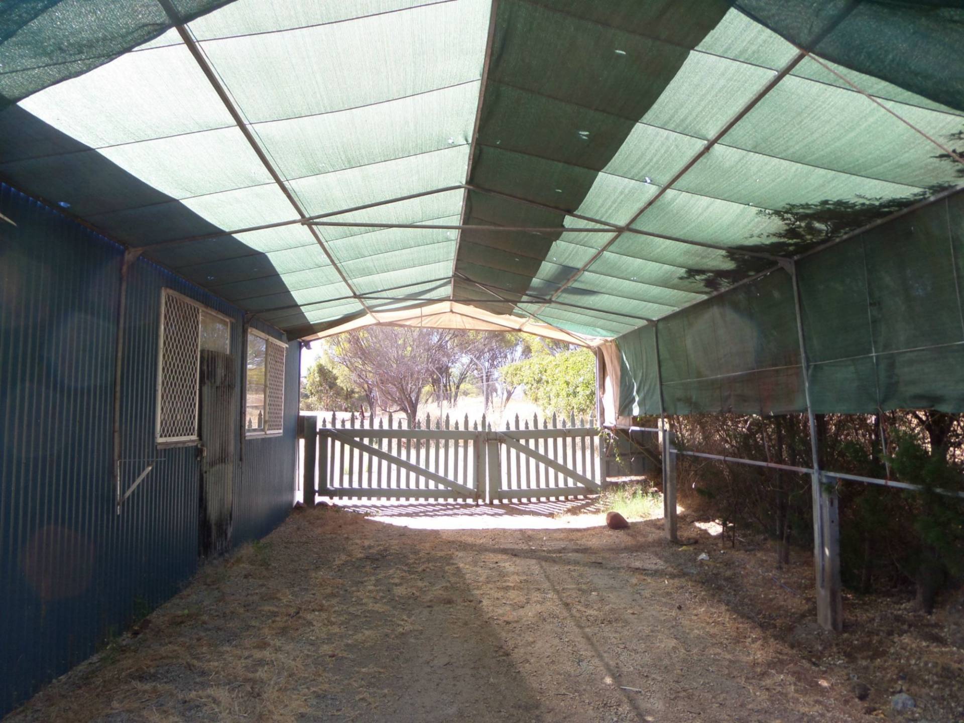 There is a huge shed / garage at the side of the house with concrete floor (no power connected) and a double shadecloth carport at the rear.
