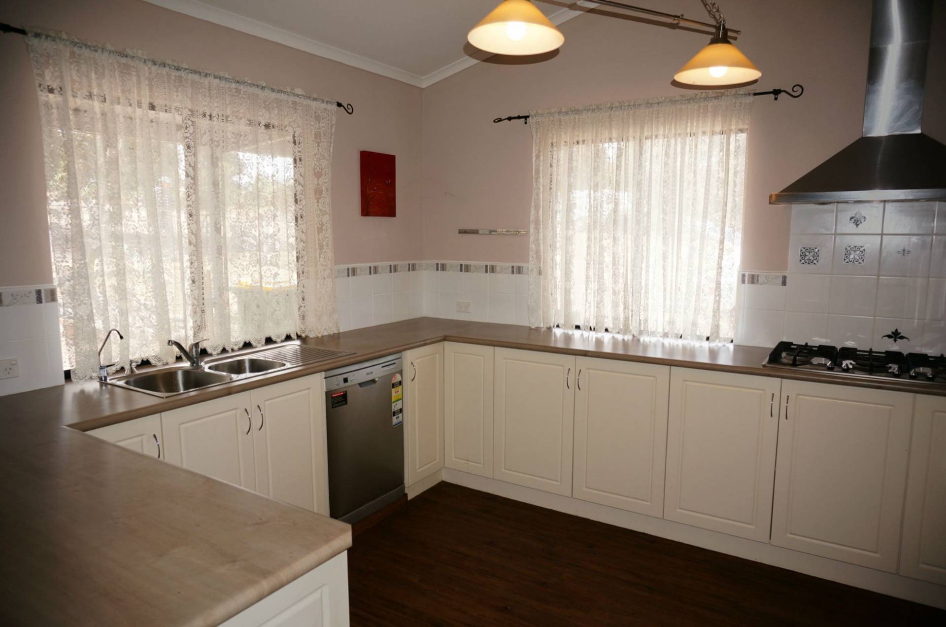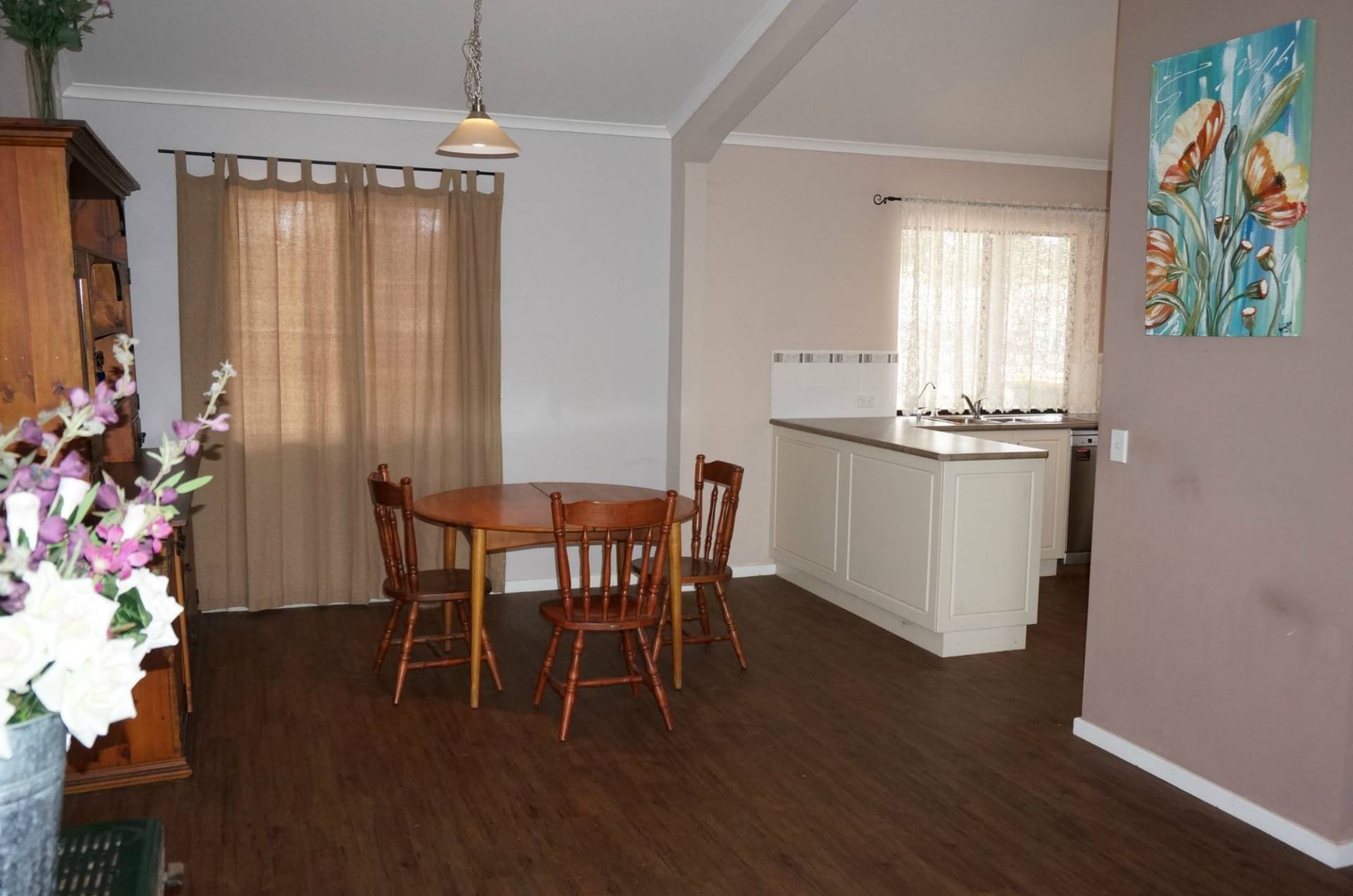 Spacious lounge with high peaked ceiling, and durable vinyl wood floors. Slow combustion stove for heating and ducted (evaporative) aircon throughout the home. Walls and celling are fully insulated for maximum comfort and energy efficiency.