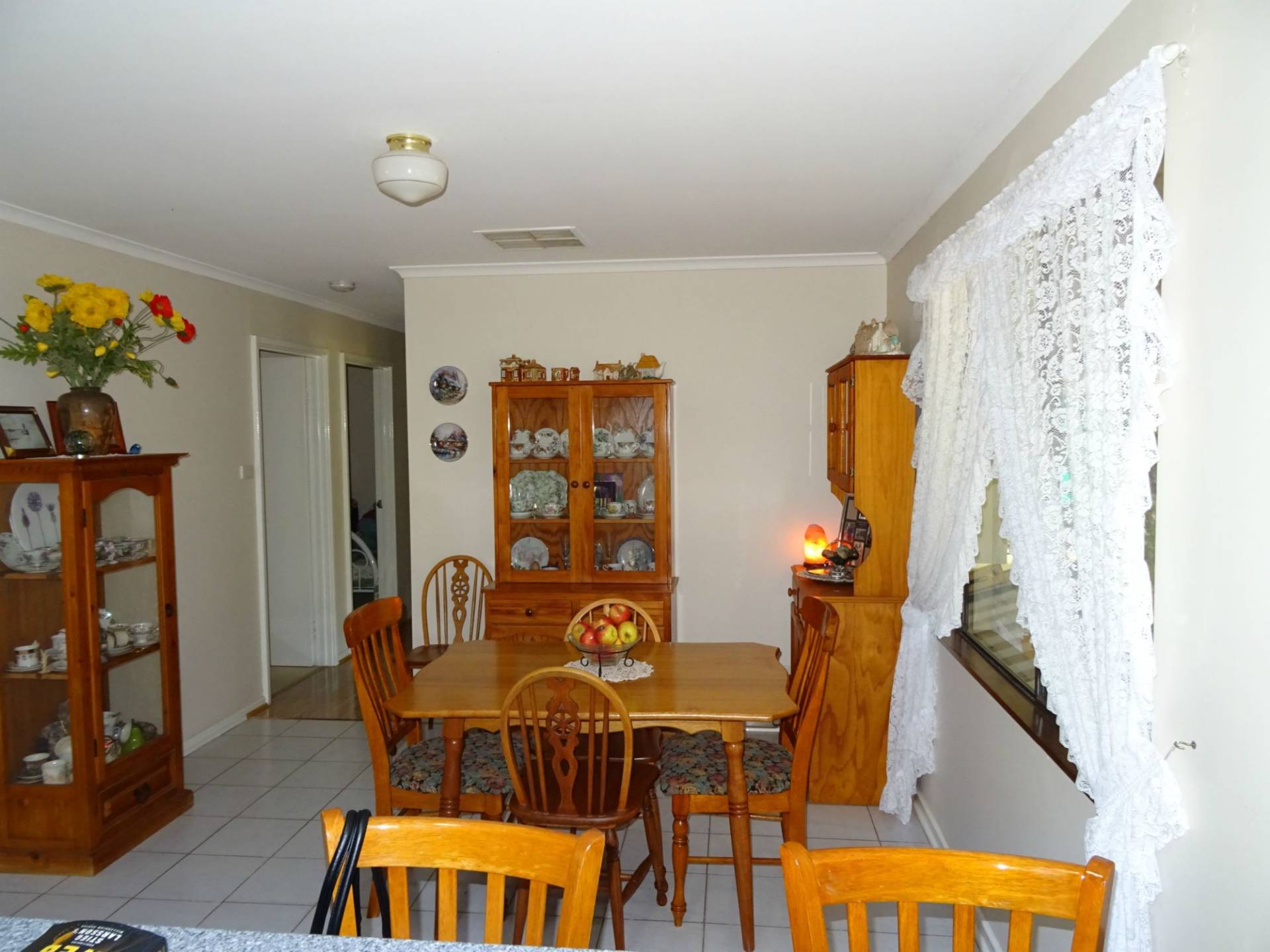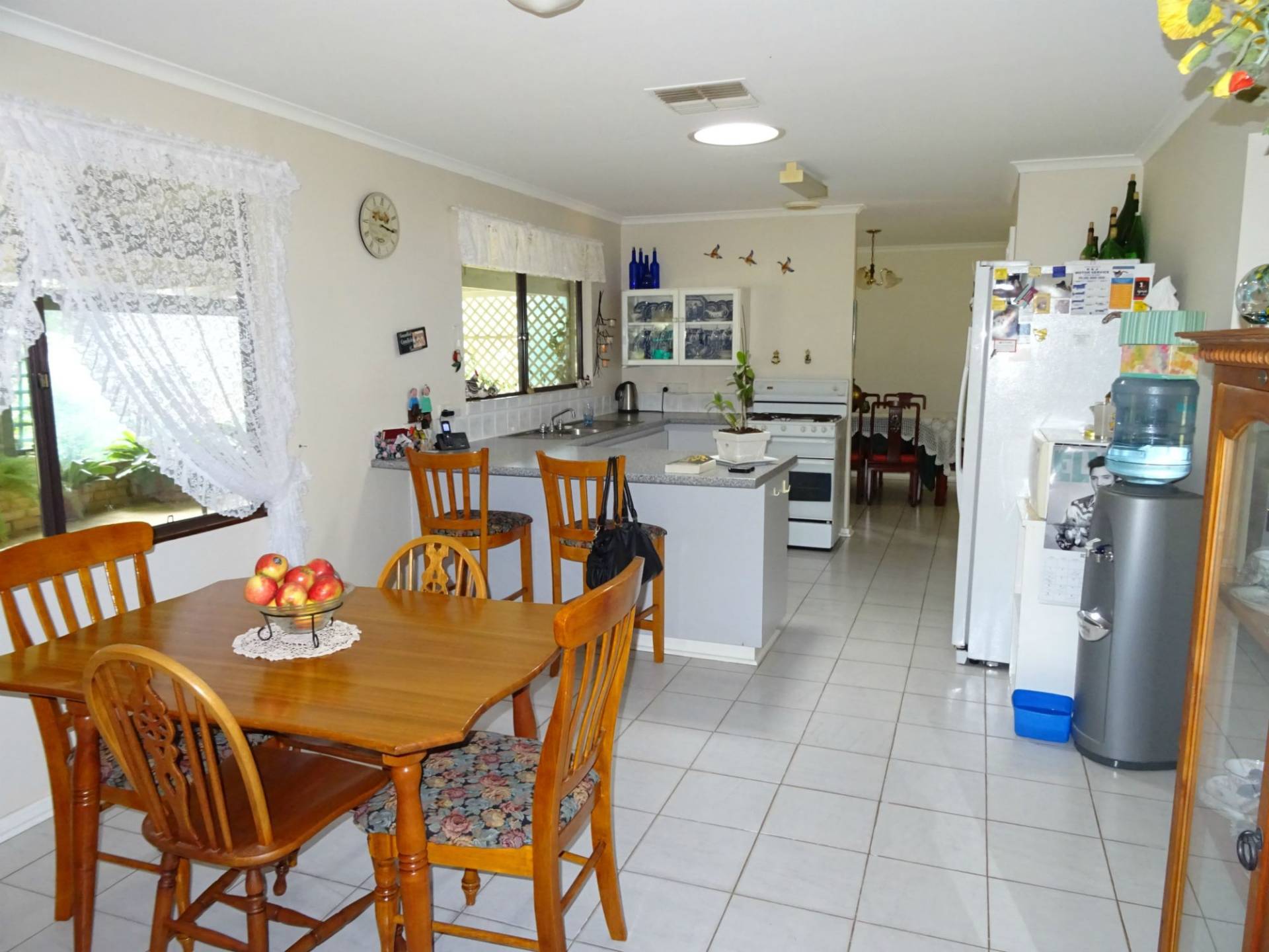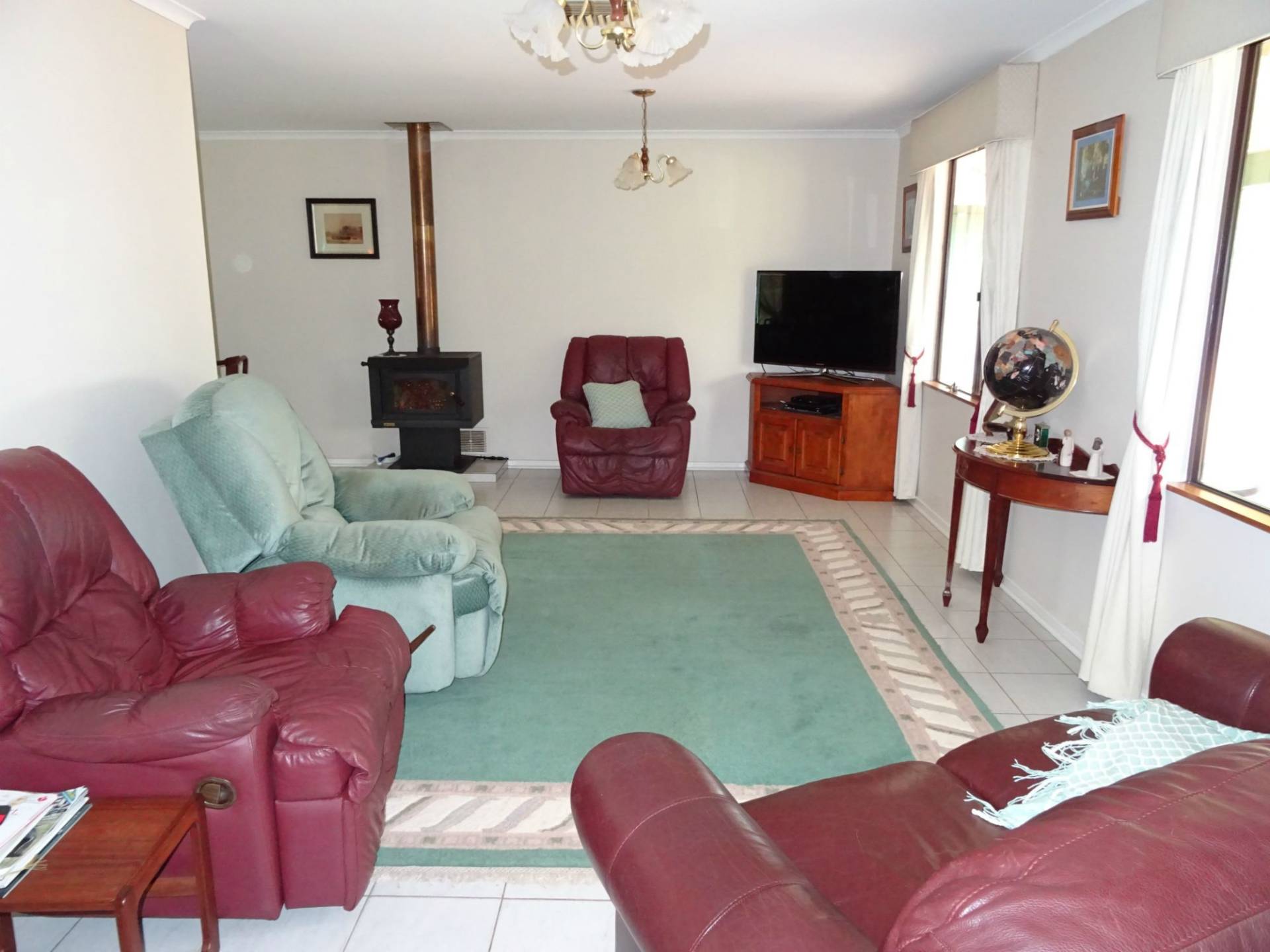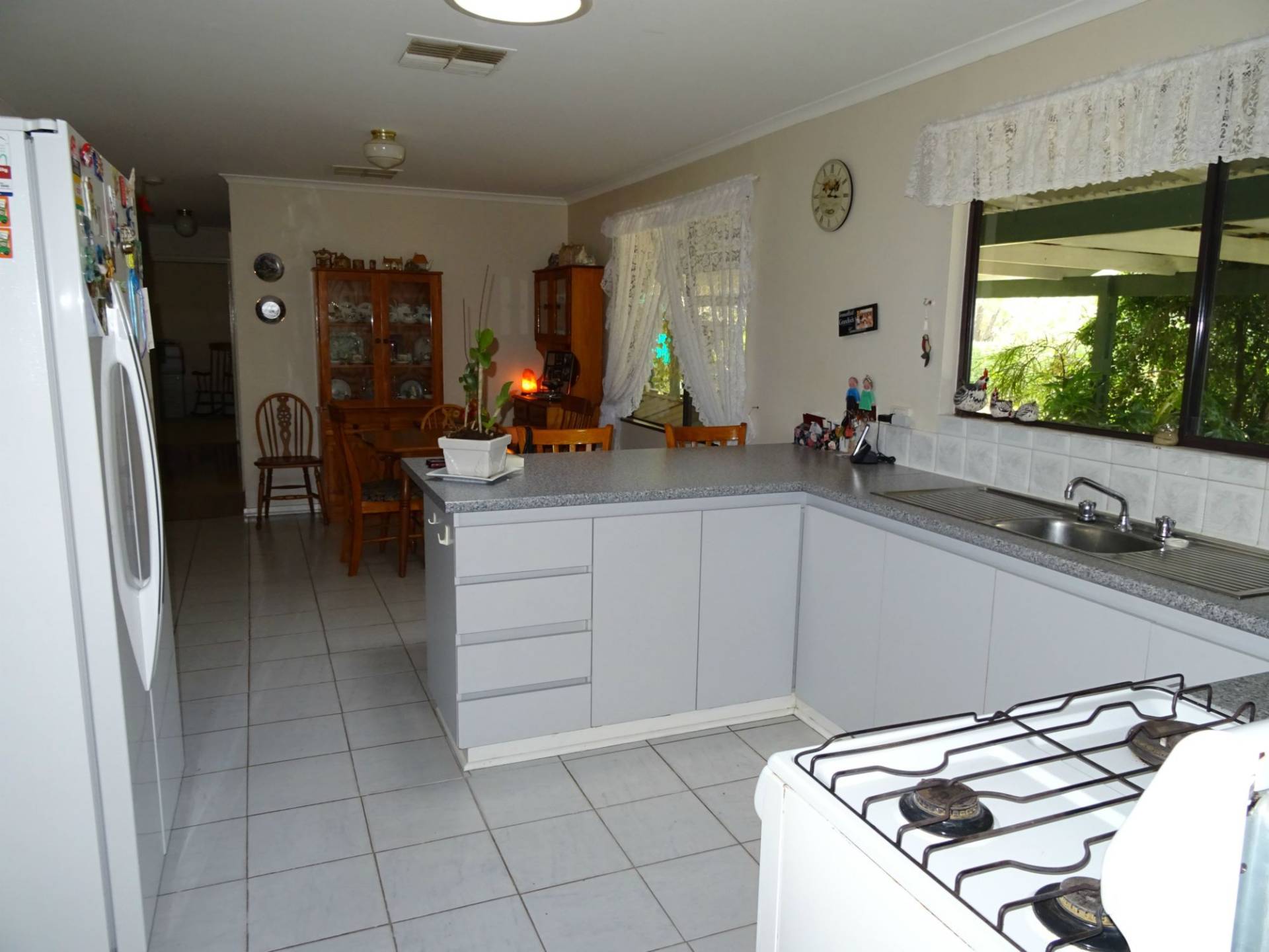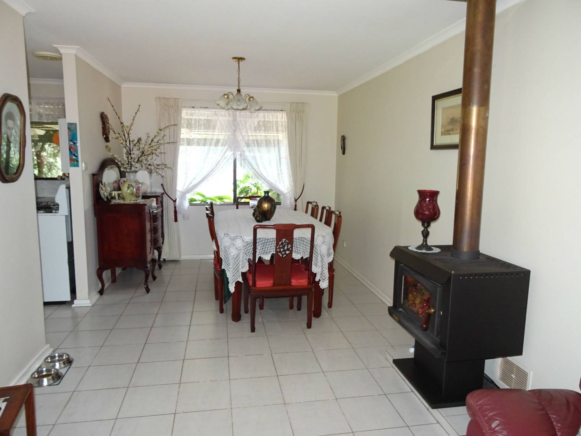 Drive through the shady treed driveway and you will arrive at the spotless home. Surrounded by lawns and gardens the home has a large lounge room with log fire, separate dining room leading into the kitchen and eating area. The passage leads on to the 3 bedrooms and 2 bathrooms for the family.