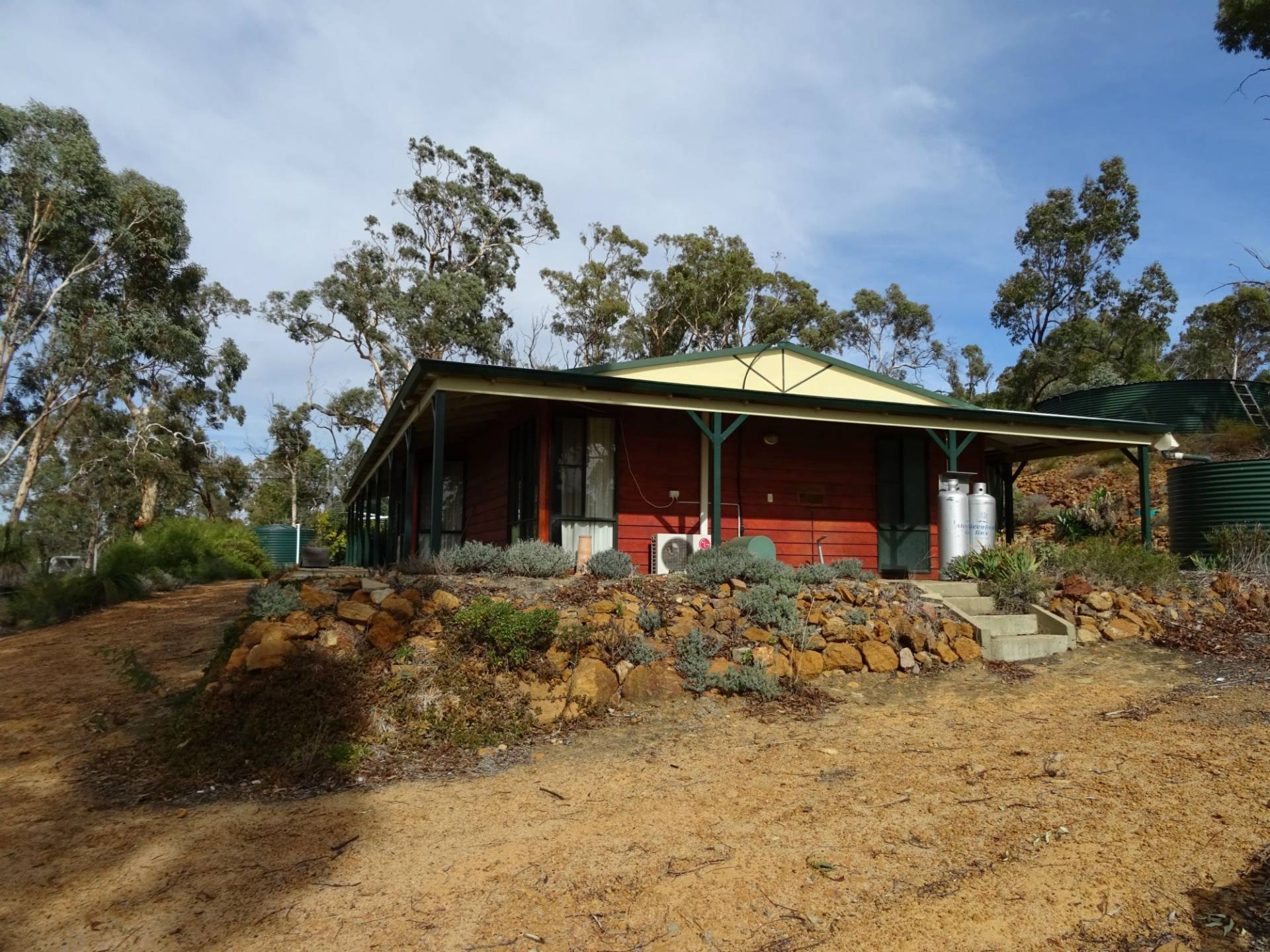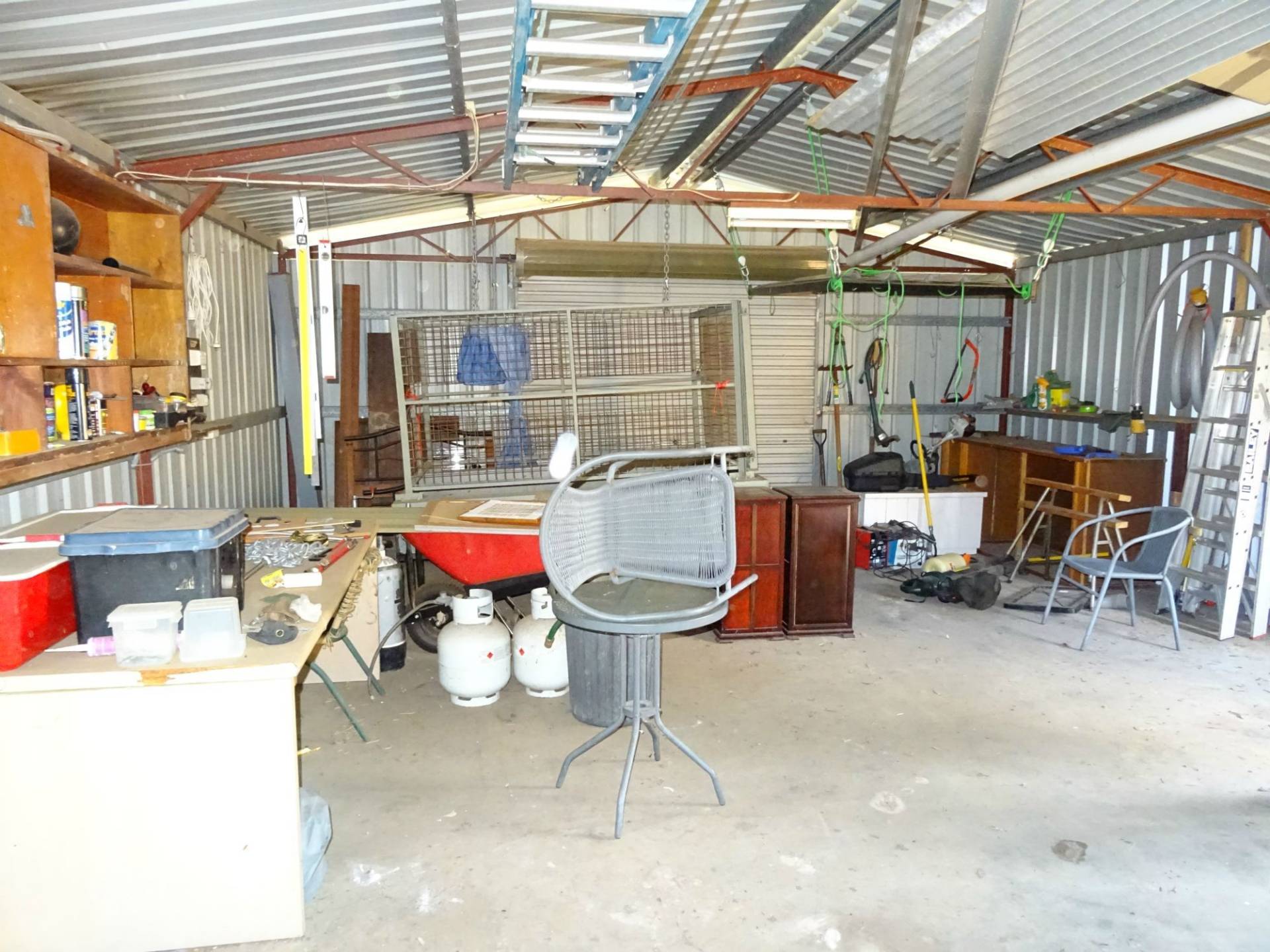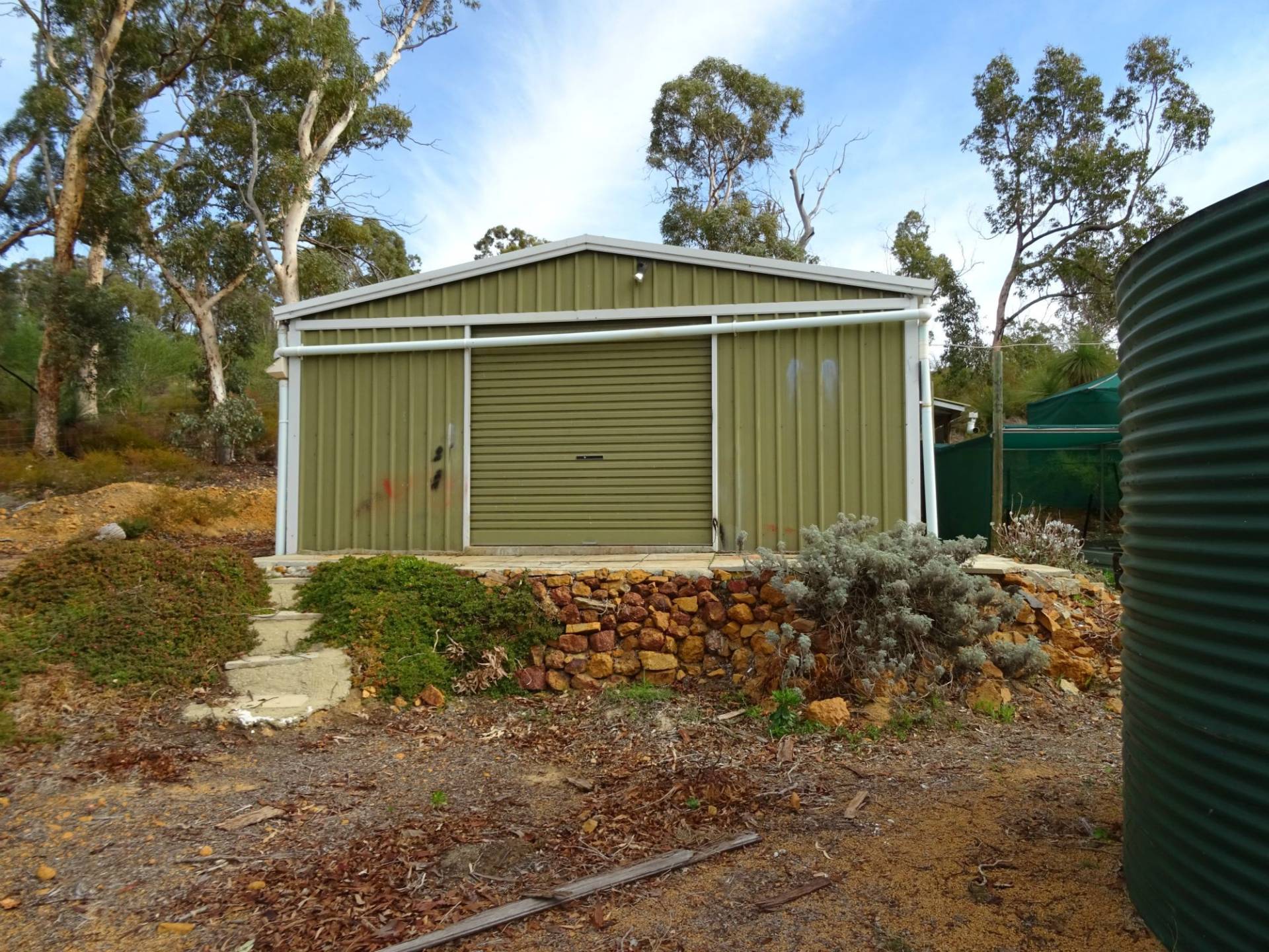 It has copious rain water storage suitable for a large family. Other improvements include a large 6m x 12m concrete floor shed set up as a workshop.