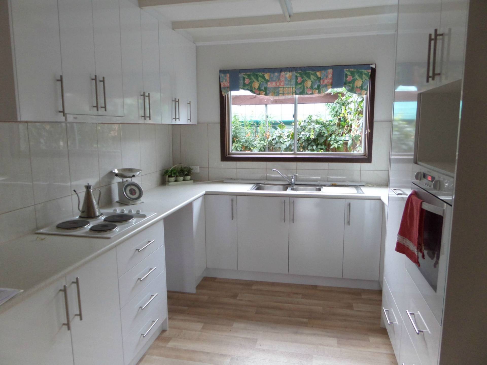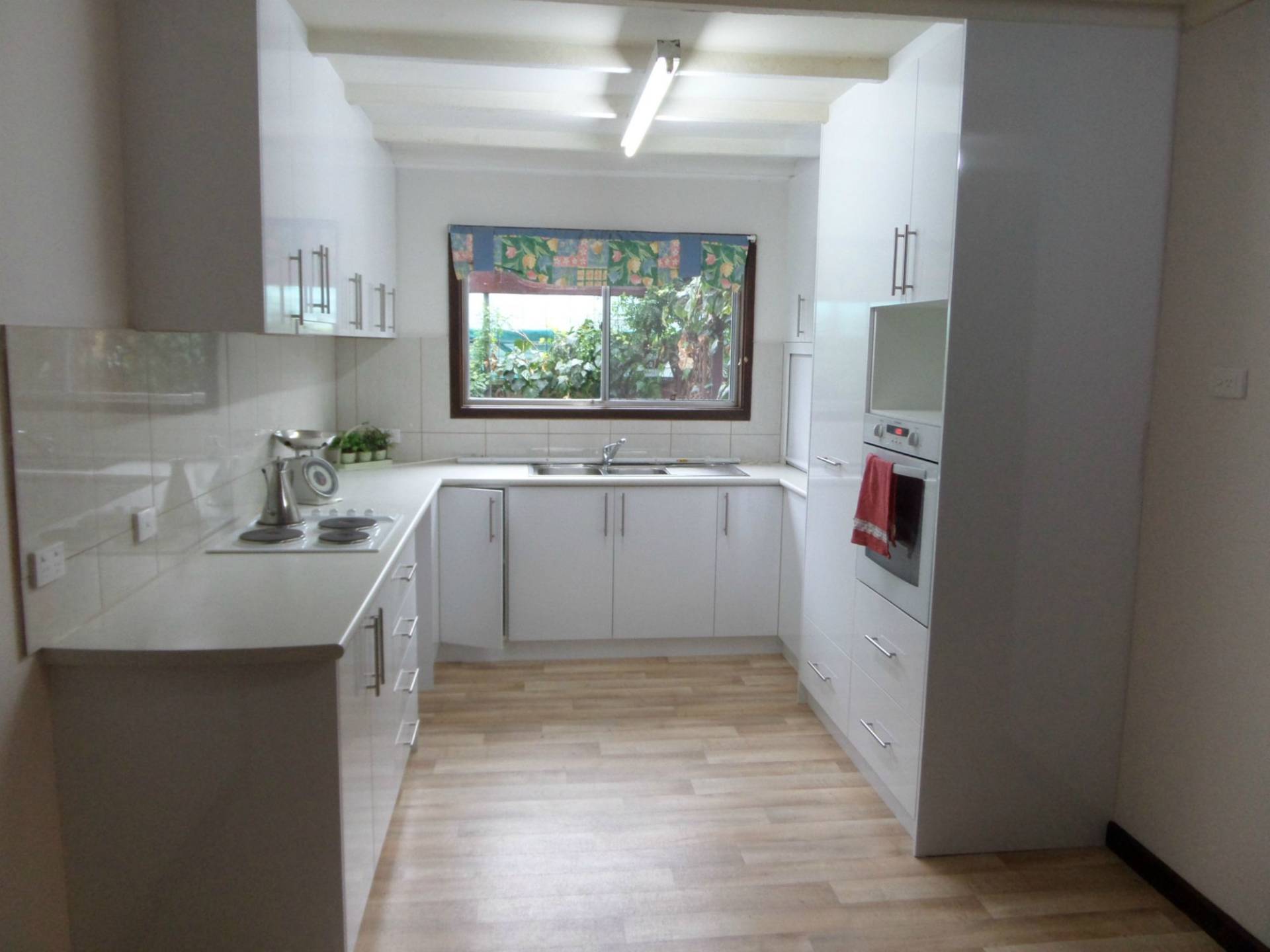Down the hallway you will find the newly renovated modern kitchen which features a built in electric oven and stove top, lovely modern cupboards and a tall pantry cupboard as well.