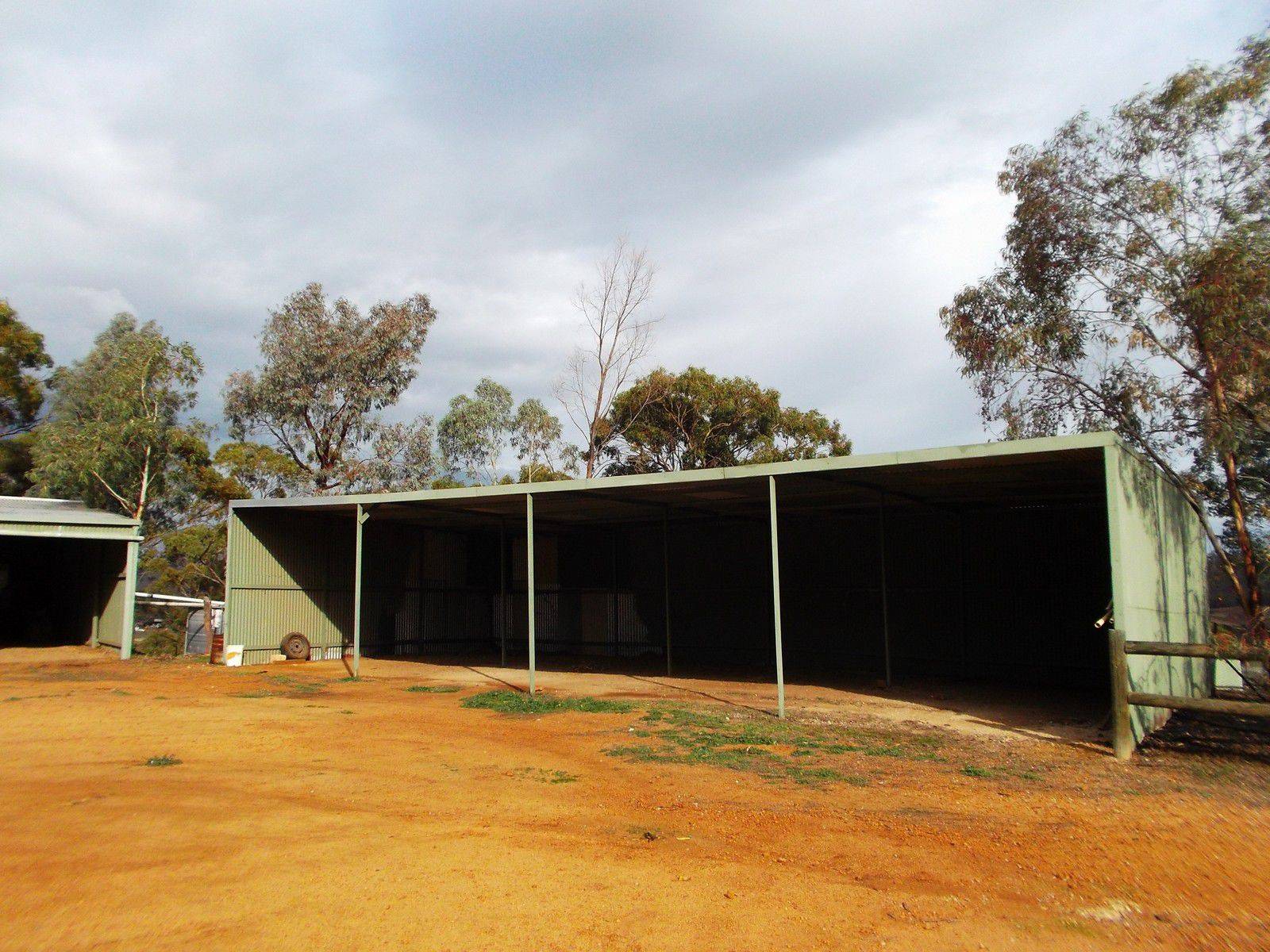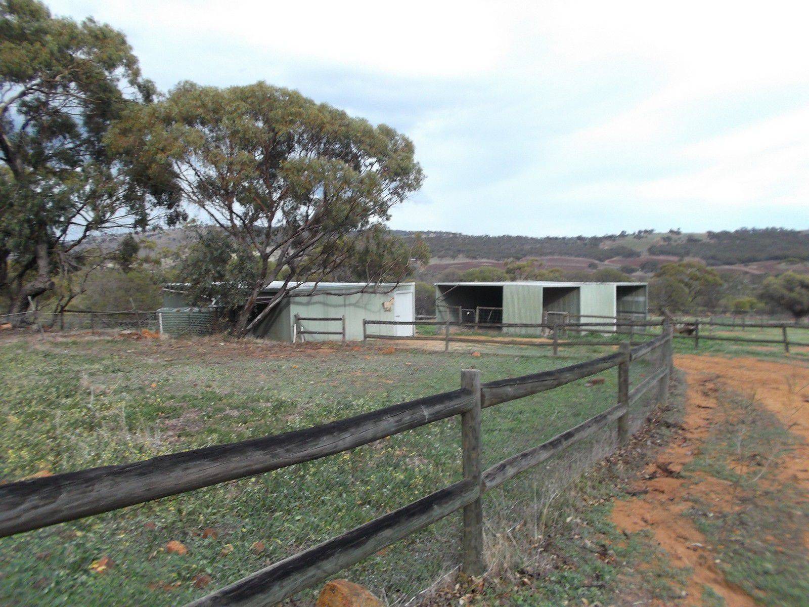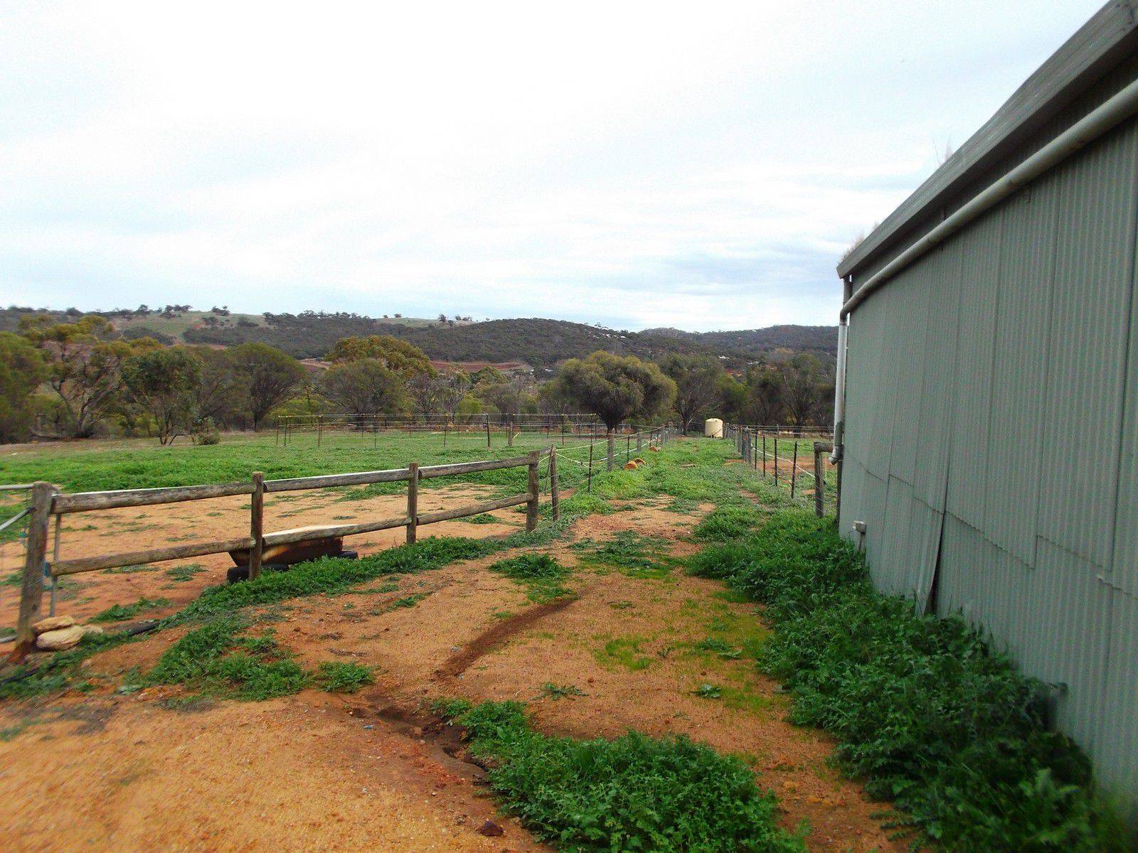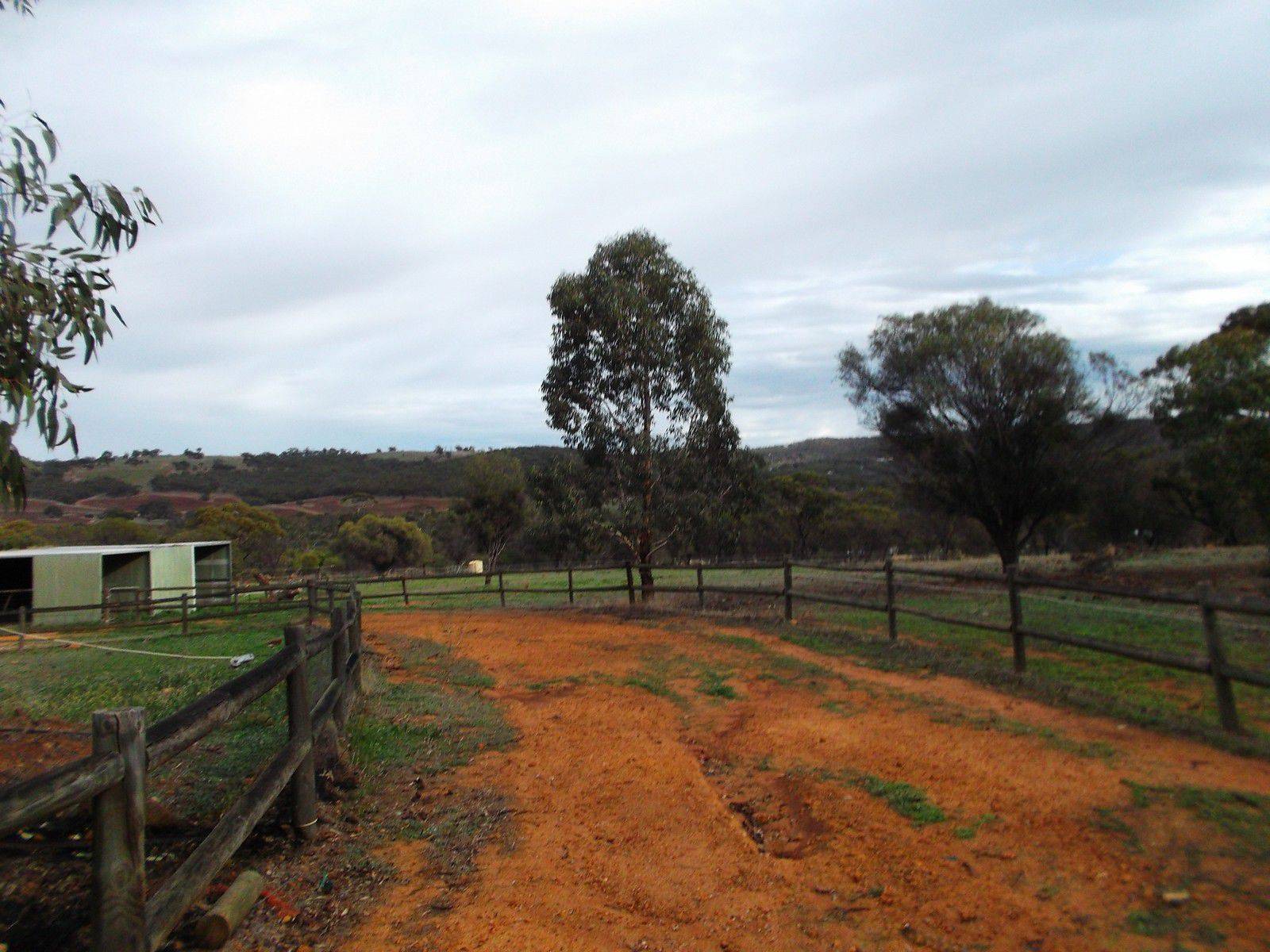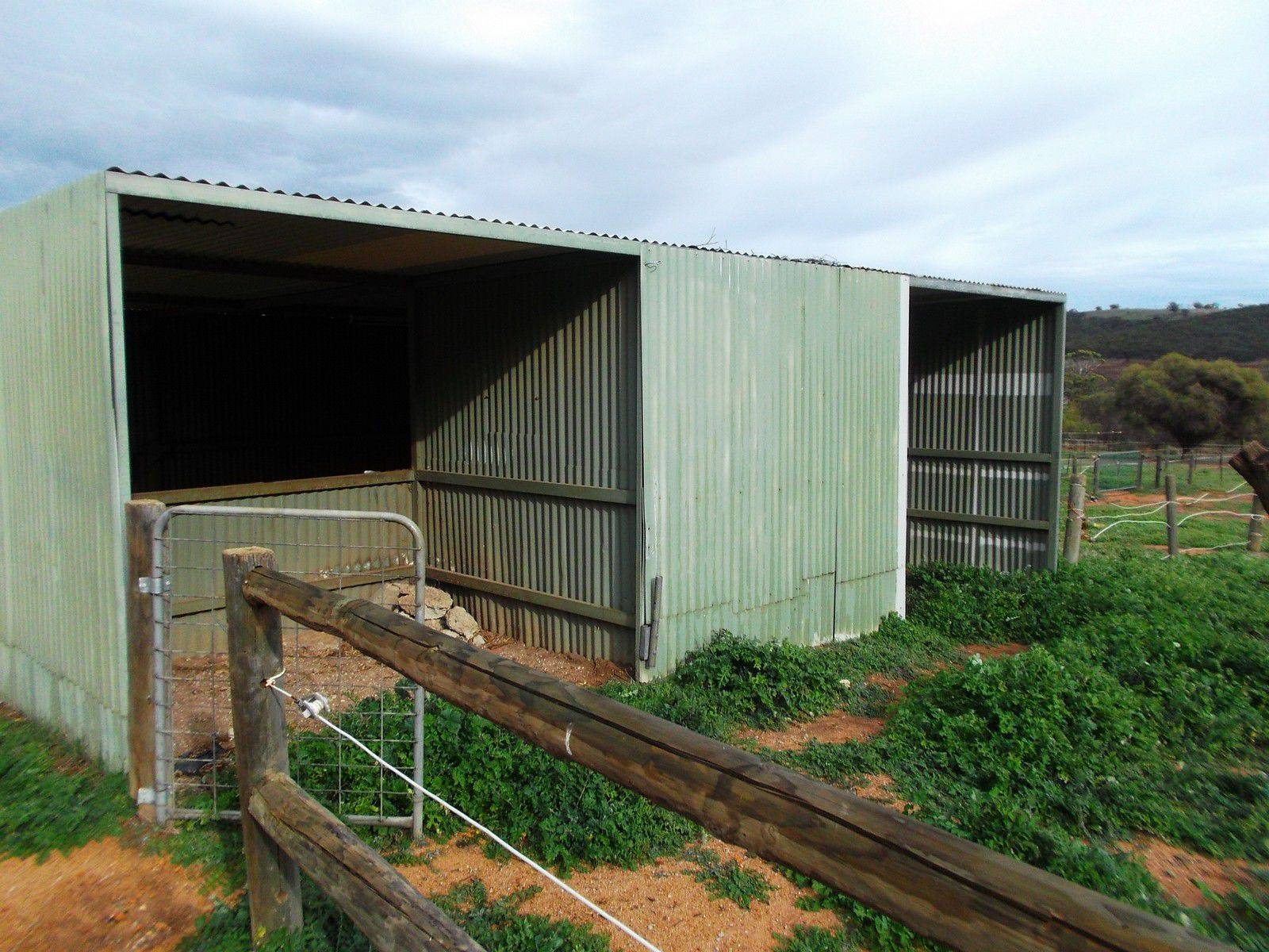 2 x walk in walk out stable blocks located in between the paddocks with 4 stables; 3 x good sized paddocks with trees and copper log fenced laneways between them; 20,000 gallon rain water tank and a smaller tank feed the house.