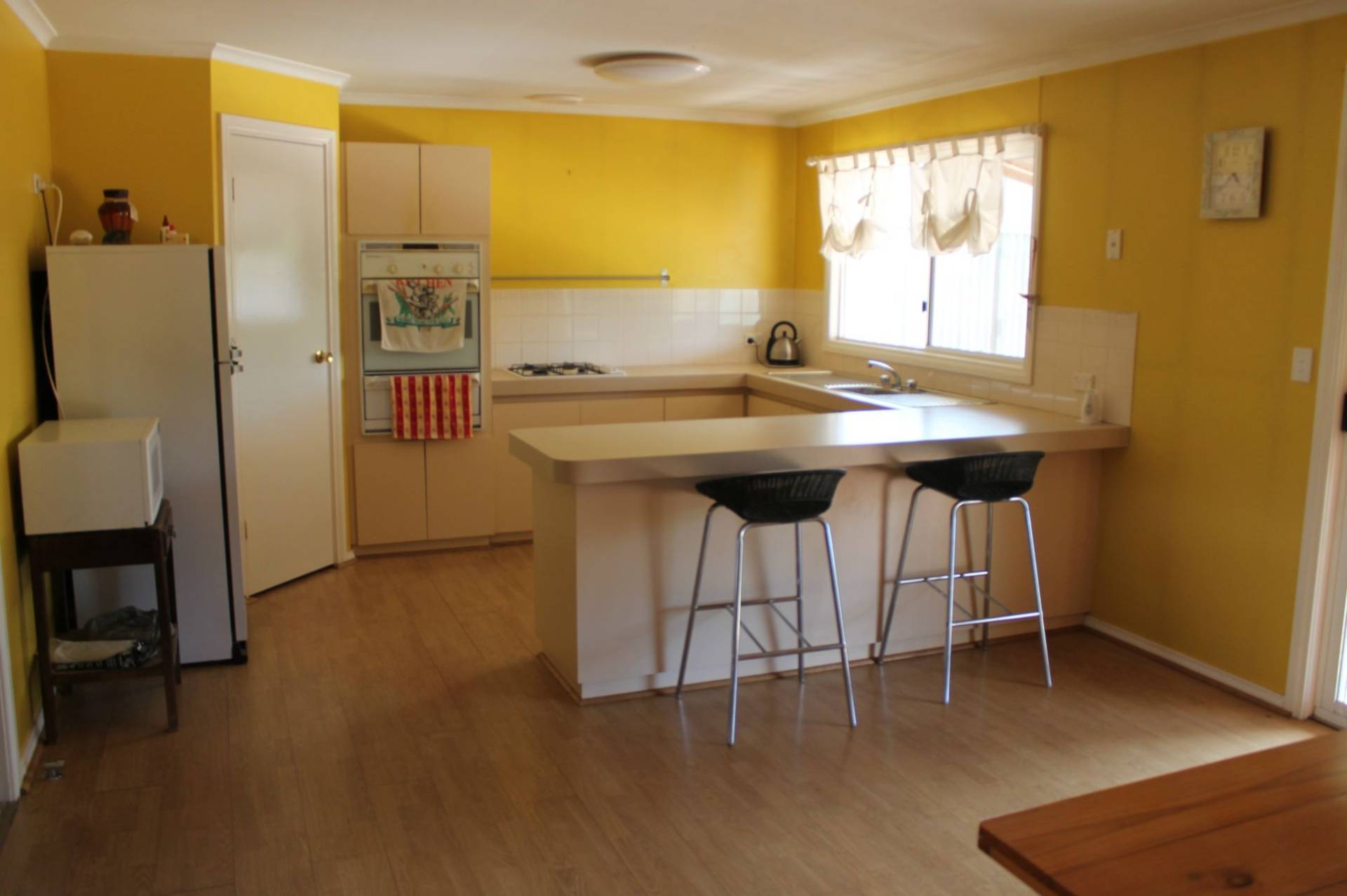 The hardiplank and iron home is brightly painted inside and features an open plan kitchen / dining and lounge room with a slow combustion fireplace. The kitchen has a built in pantry, breakfast bar and dishwasher included.