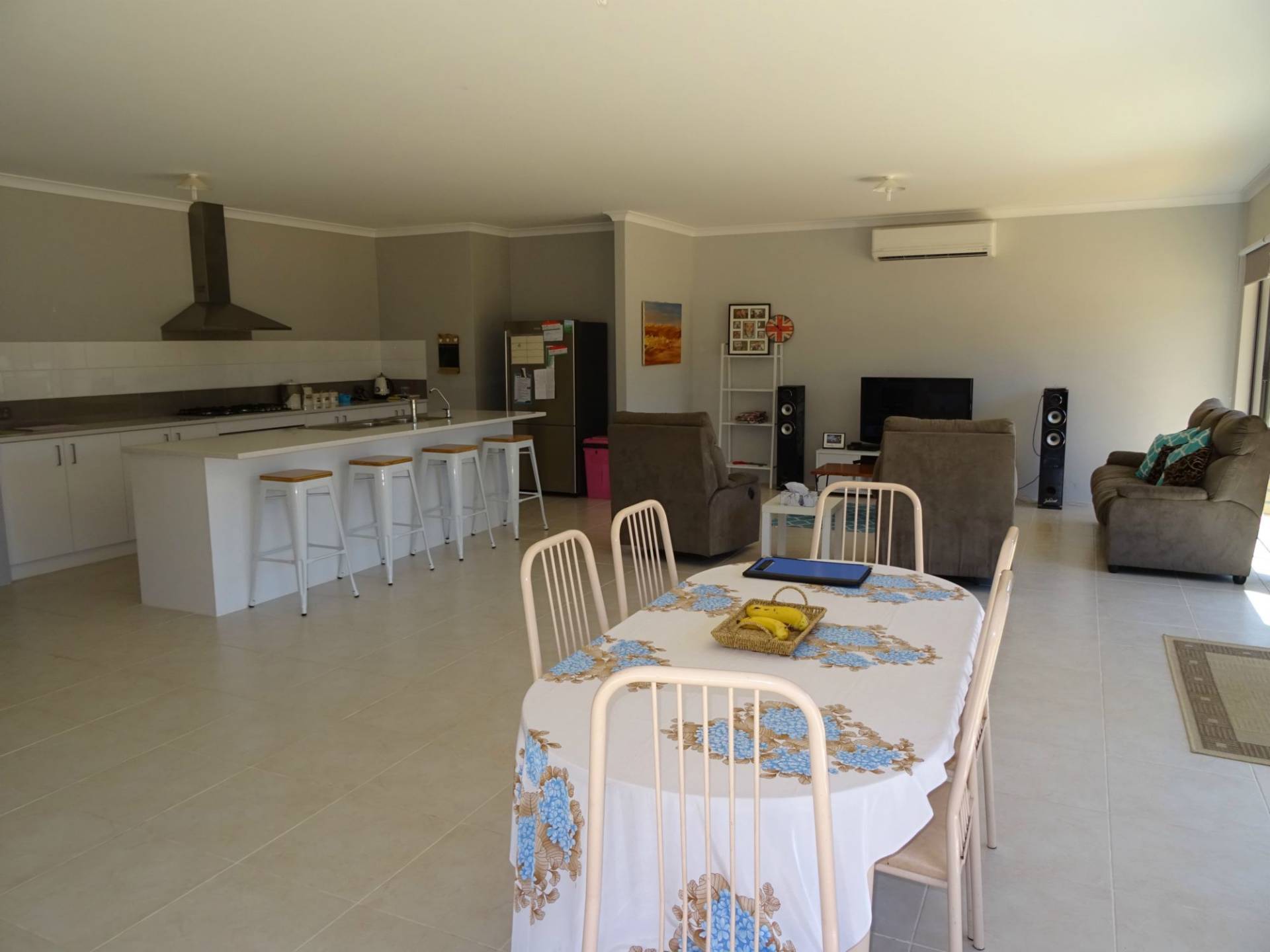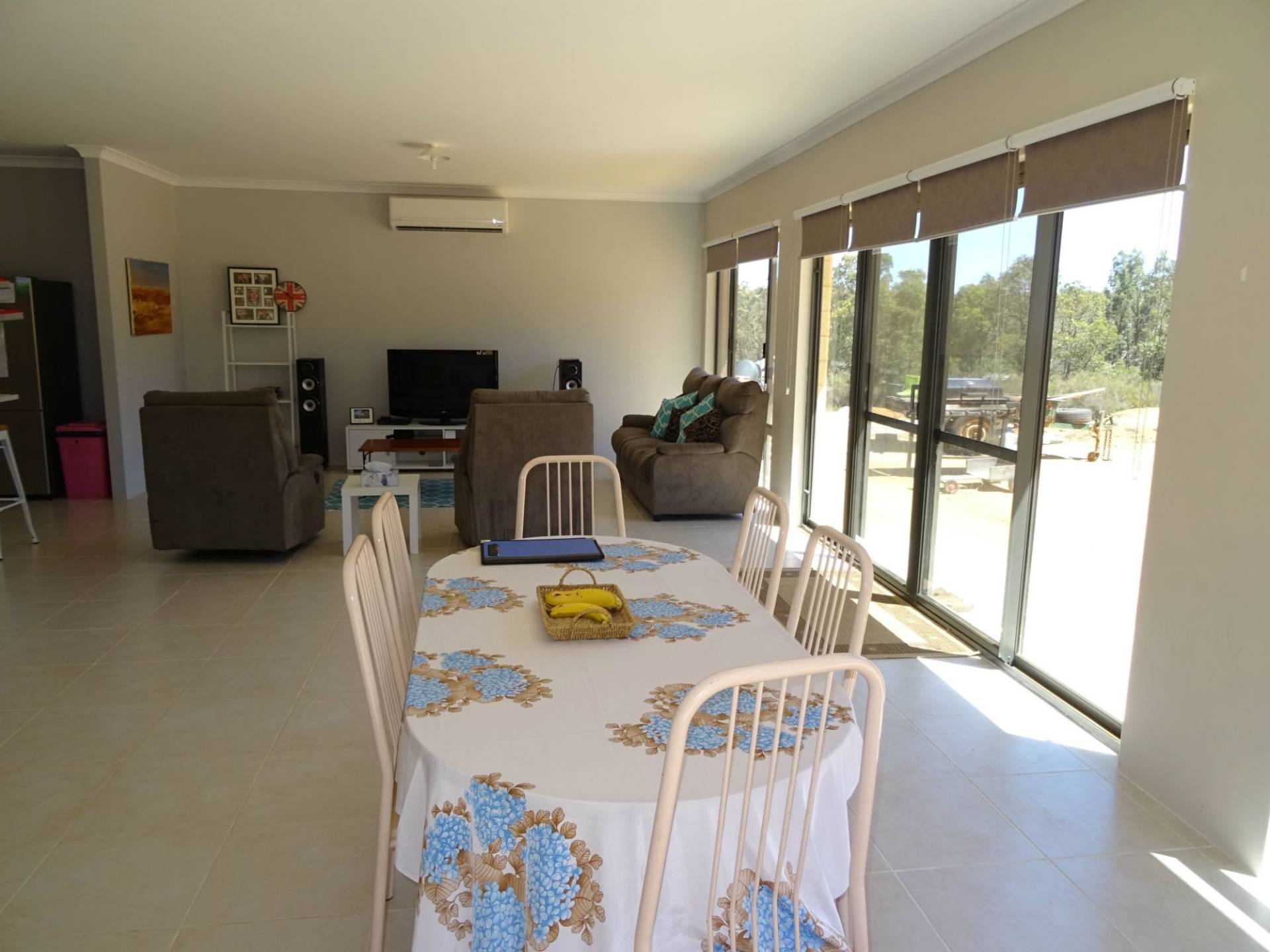 Beautiful tiled floors throughout make easy cleaning. The main living, dining and kitchen area has a rear wall of glass looking out onto the property.