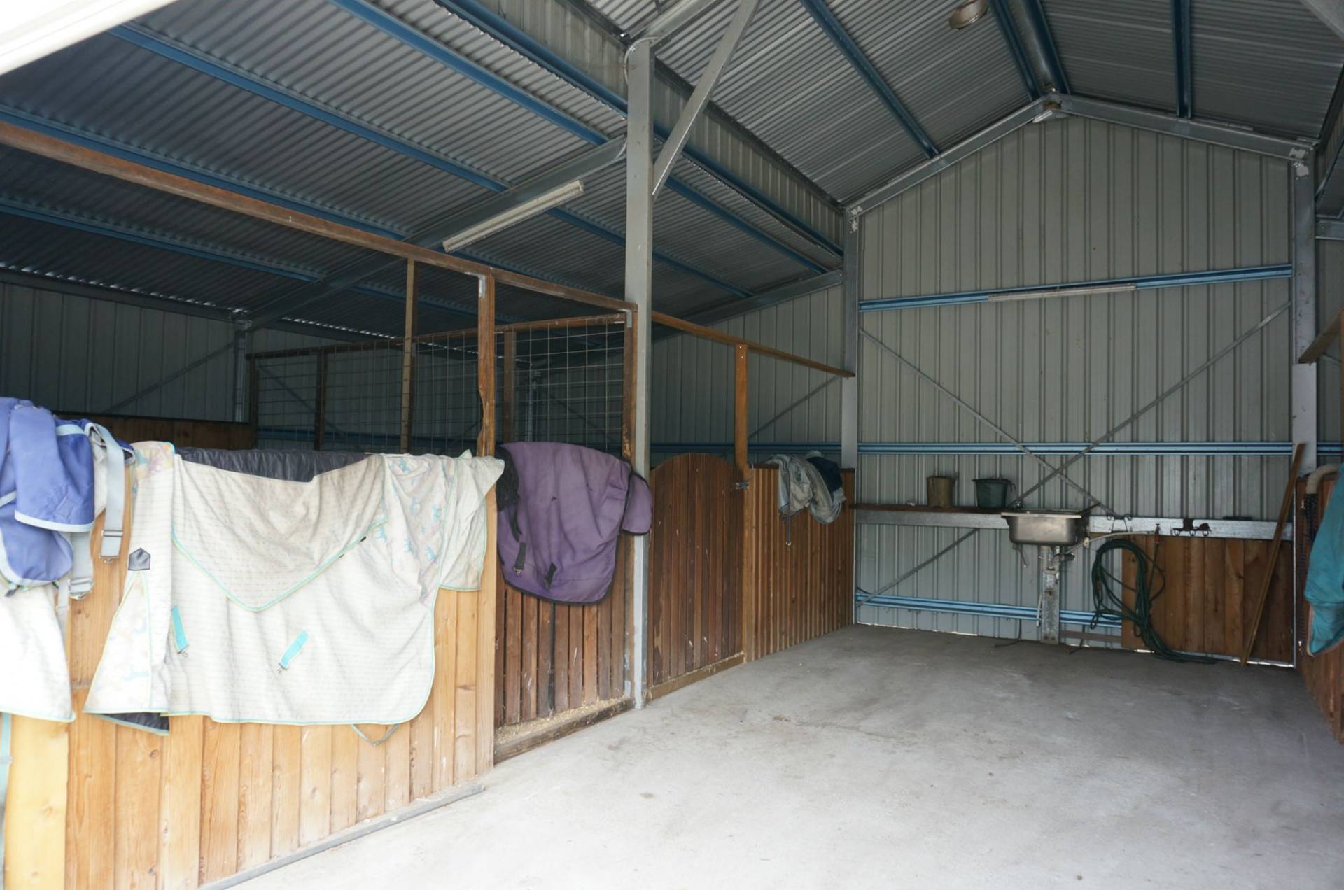 Most of the acreage is set up for horses and includes a round arena, dressage arena, show jumping training yard, day yards and massive American barn-style stables. Almost 5acres is left as parkland and suitable for horse riding and grazing.