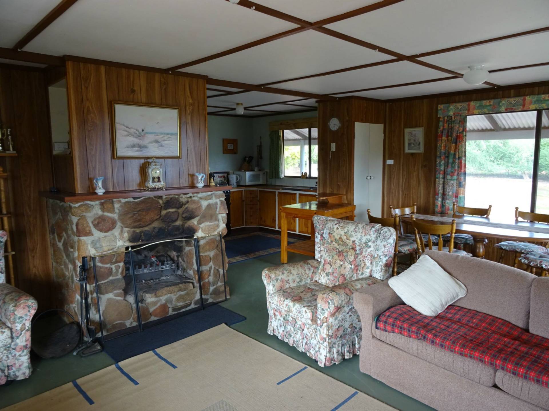 Inside the lounge room has a huge stone fireplace to keep you warm and cosy.