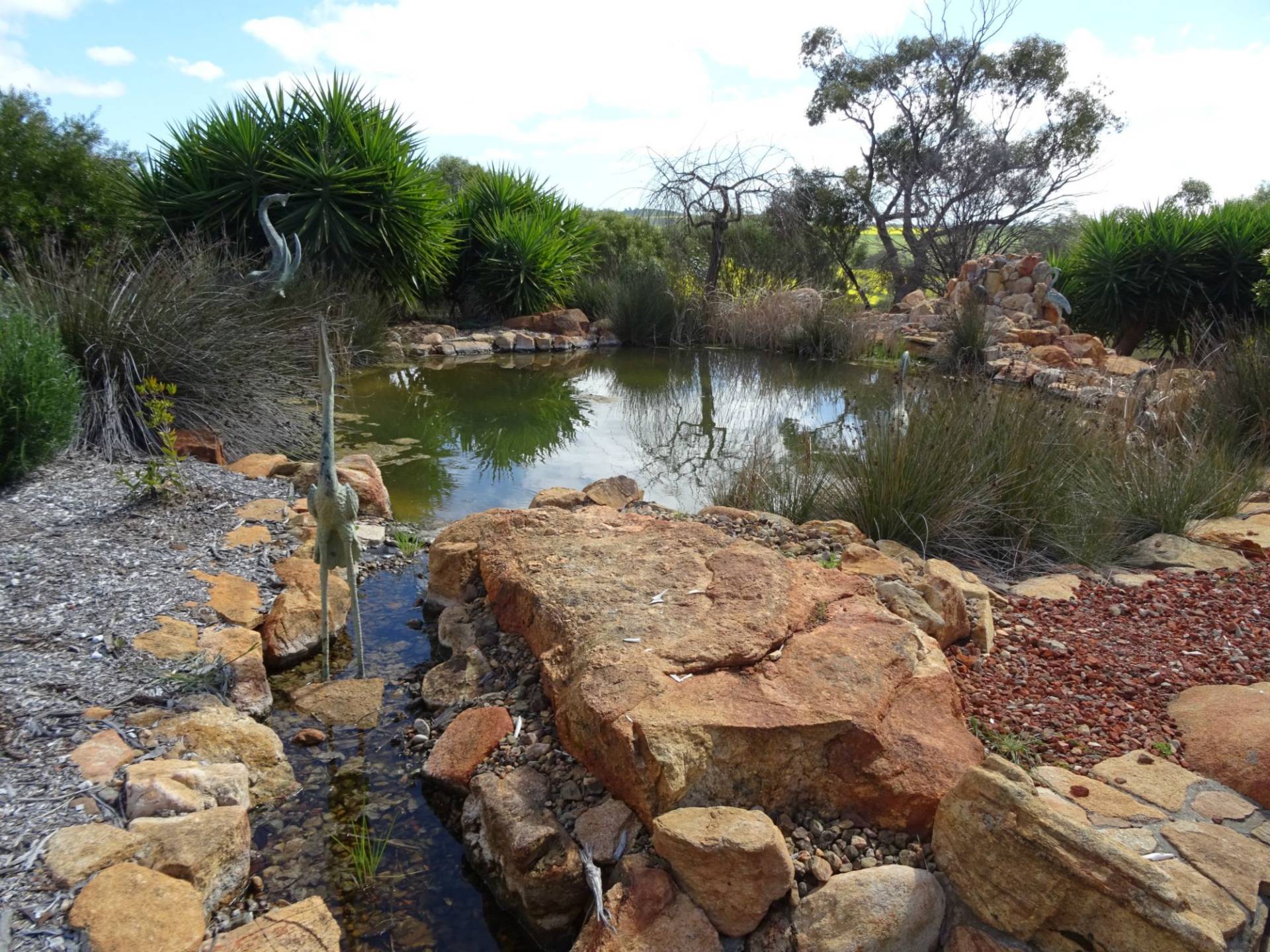 The two large bedrooms are accessed on the north side of the main room, the main bedroom has its own huge walk in robe and a very impressive ensuite bathroom with twin vanities and large shower recess. The views from the bedroom window look right across the ponds and waterfall!