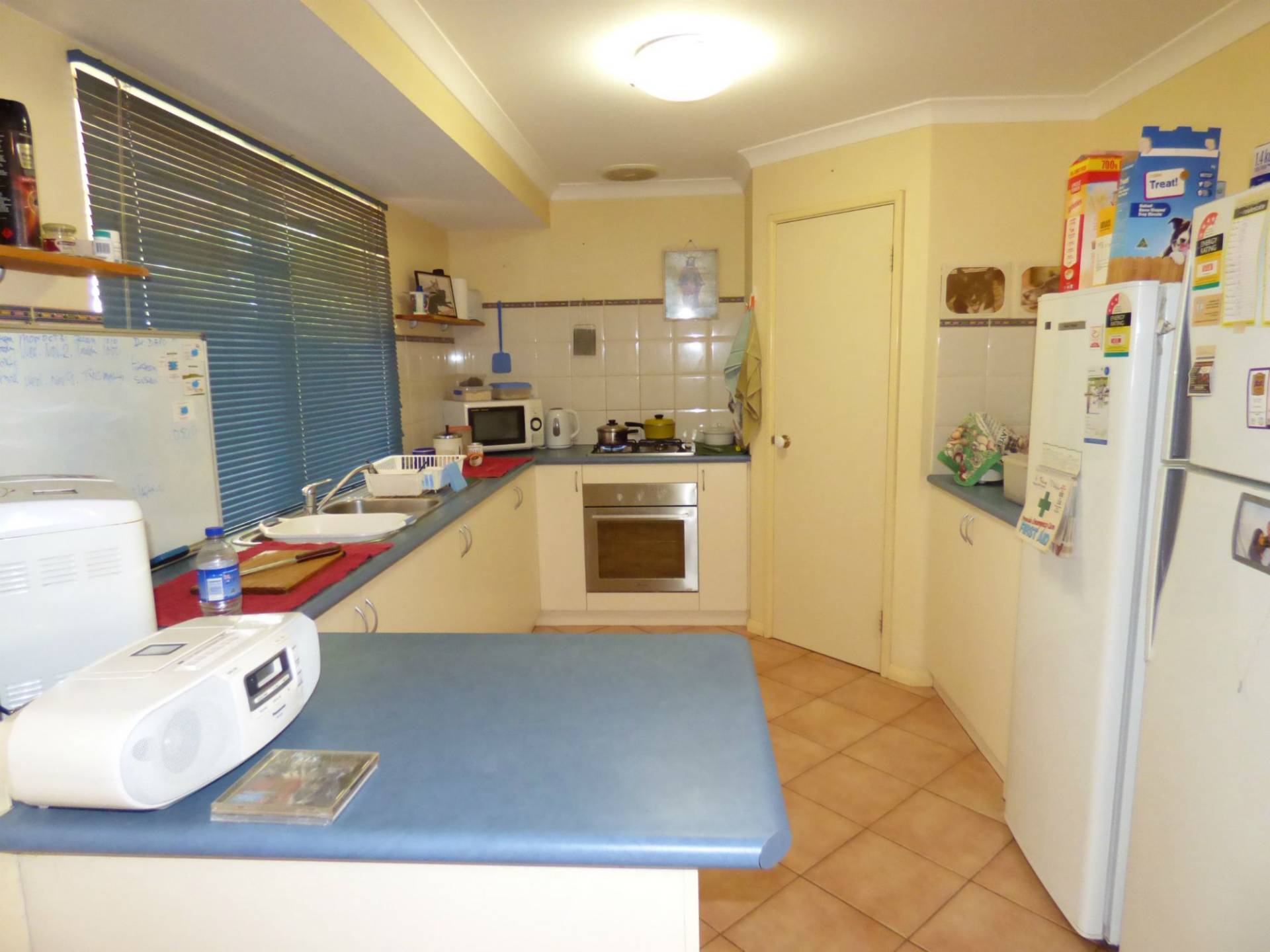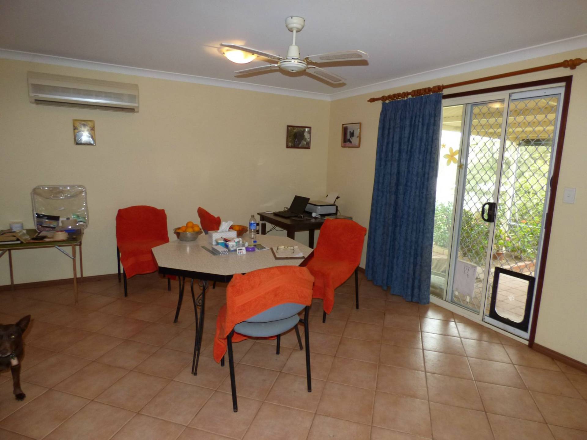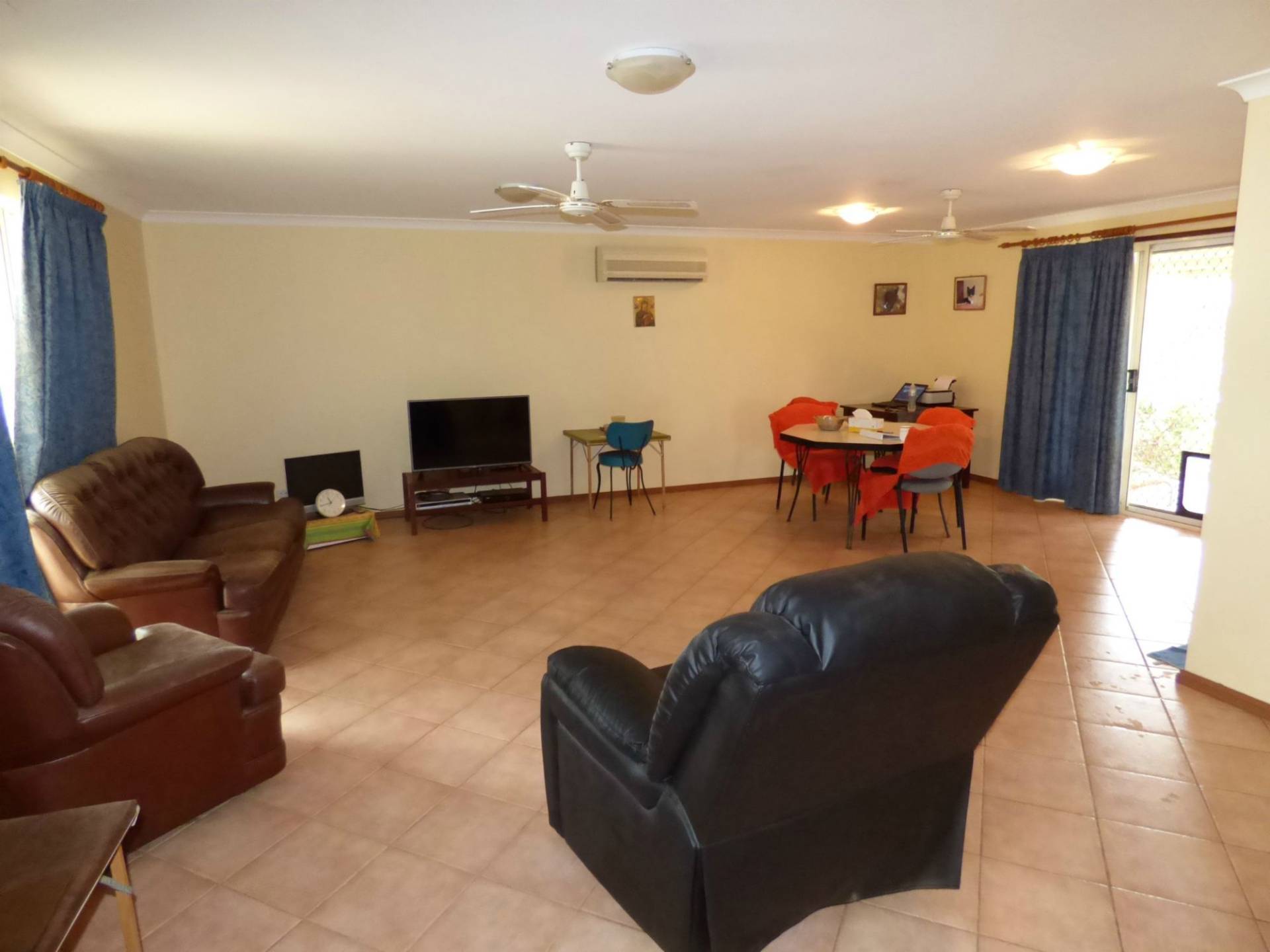 The home features a large living area with dining area and large kitchen with walk in pantry. This area is all tiled and has a split system air conditioner to keep it cool.