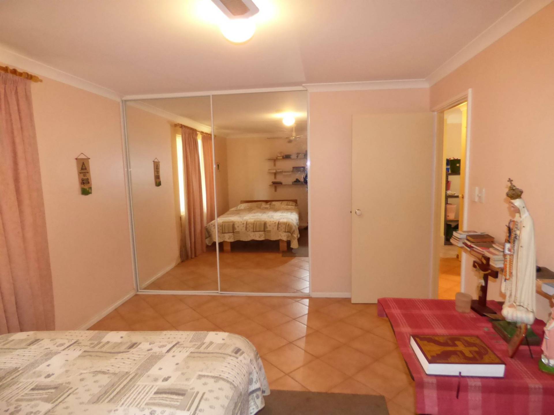 The rear gardens are stepped down to the back with a fish pond and vege gardens plus fruit trees.