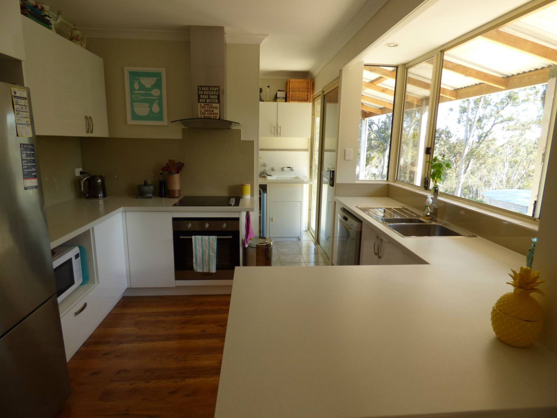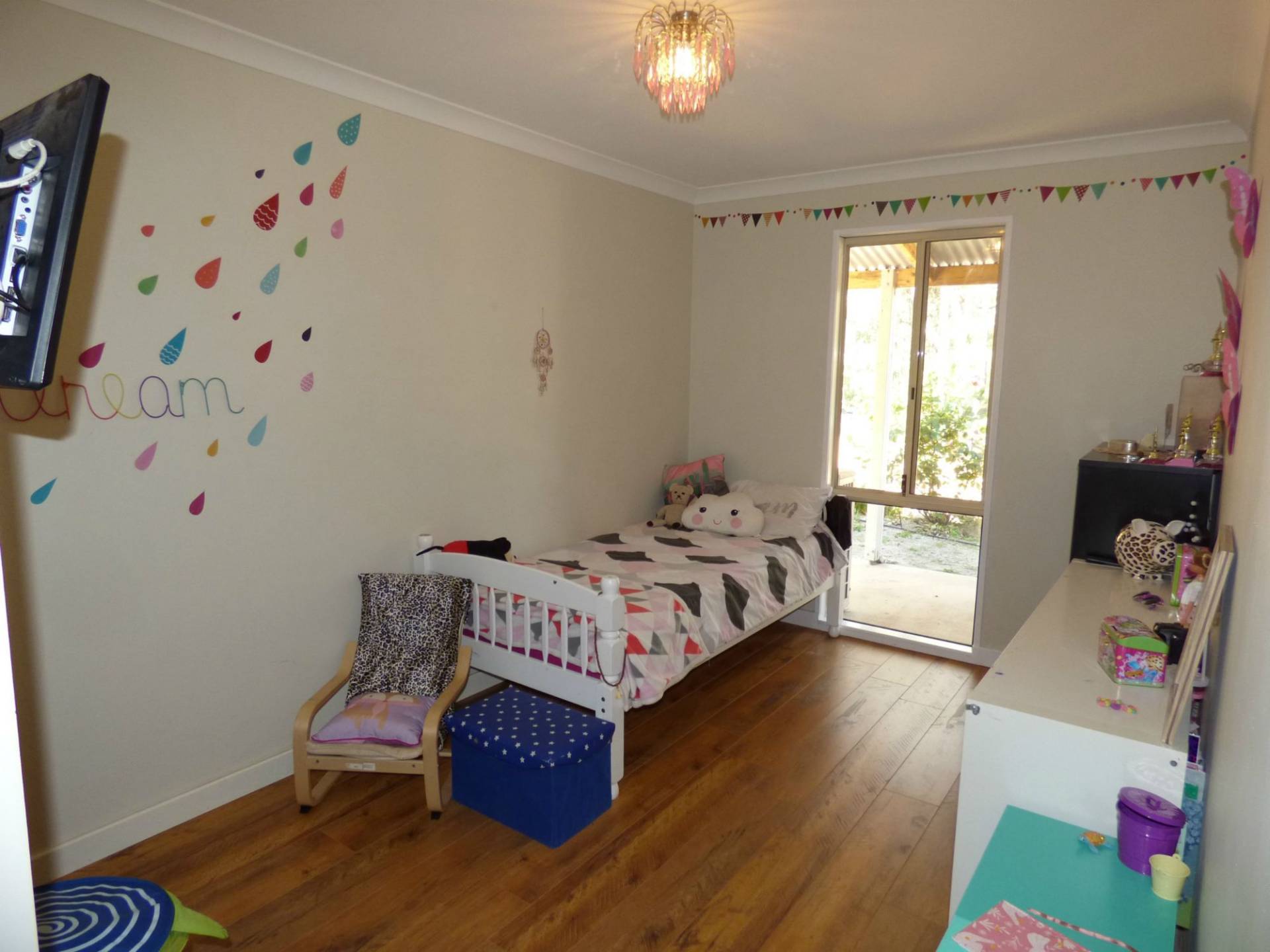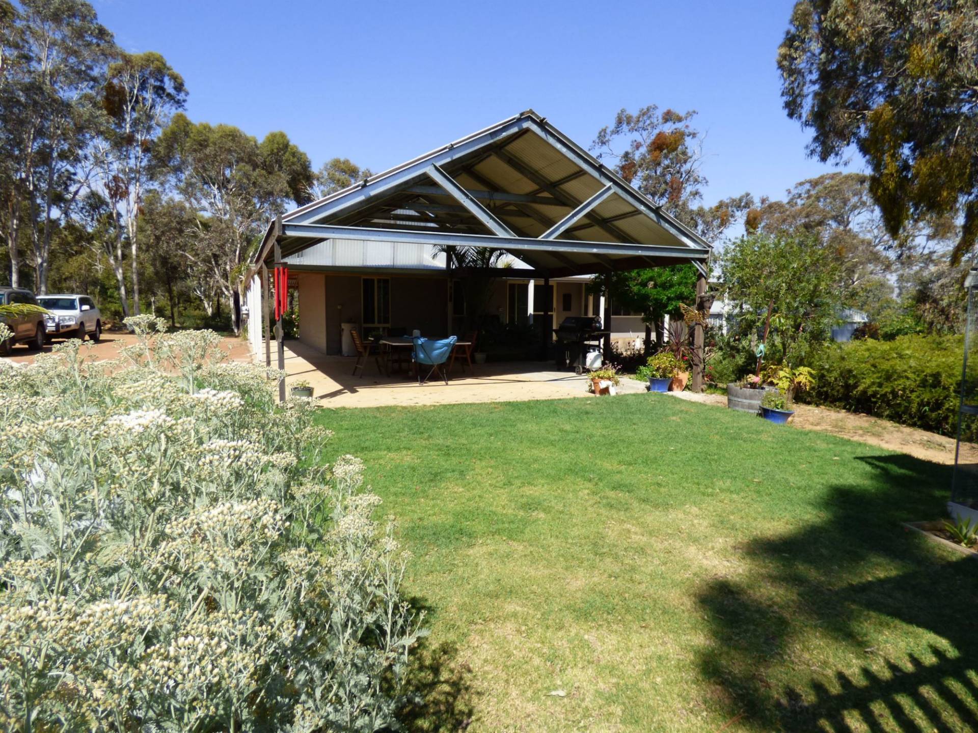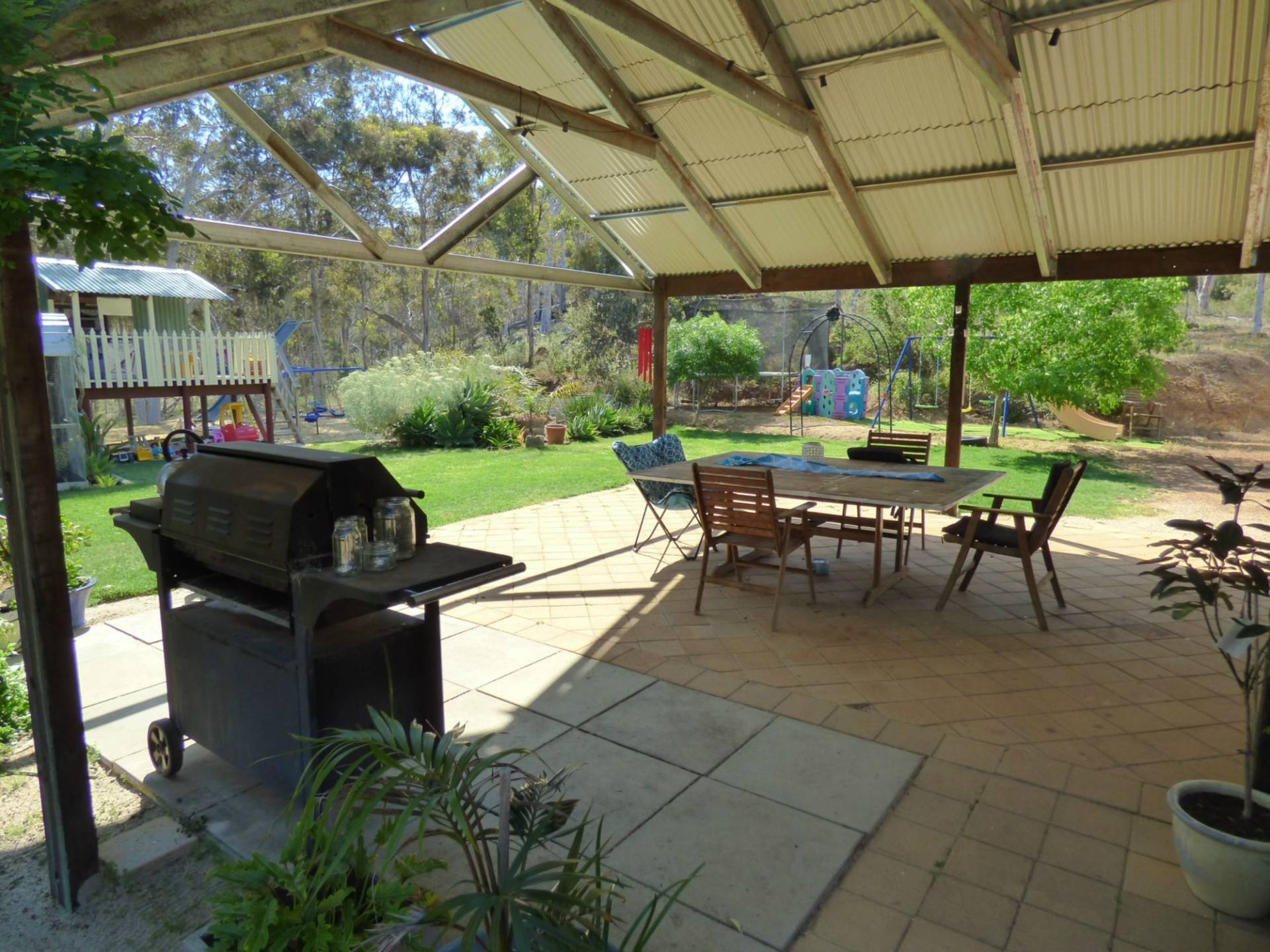 The Hardi plank & iron home is nestled on a wonderful 5 acre block full of tall trees and areas to explore for the kids.