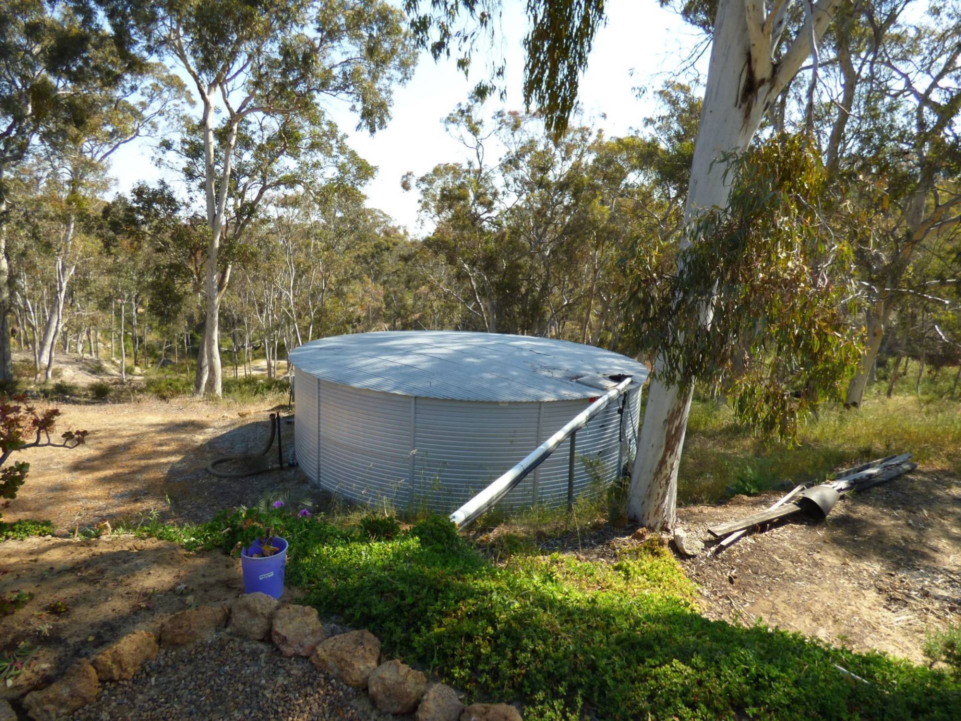 There is a 20,000 gallon rainwater tank for house water.